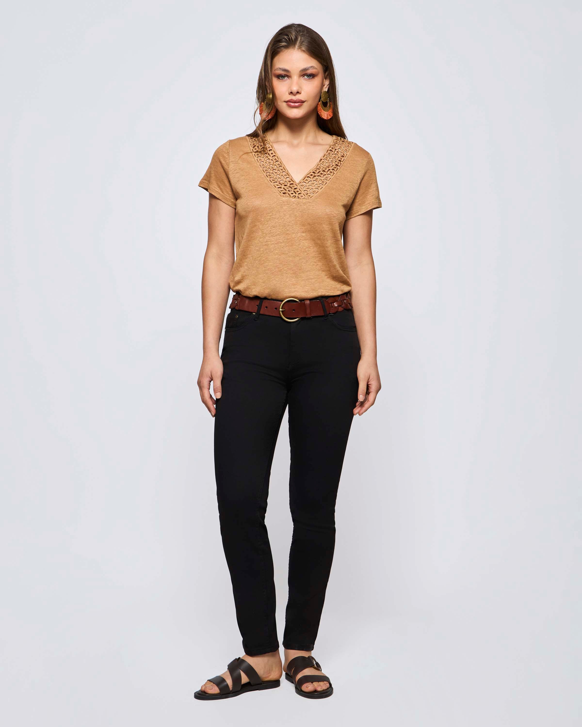 Pantalón Fátima Five Pocket Tiro Alto Bota Ajustada