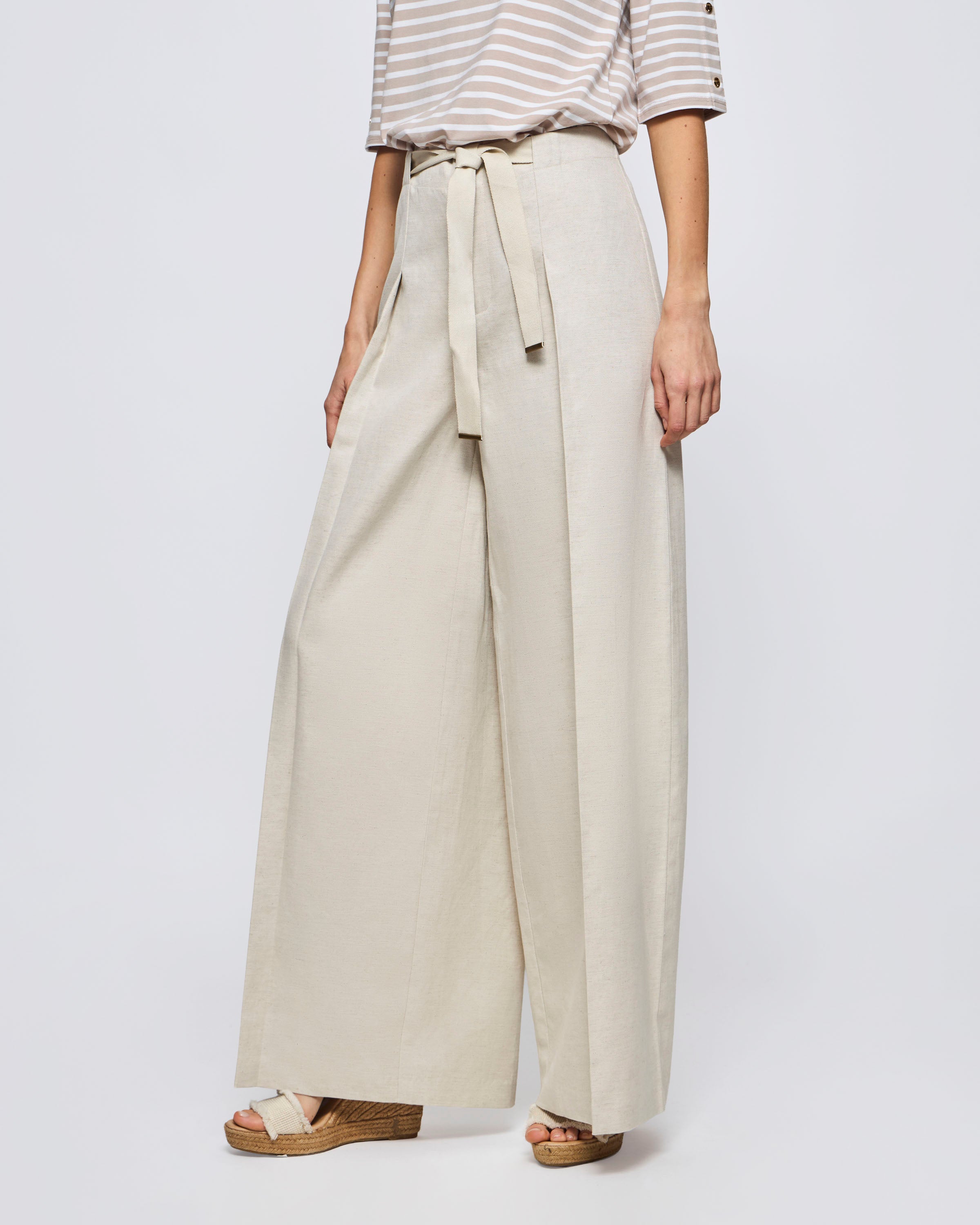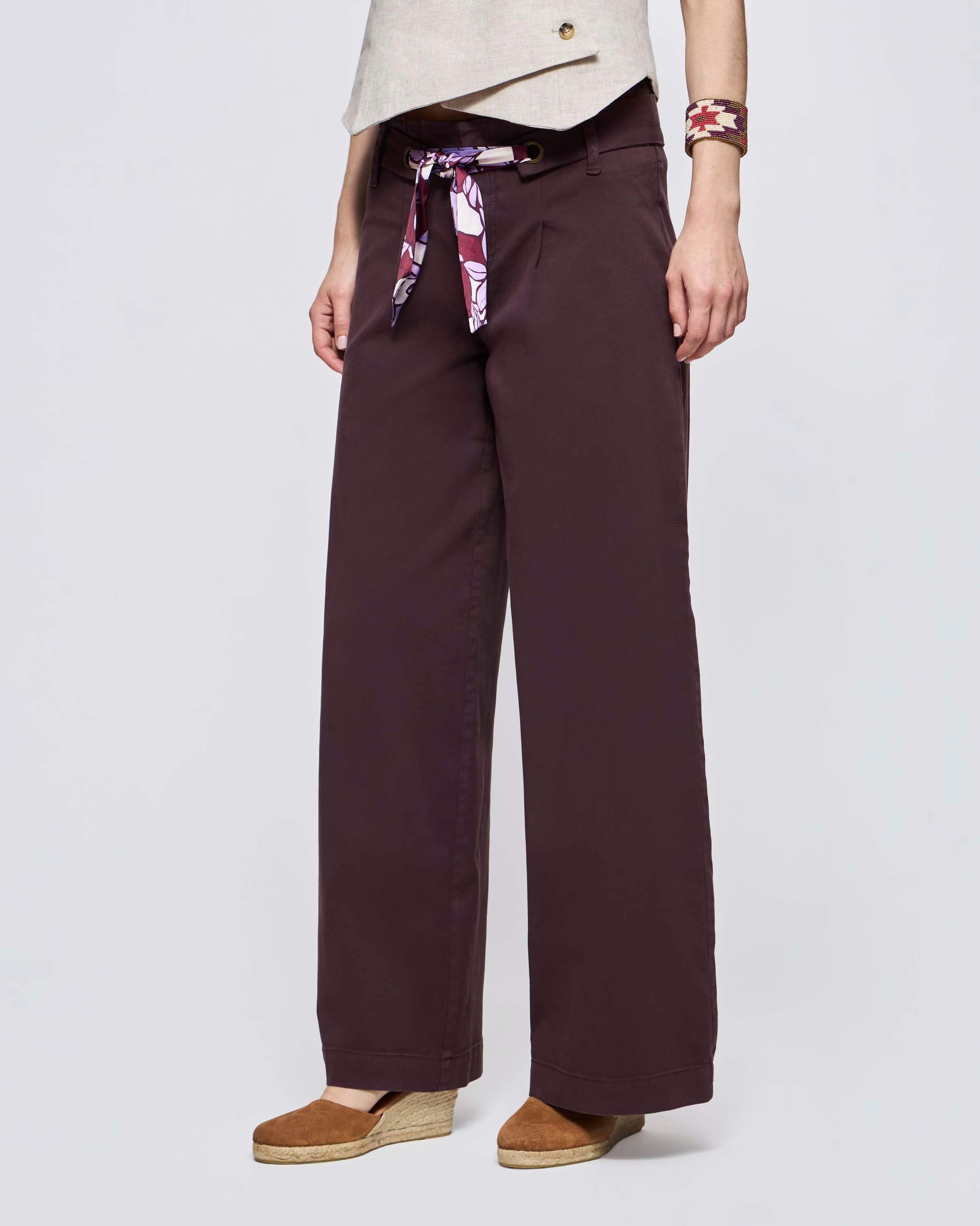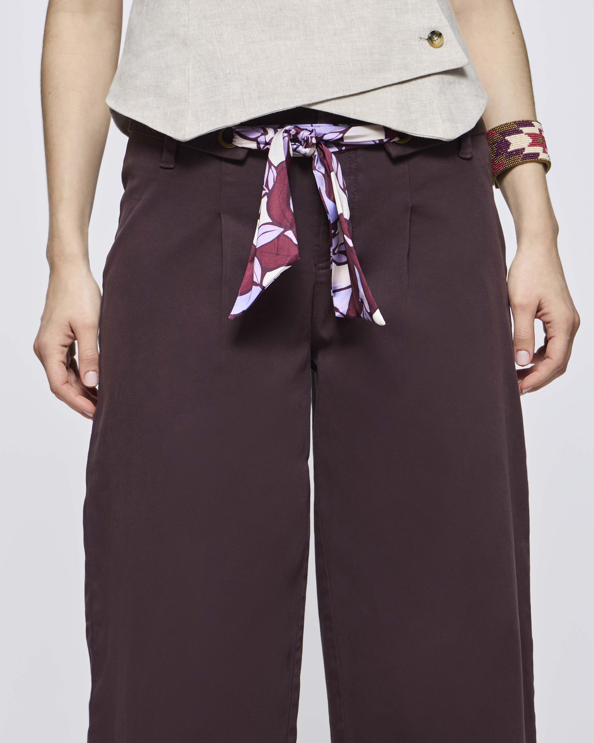Pantalón Ancho Pinzas Amarra Con Pañuelo