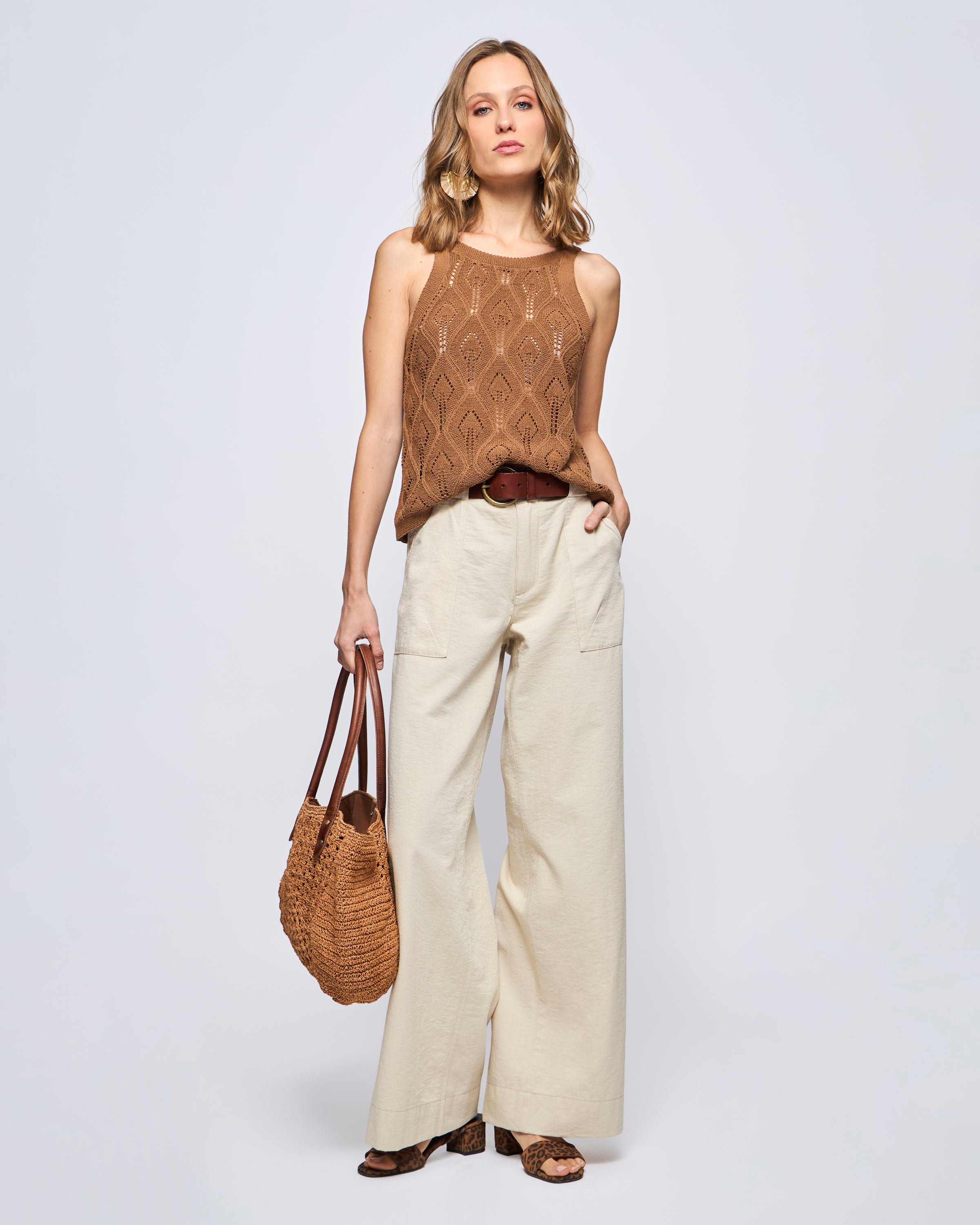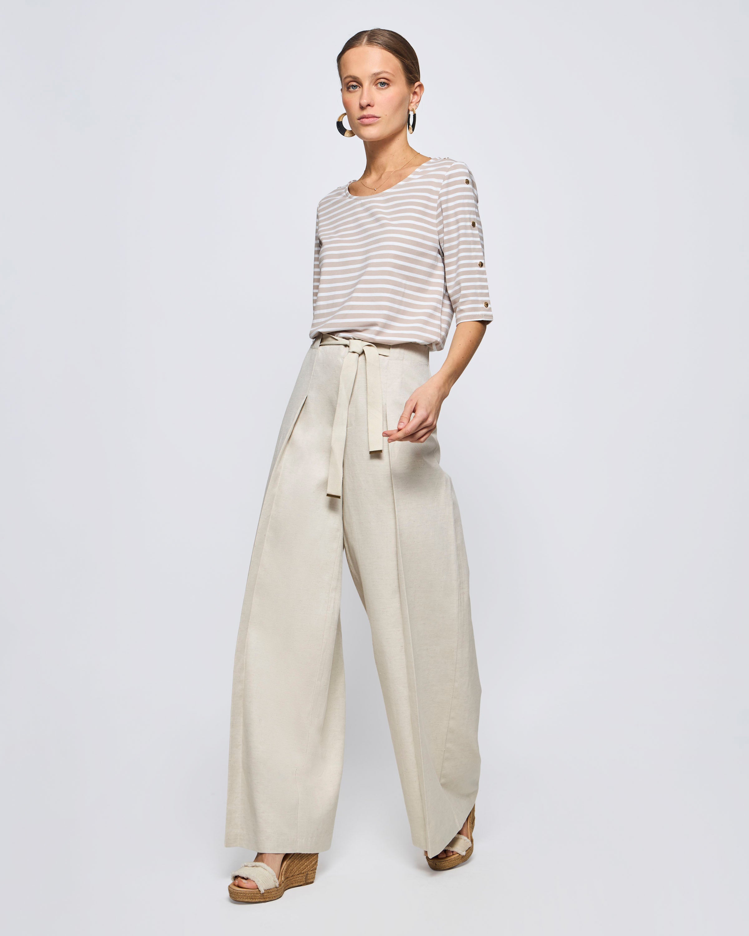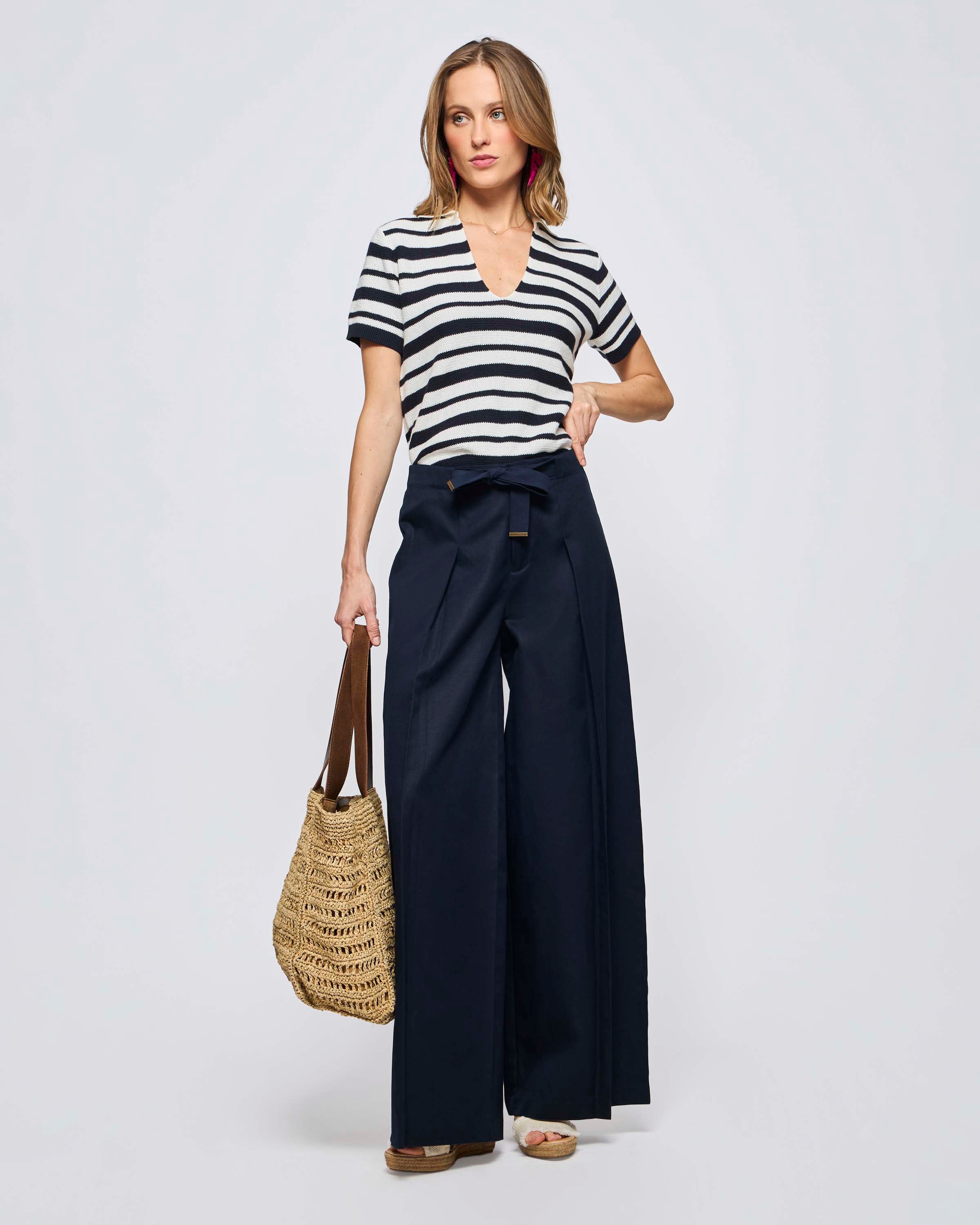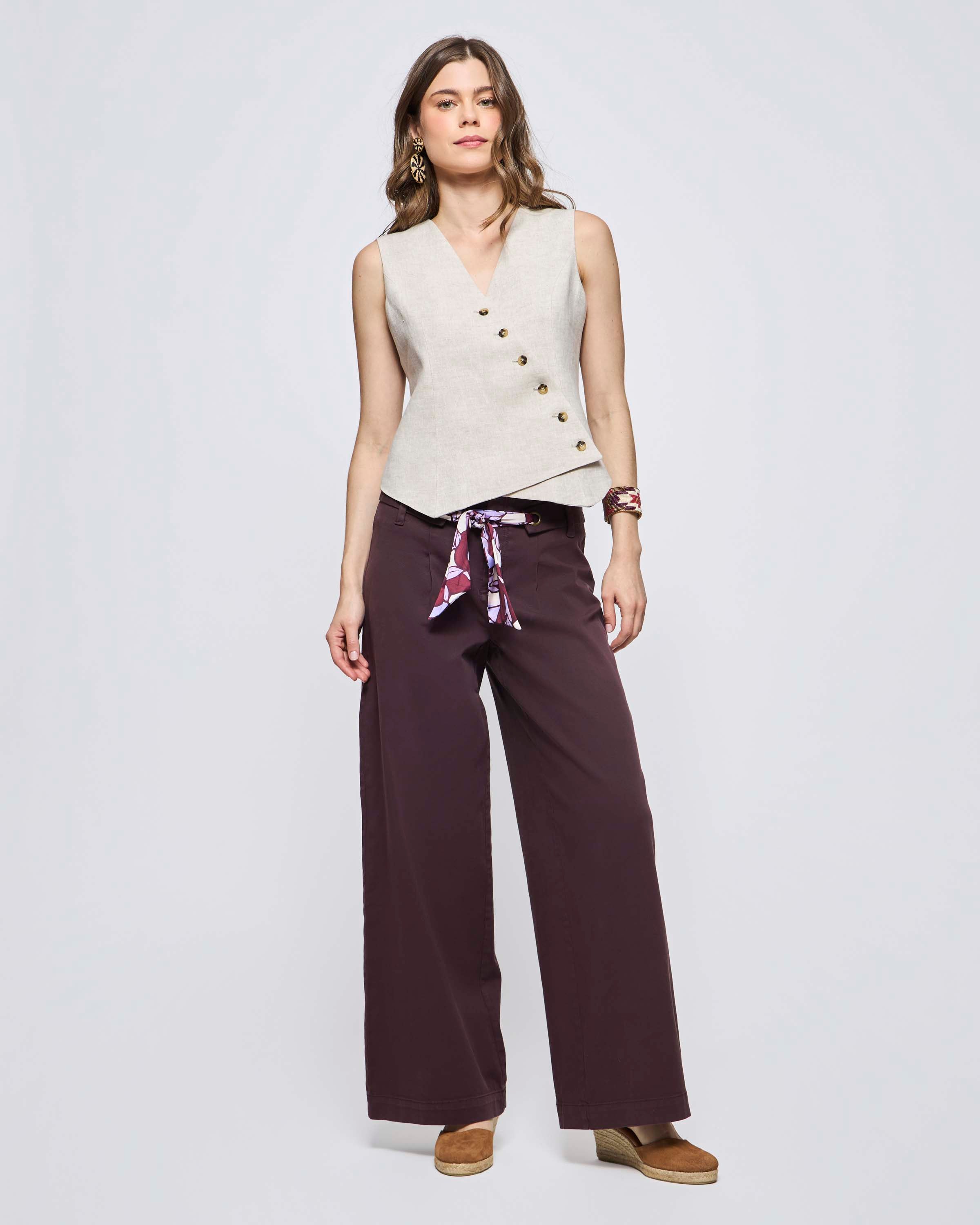 Pantalón Ancho Pinzas Amarra Con Pañuelo
