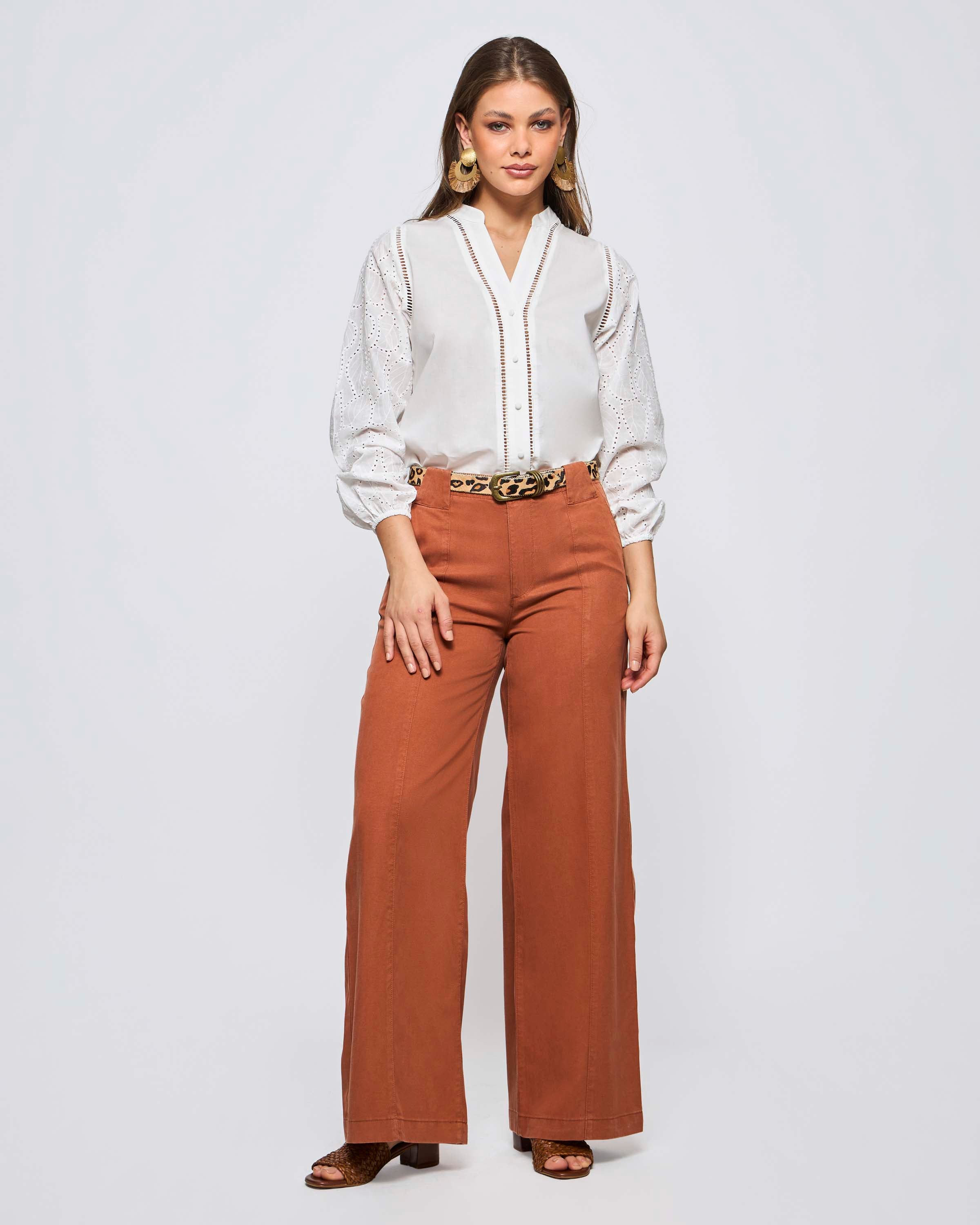 Pantalón Seychelles Tiro Alto Bota Ajustada Botones