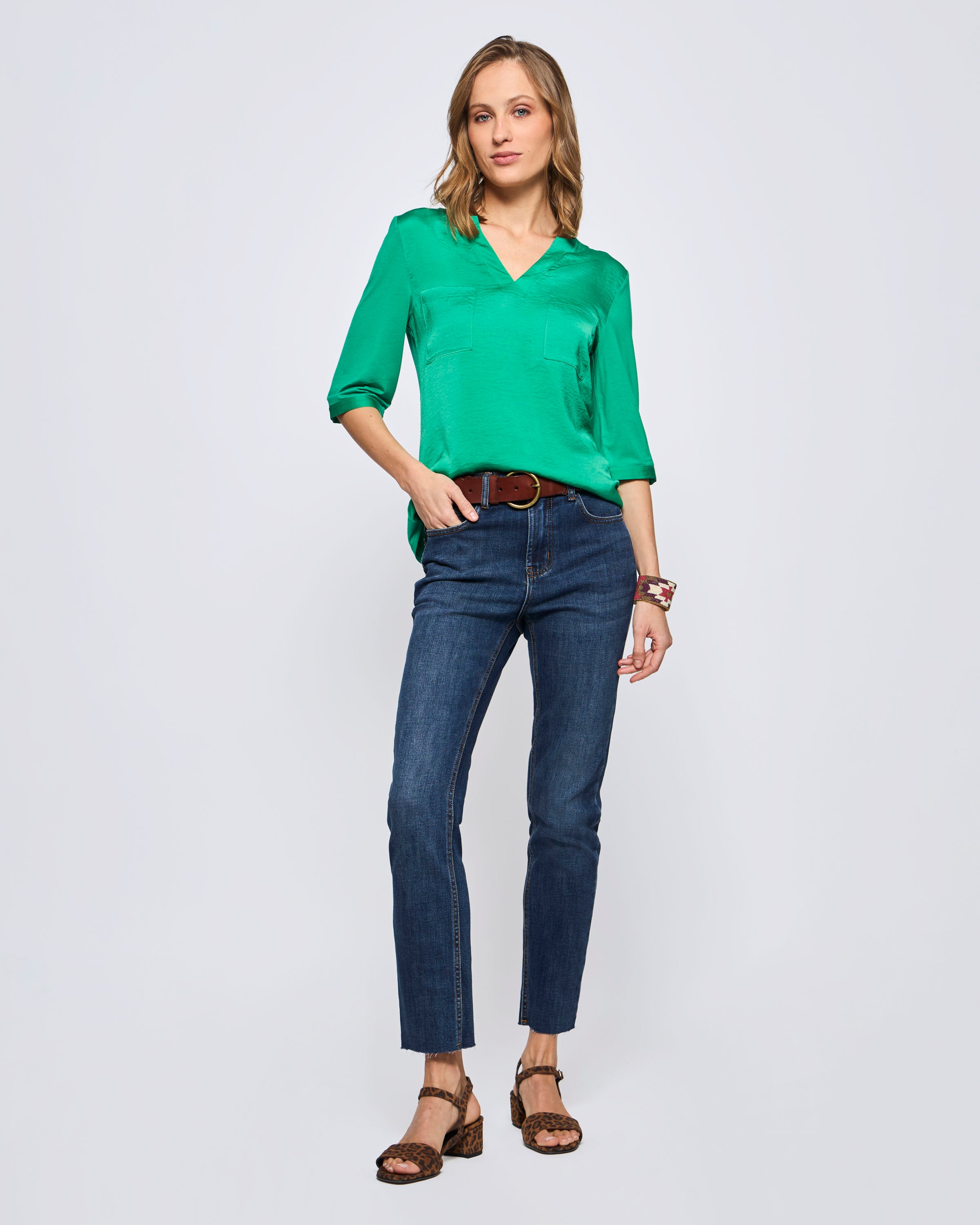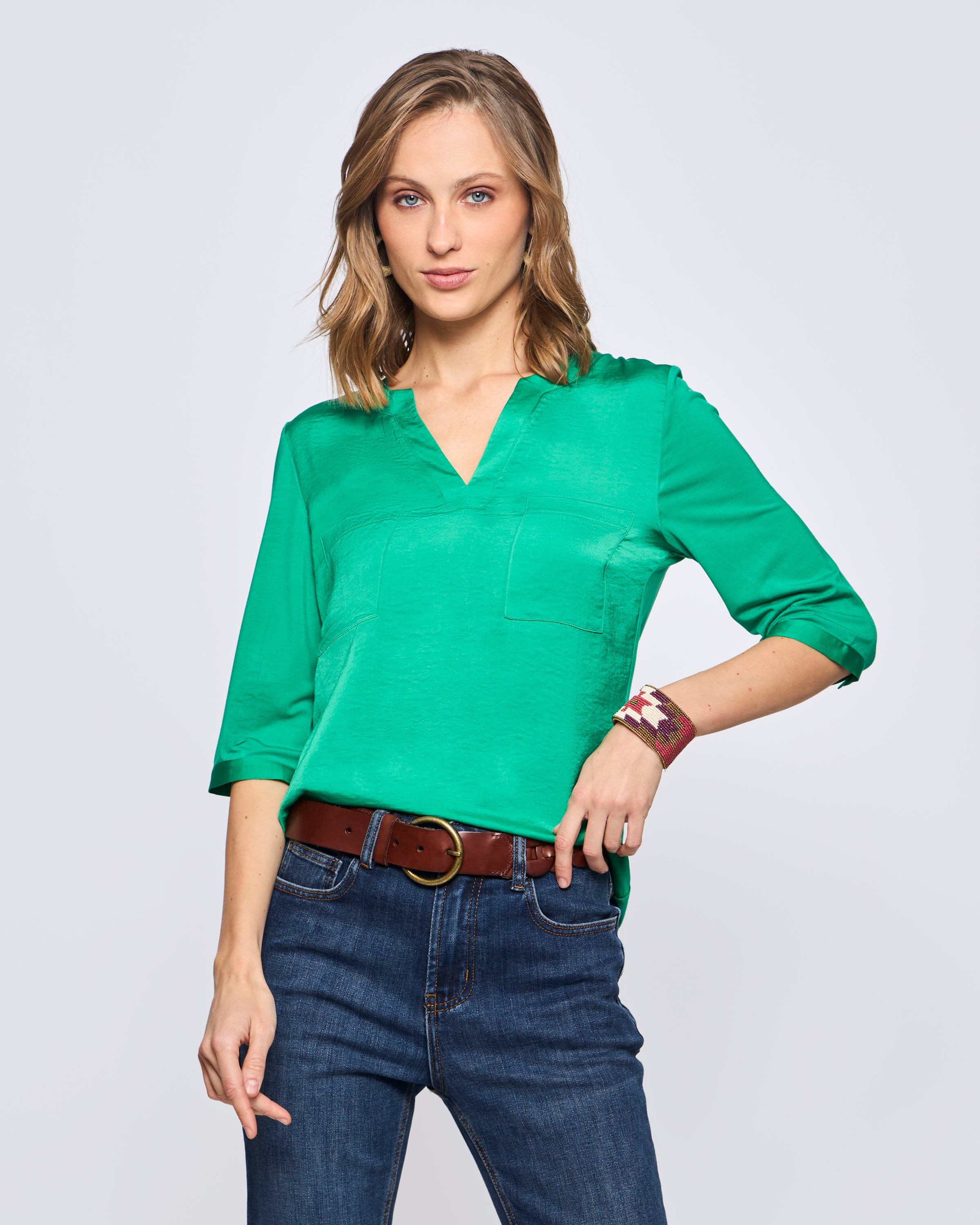 Polera Manga 3/4 Doble Tela Tipo Mao