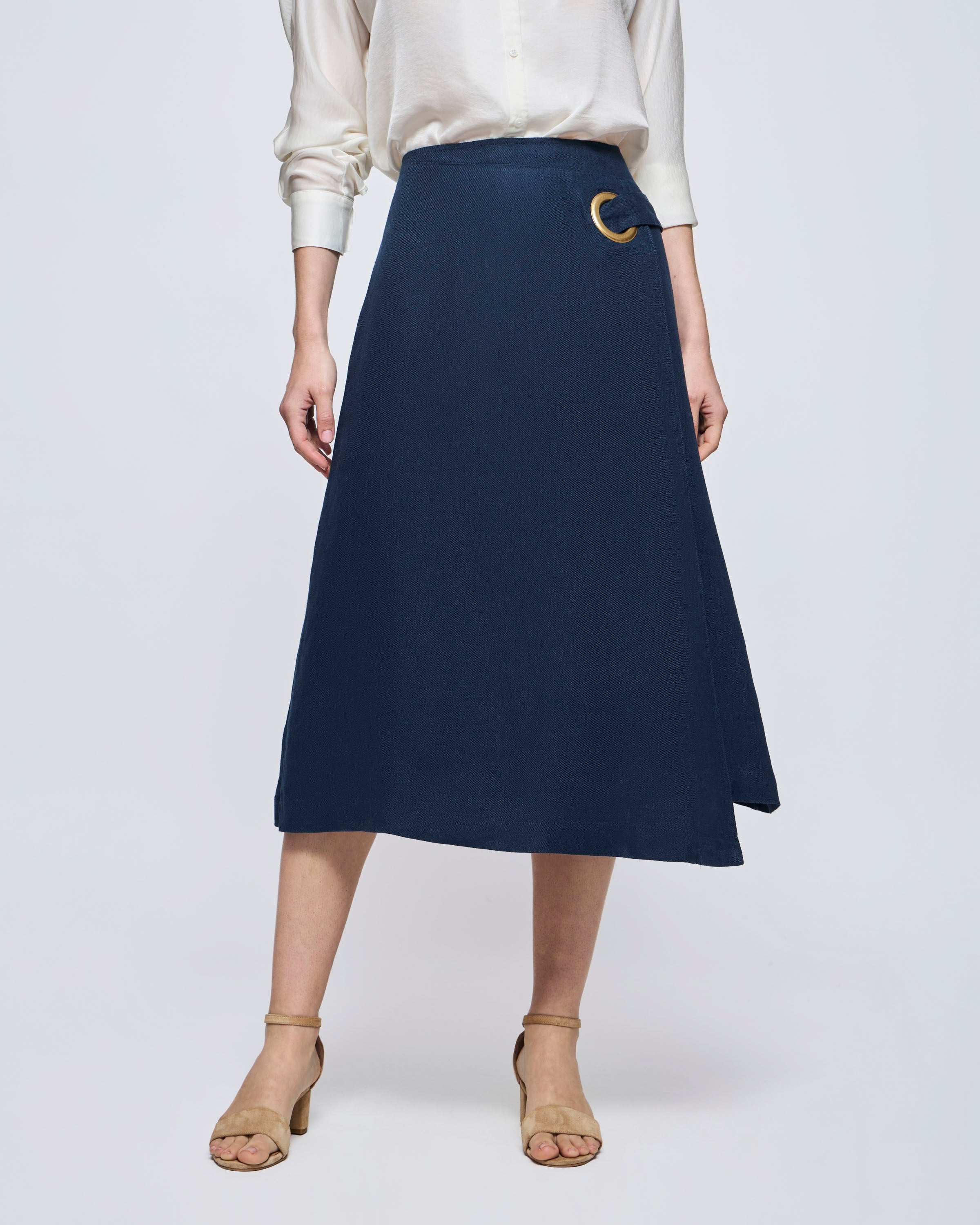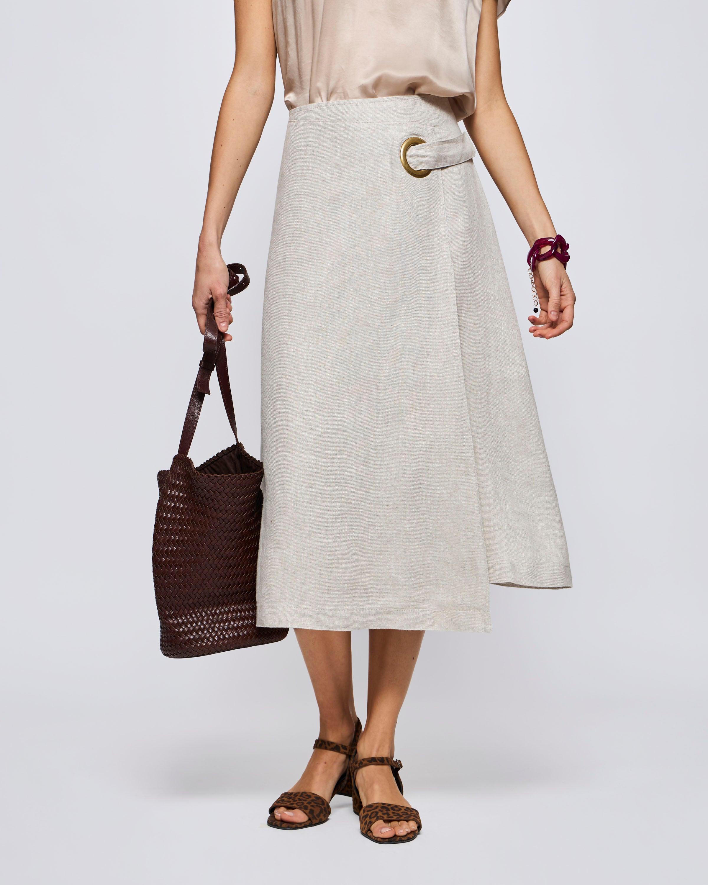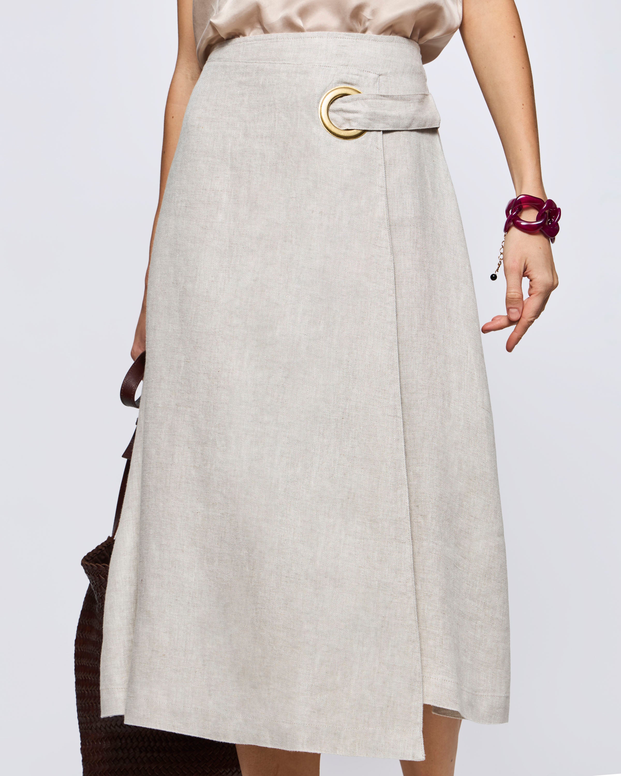Pollera Lino Larga Con Ojetillo Lino