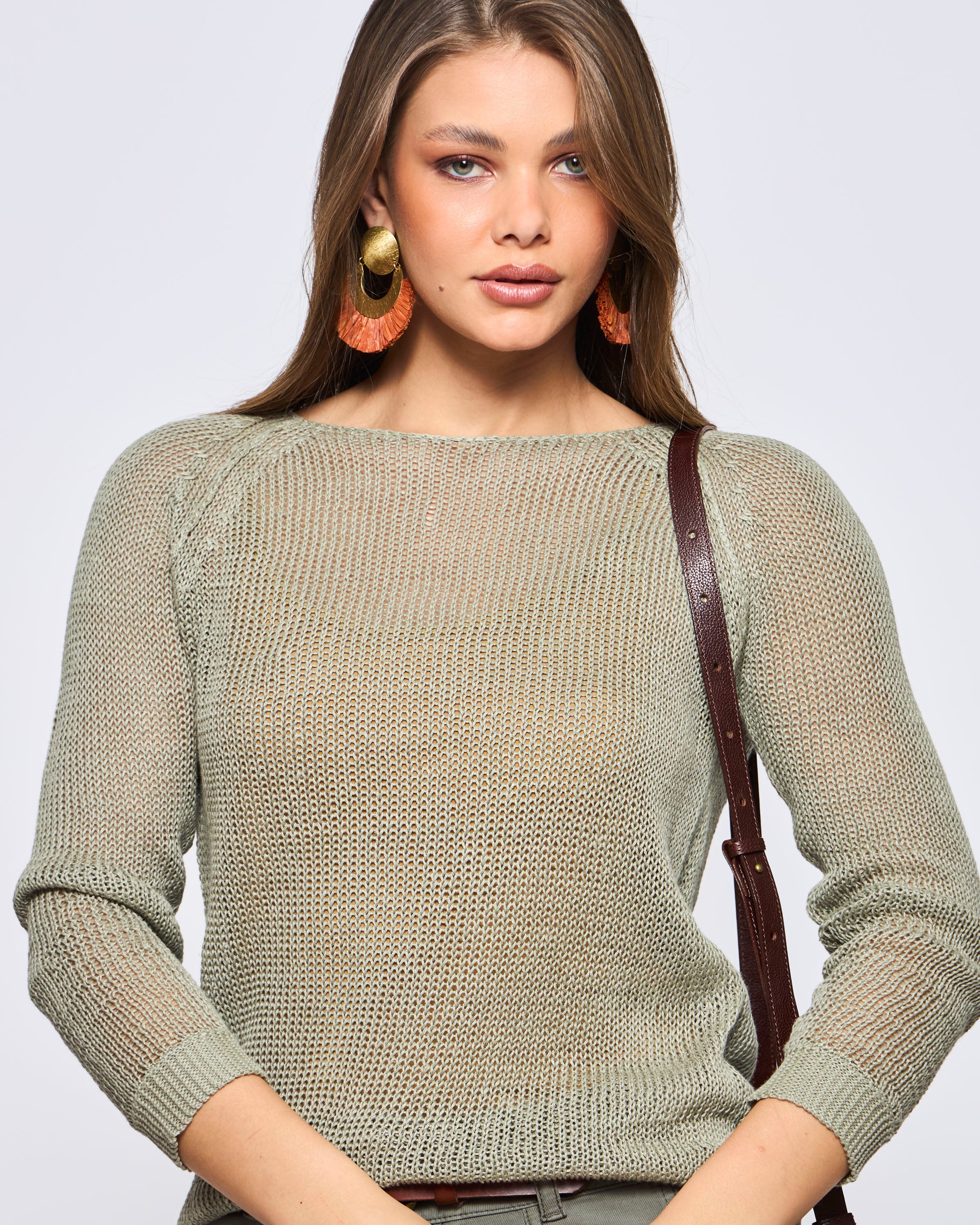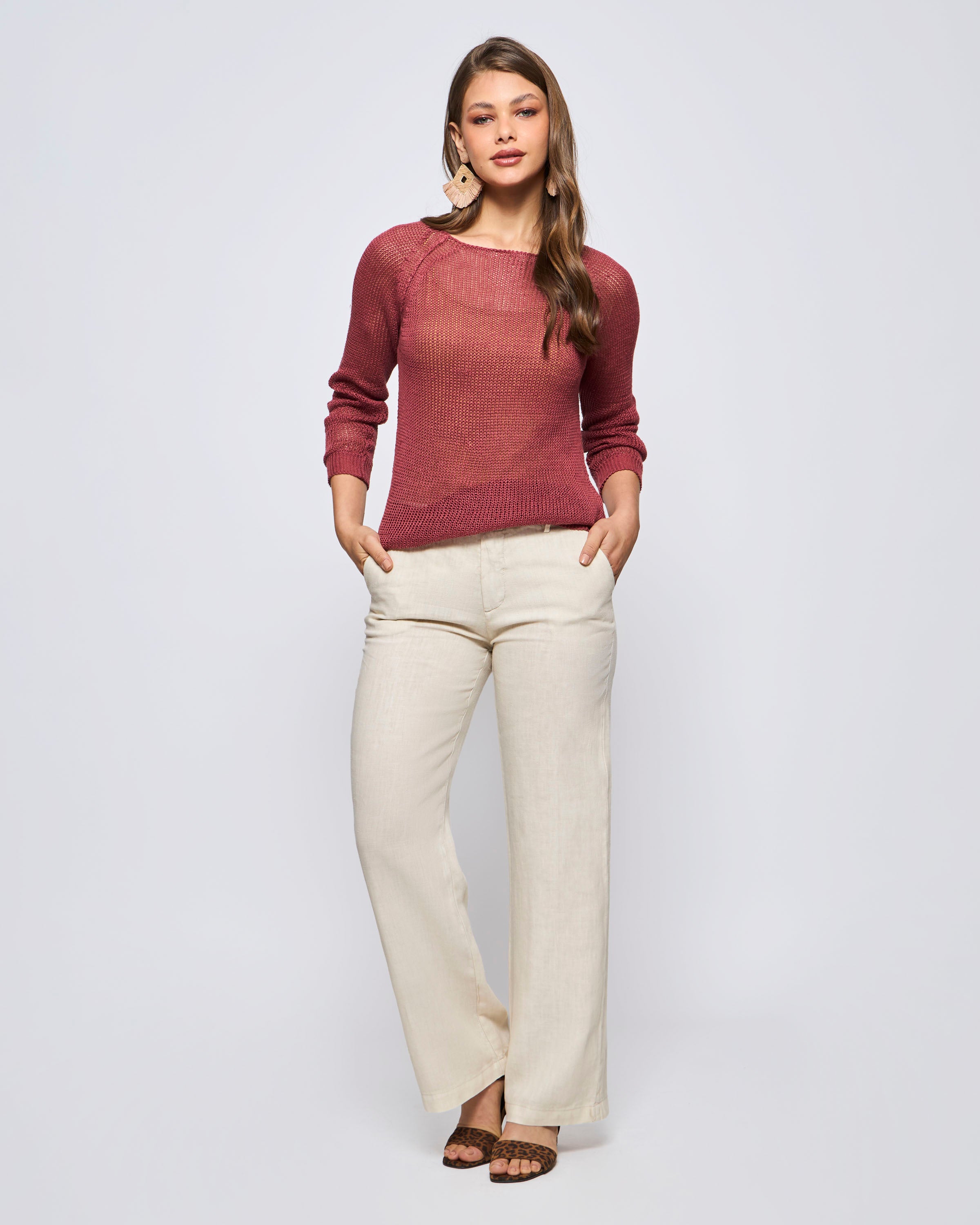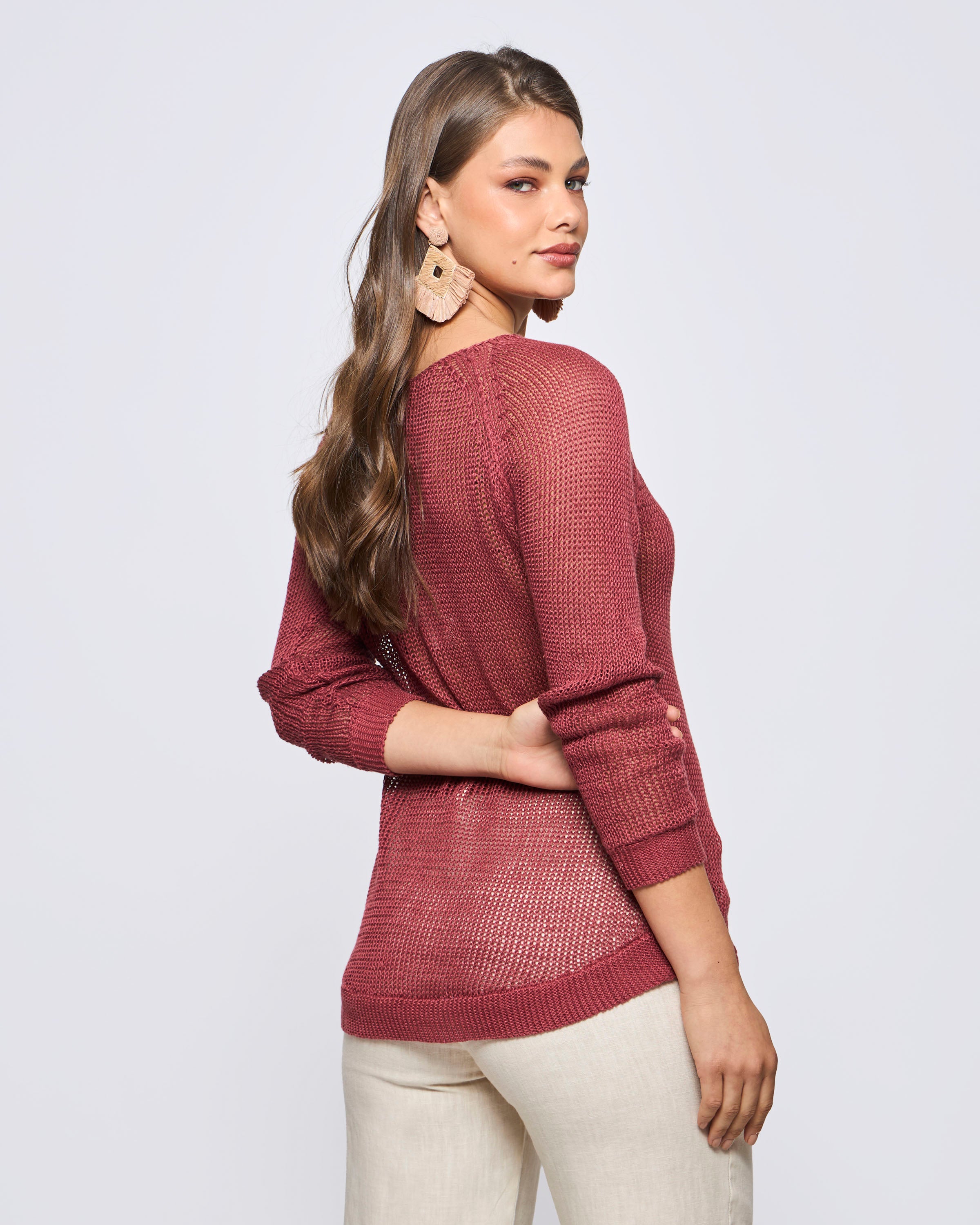 Sweater Manga Larga Cuello Redondo Lino