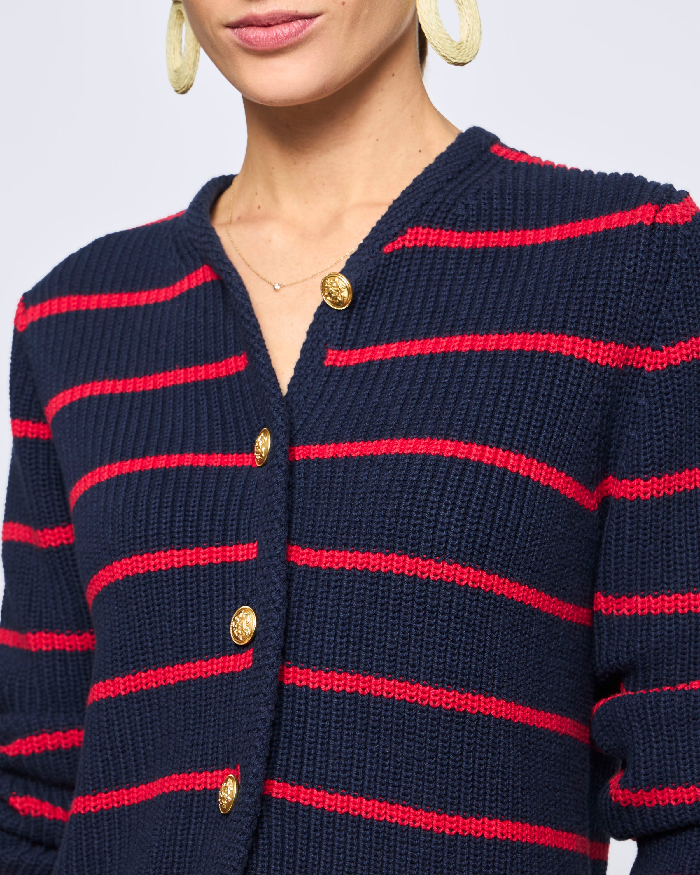 Cárdigan Rayado con Botones Doble Plaquet contrastado