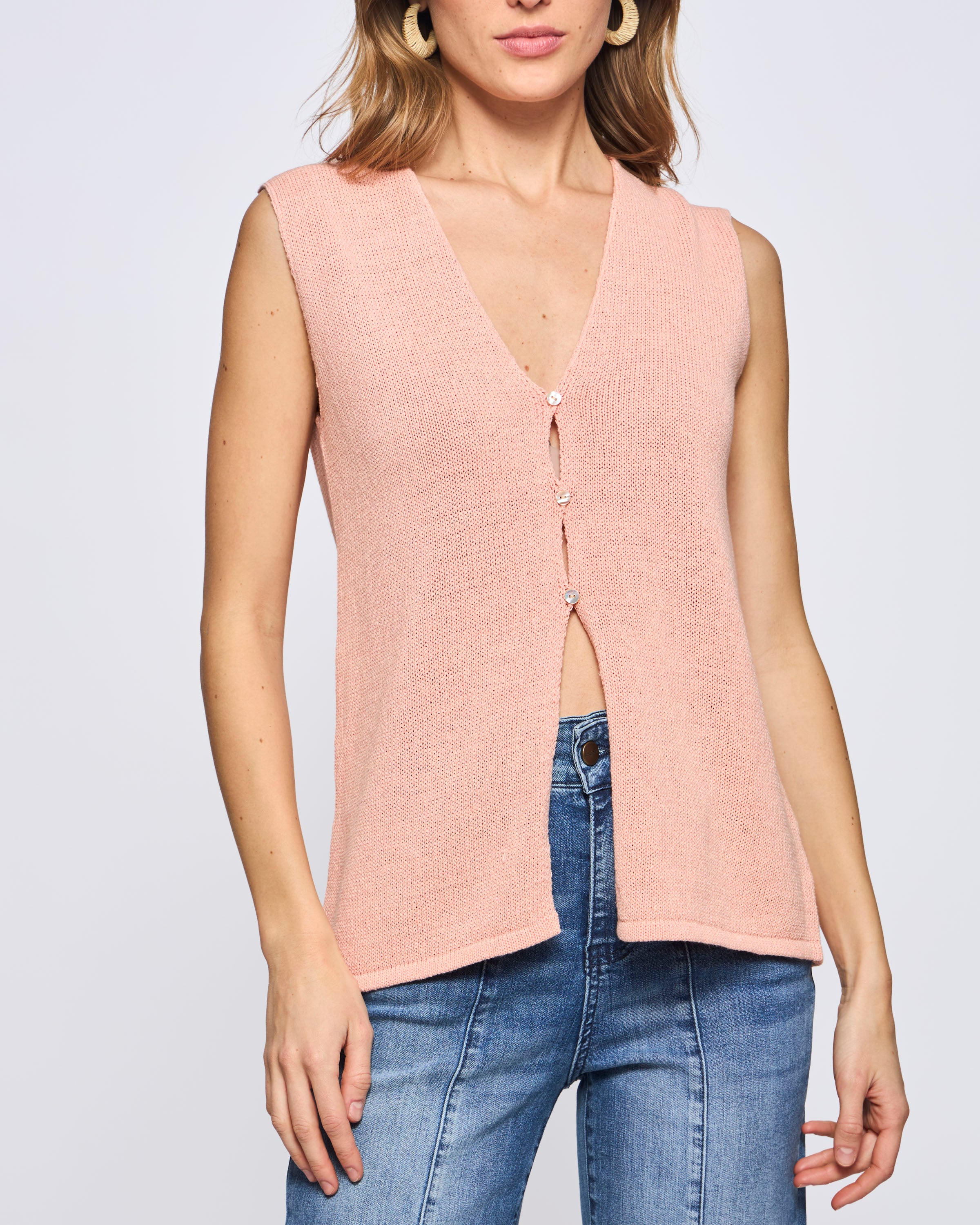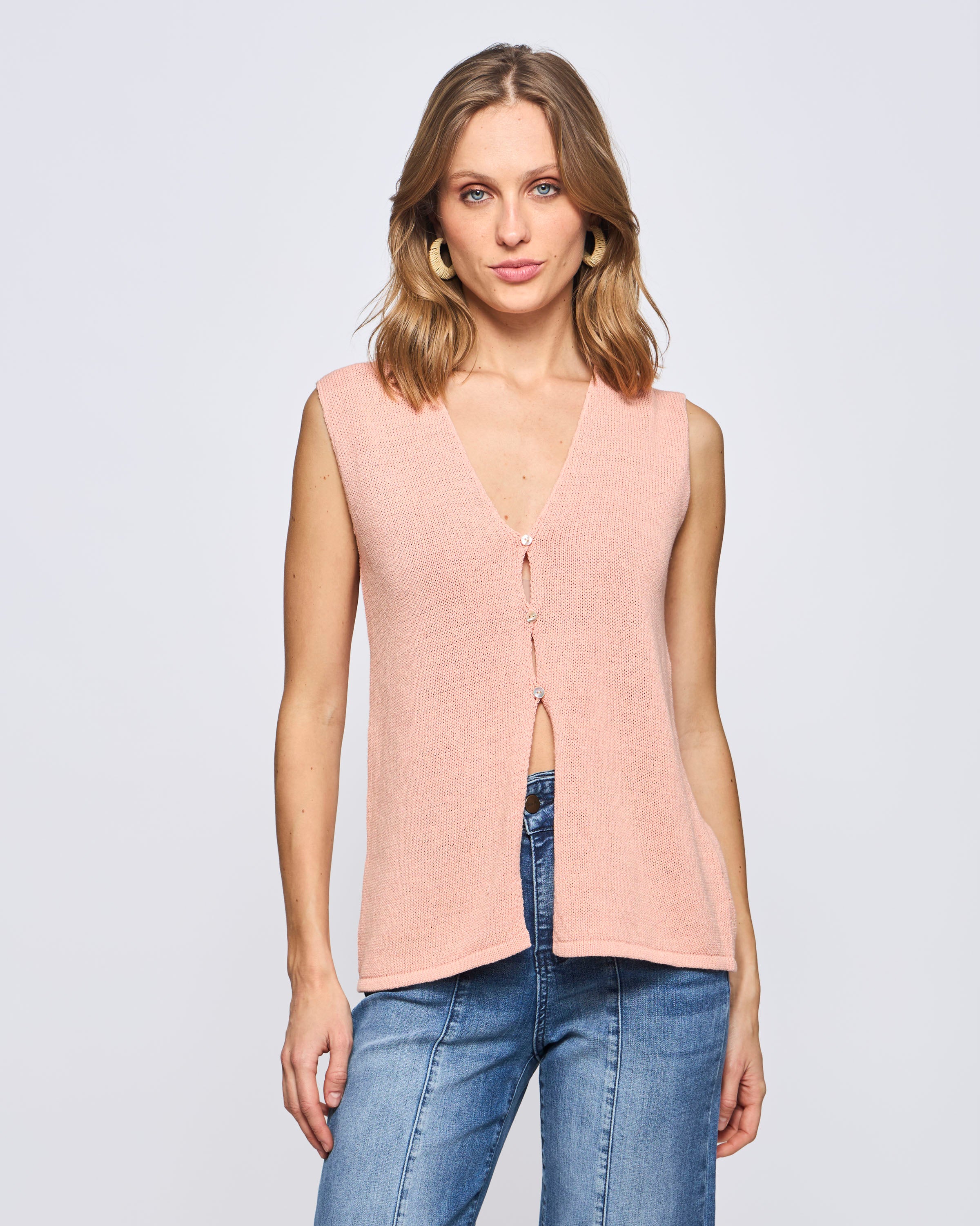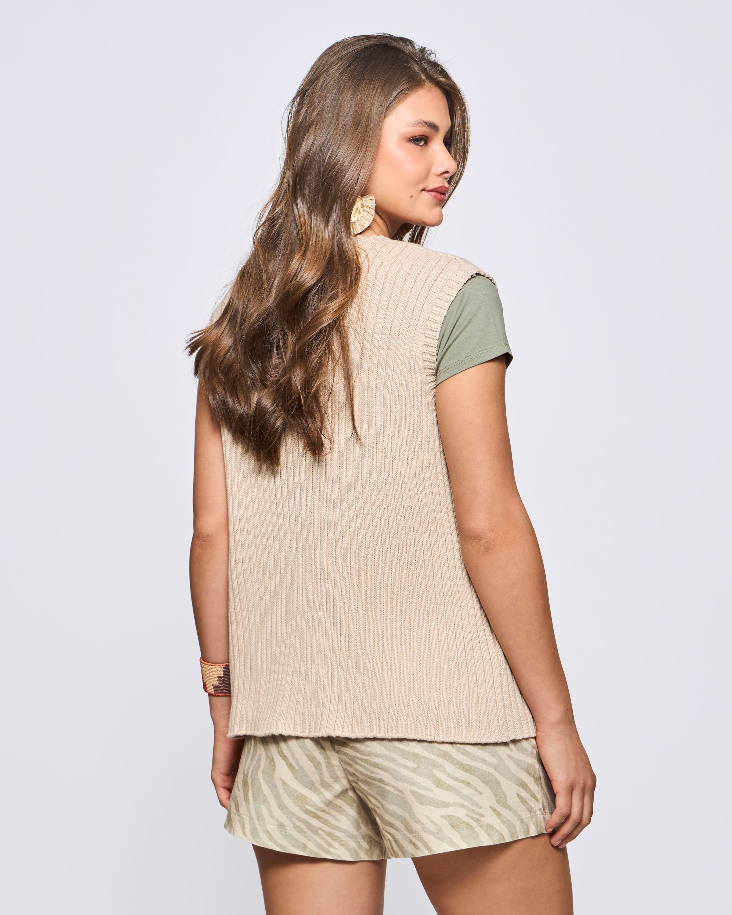 Sweater Córcega Cuello V Algodón Slub