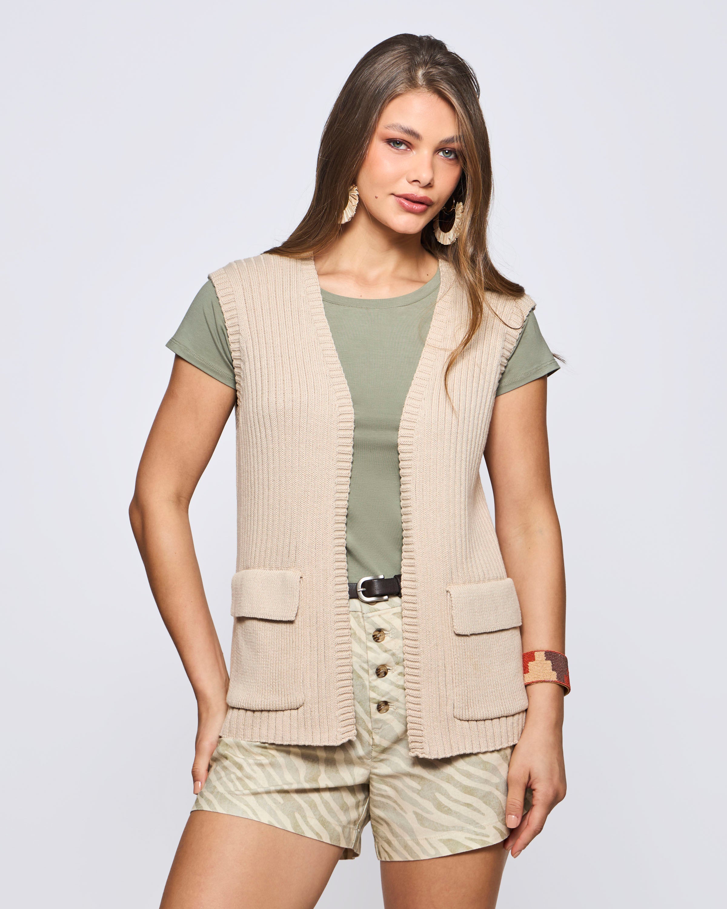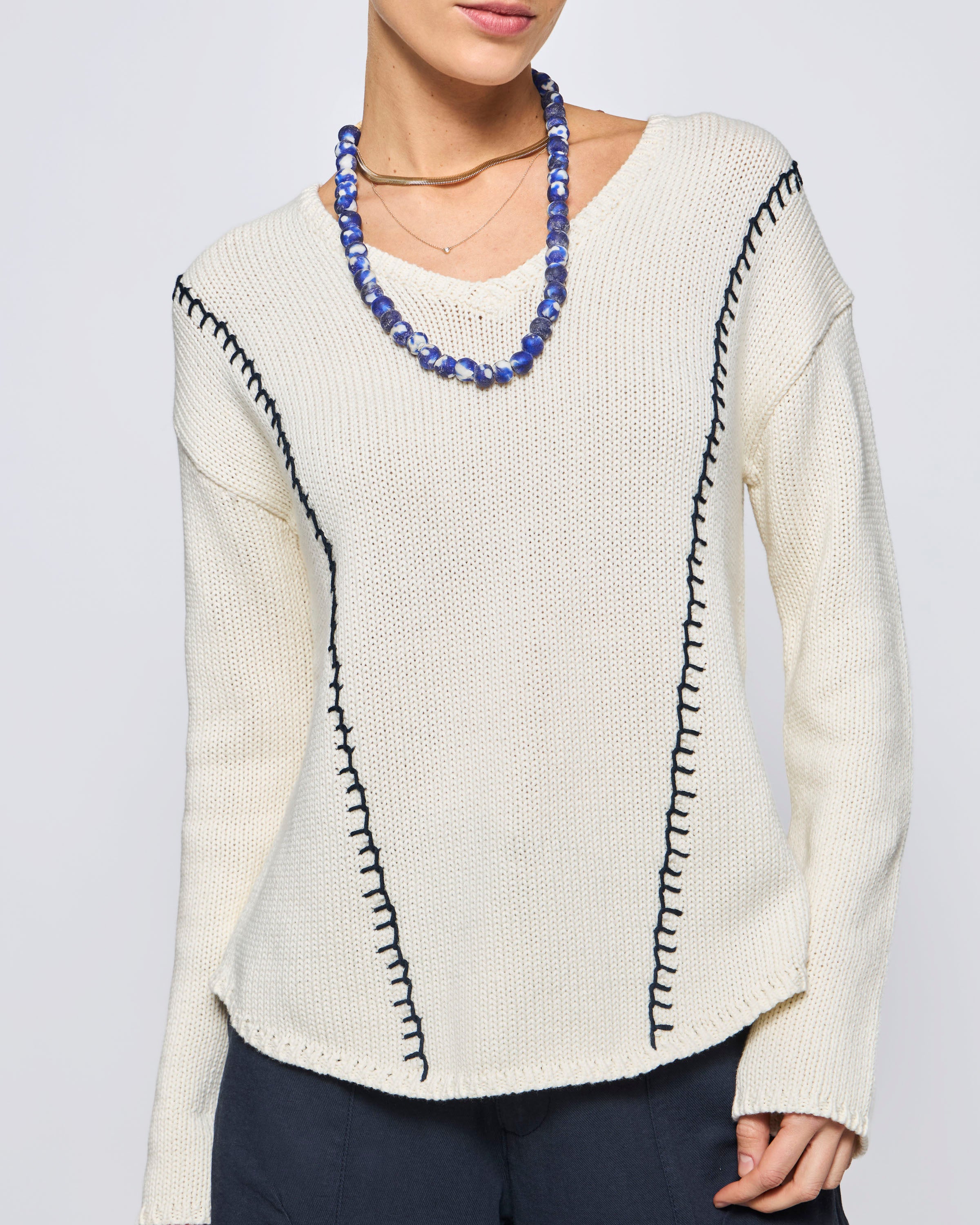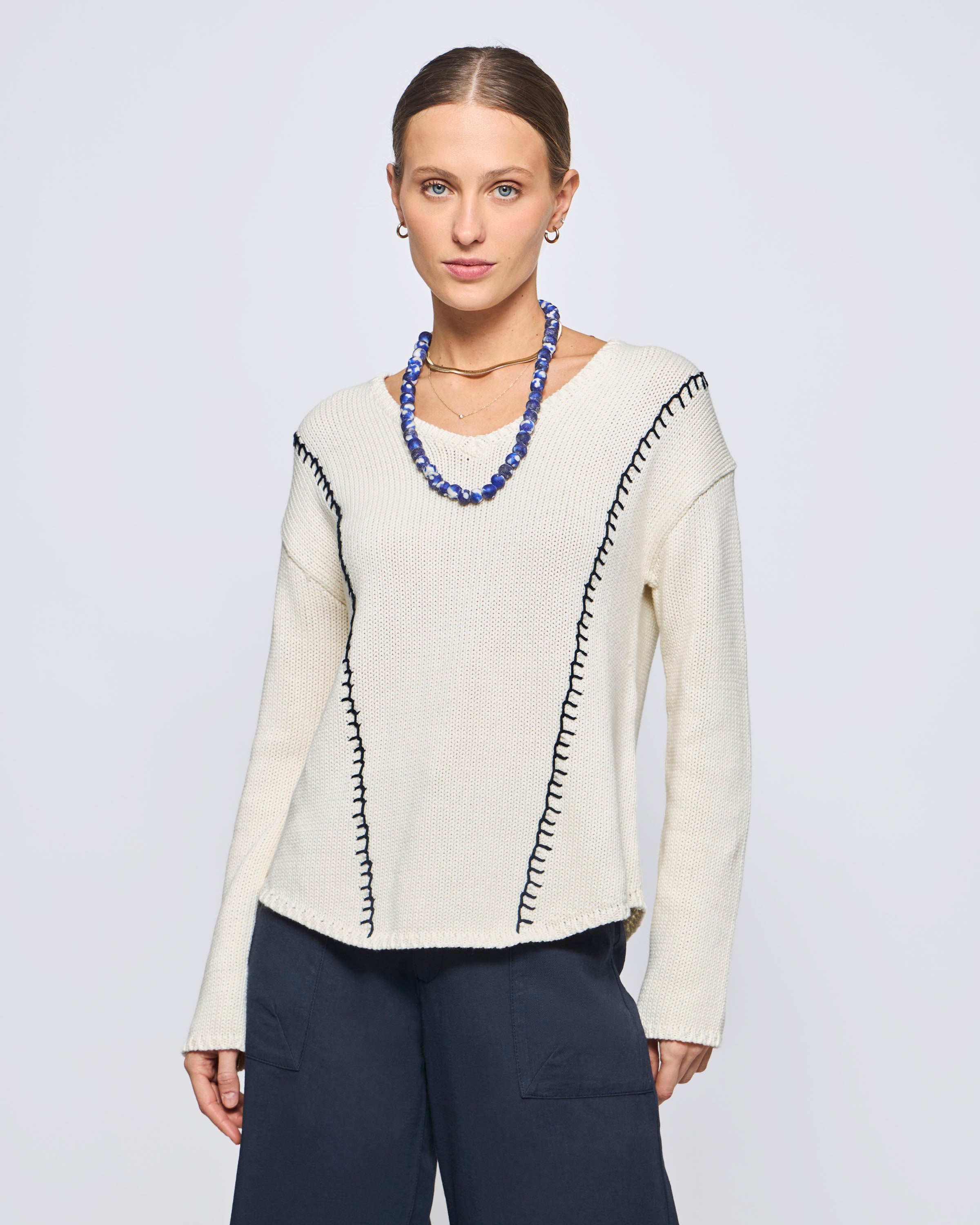 Sweater Córcega Cuello V Algodón Slub