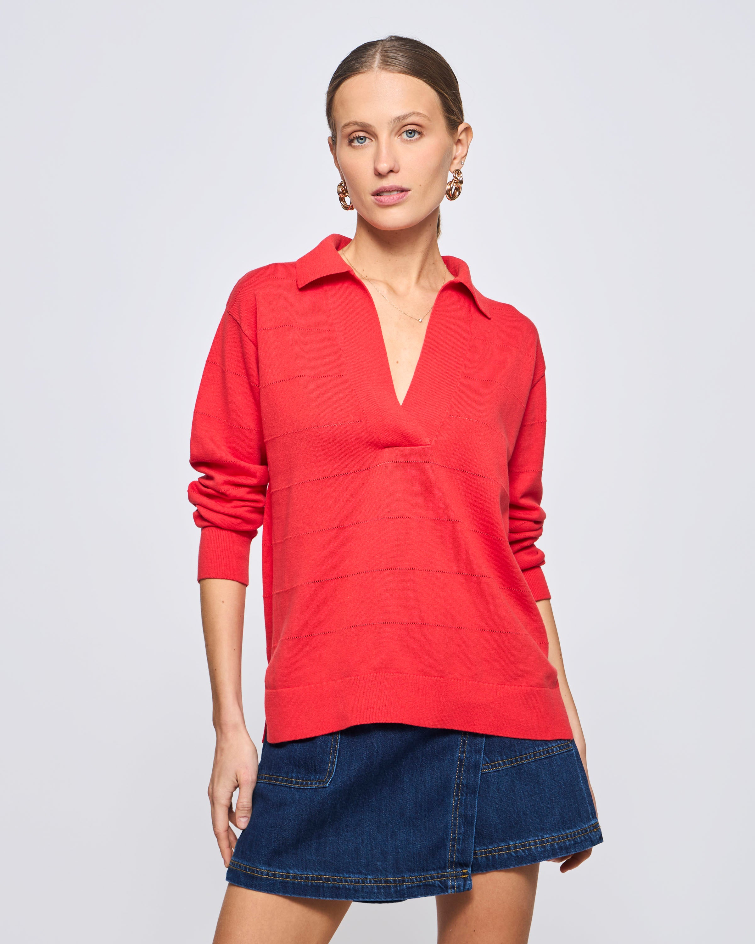 Sweater Camisero Raya Y Calado