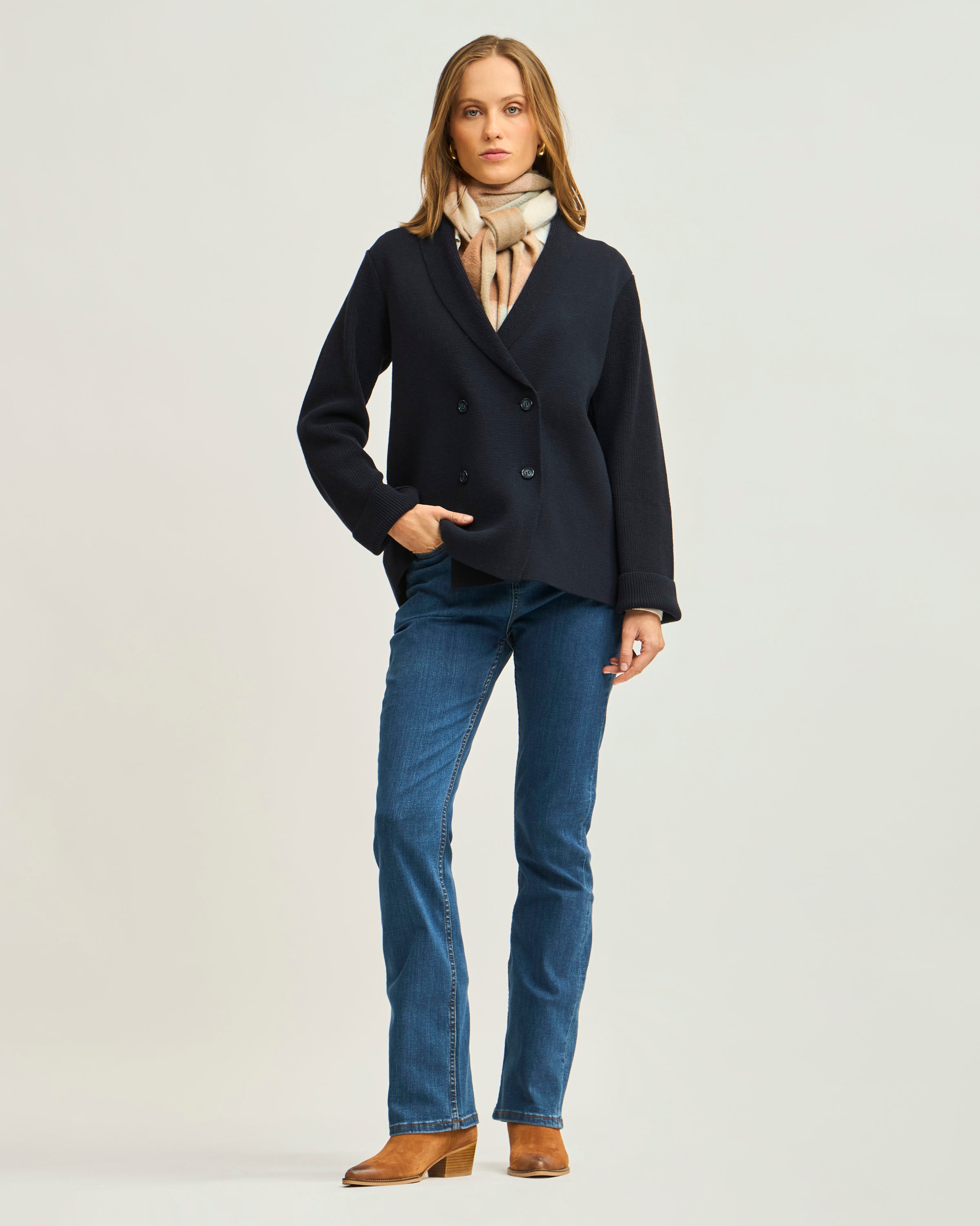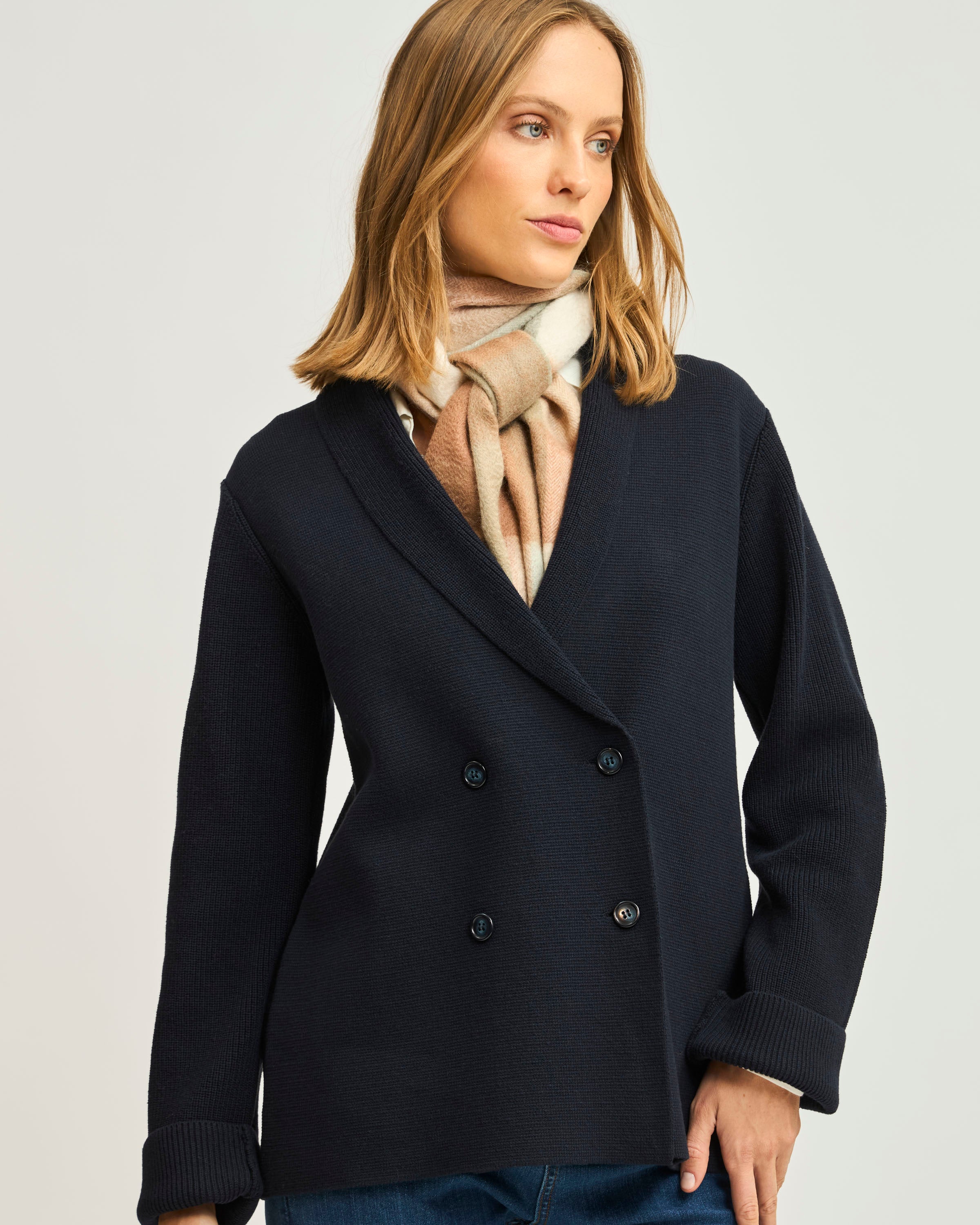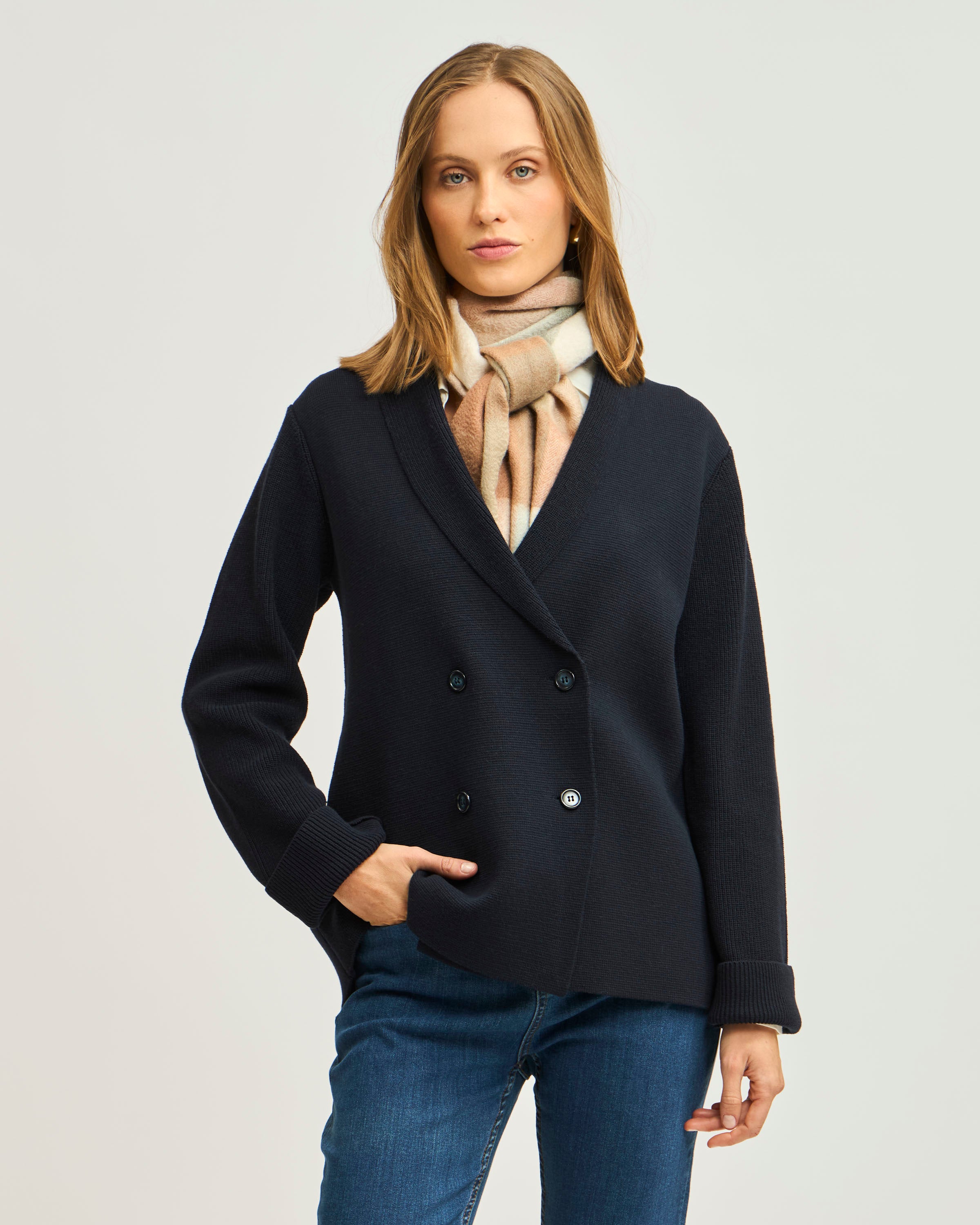 Cárdigan Cruce Botones Solapa y Mangas en Rib