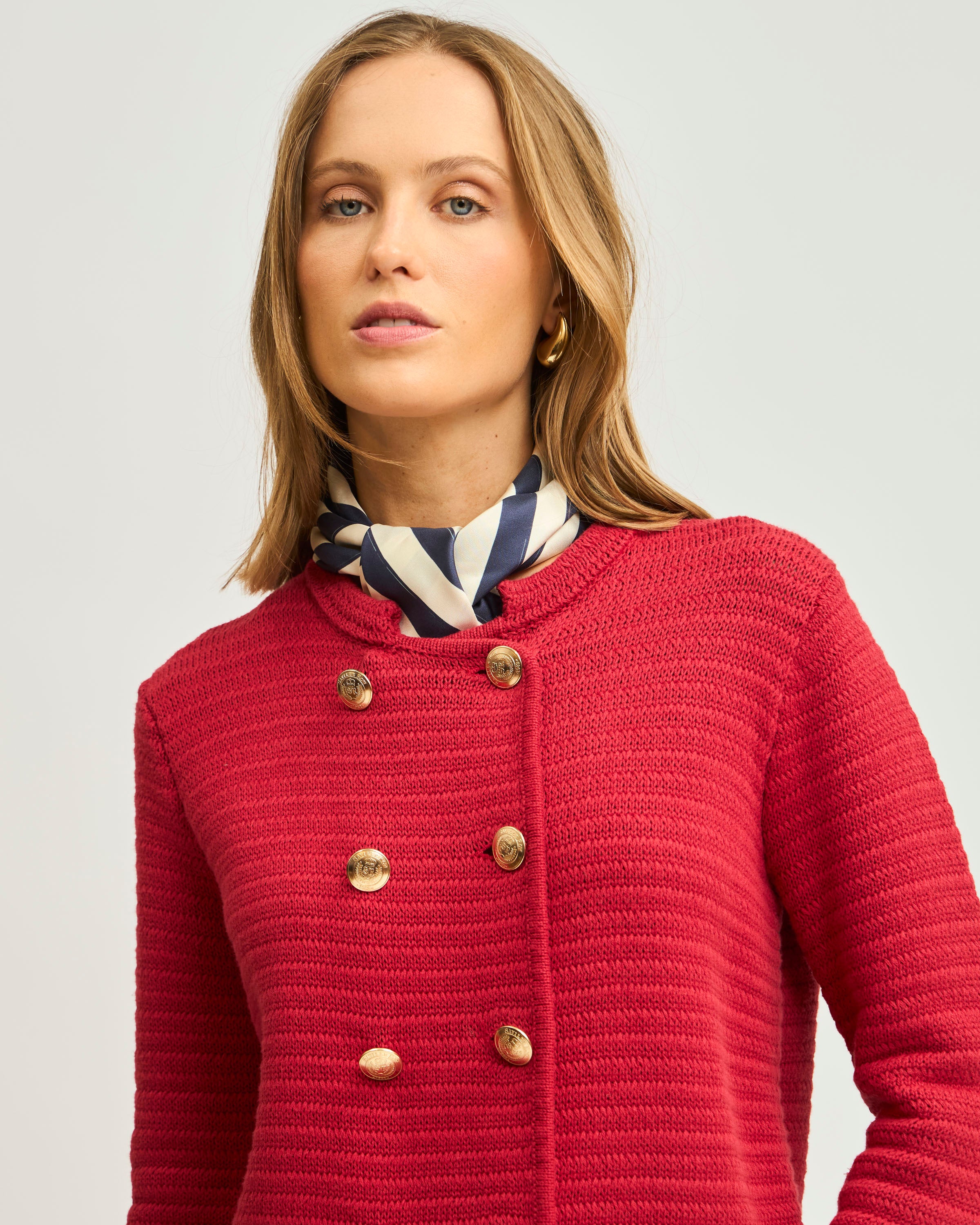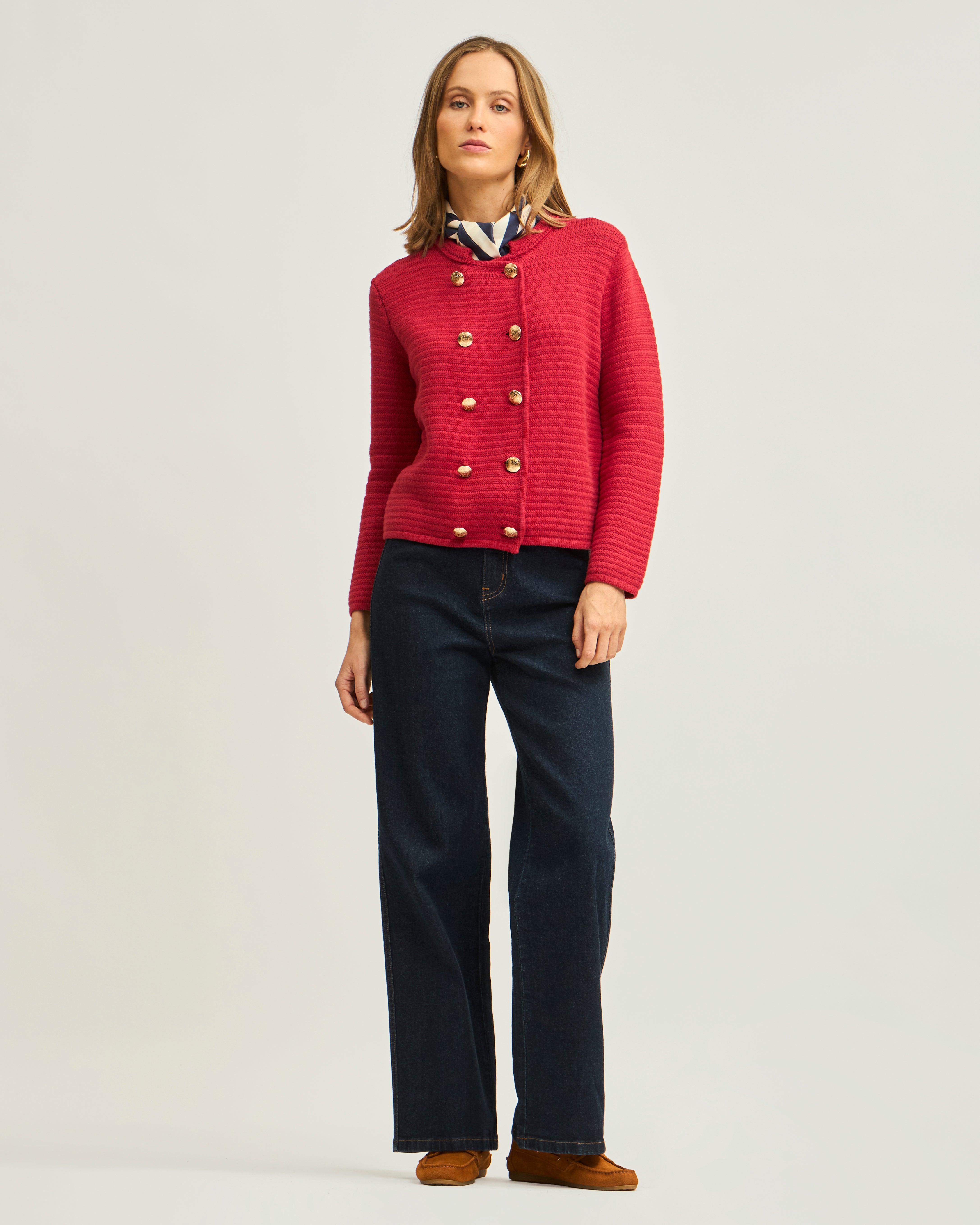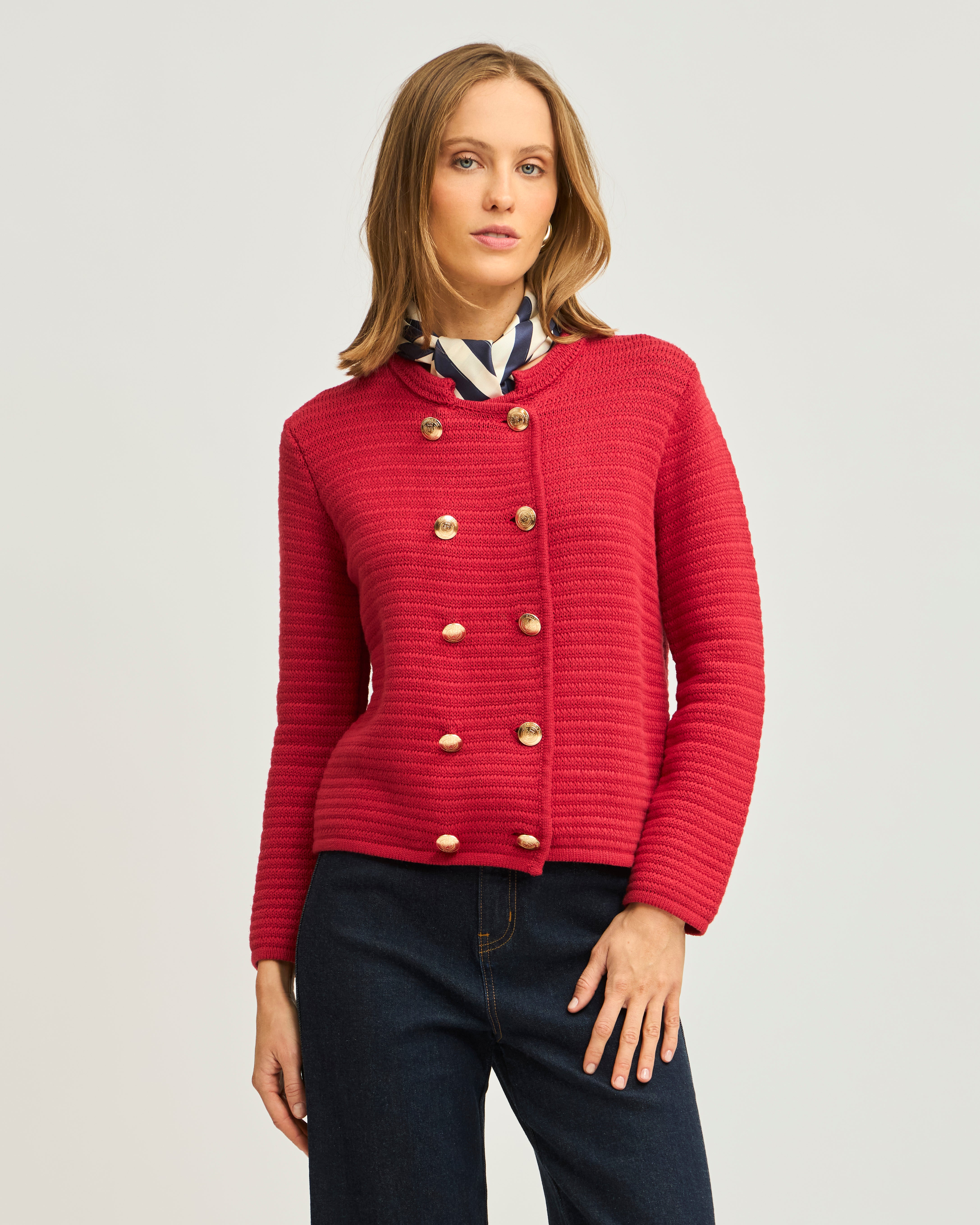 Cárdigan Rayado con Botones Doble Plaquet contrastado