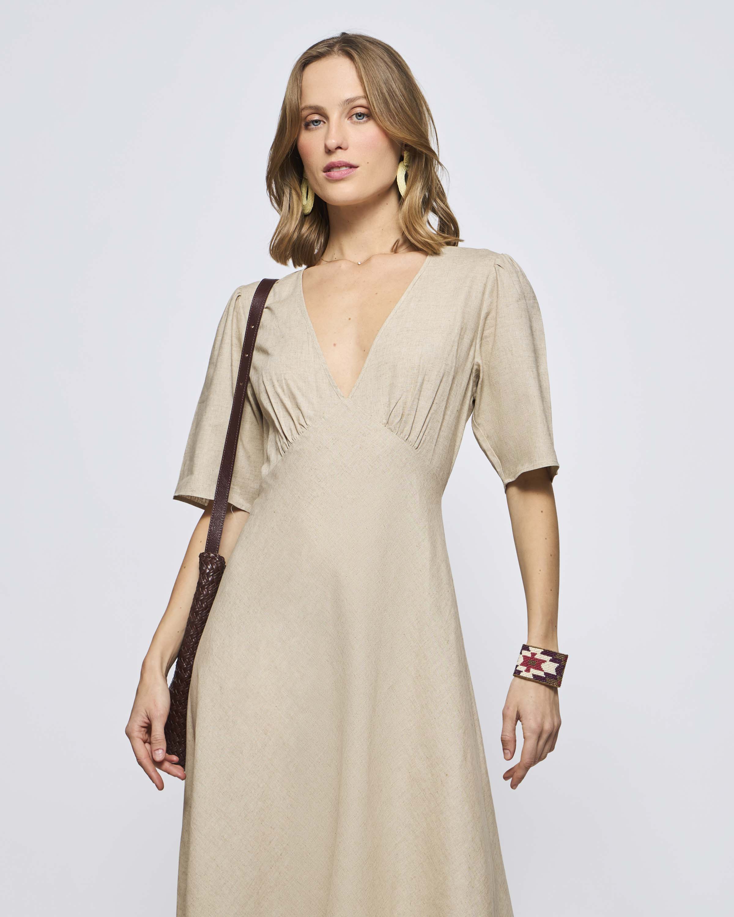Vestido Manga Corta Princesa Lino