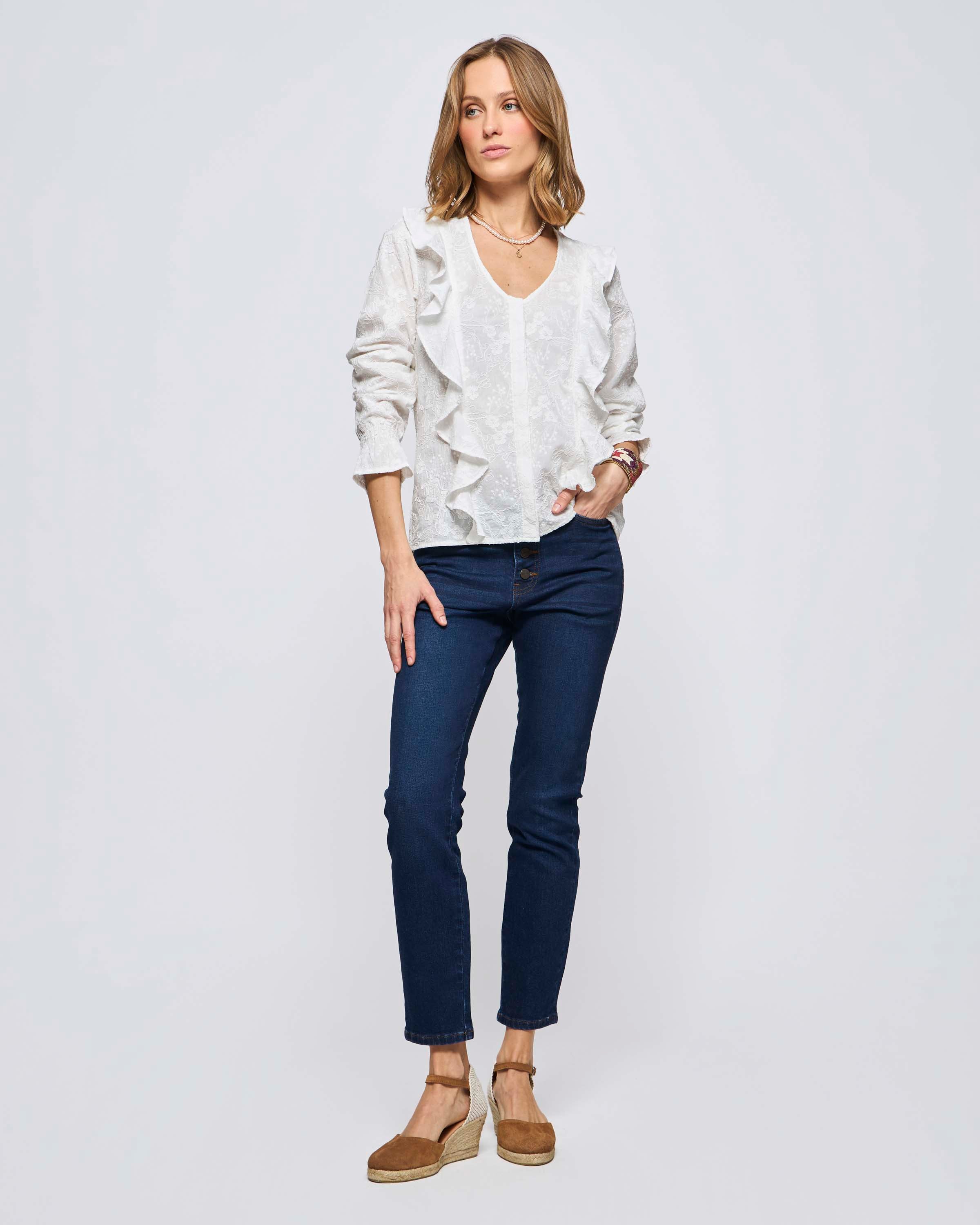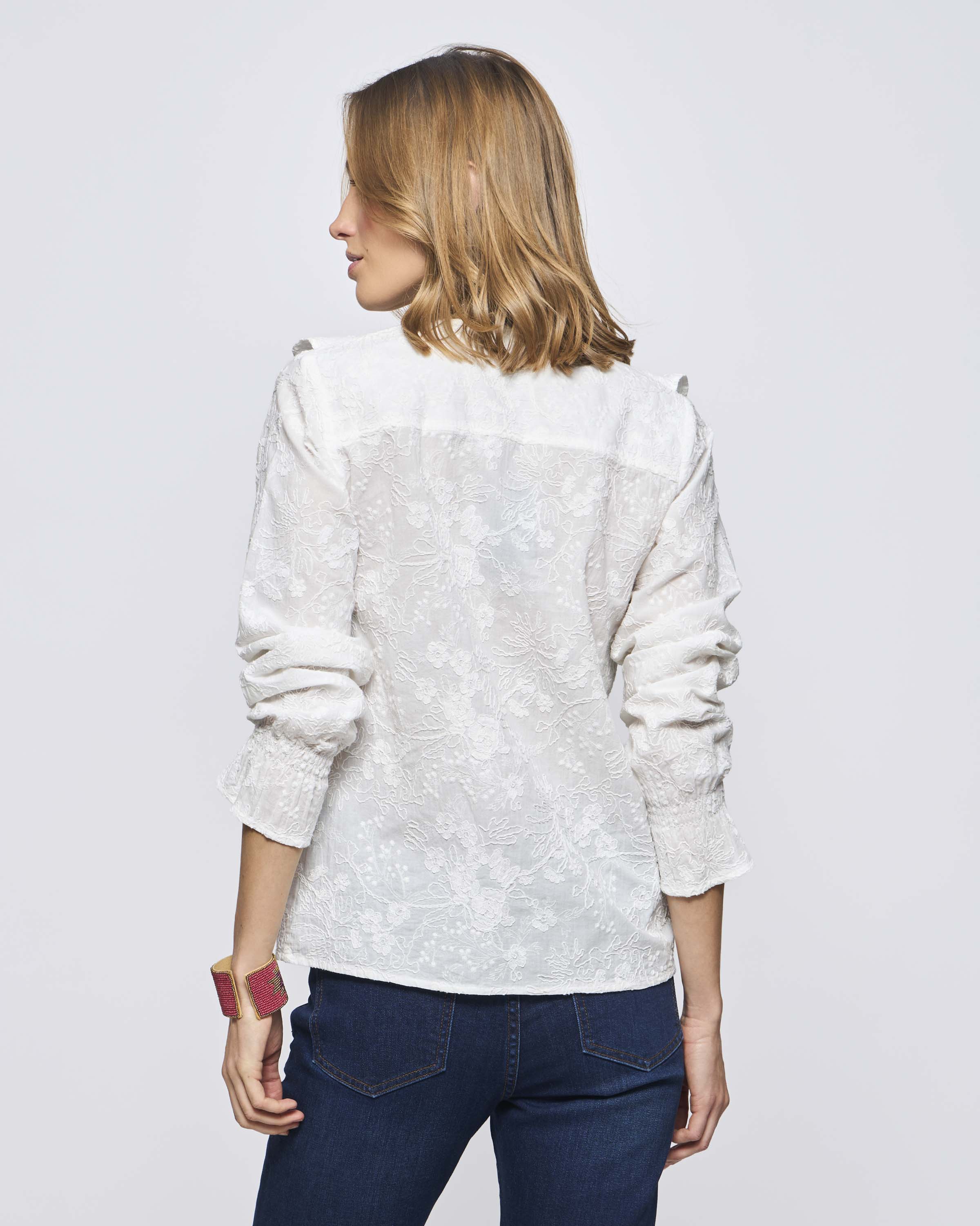 Blusa M/L Bordada Vuelos Laterales