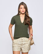 Polera Tejida Camisera en V
