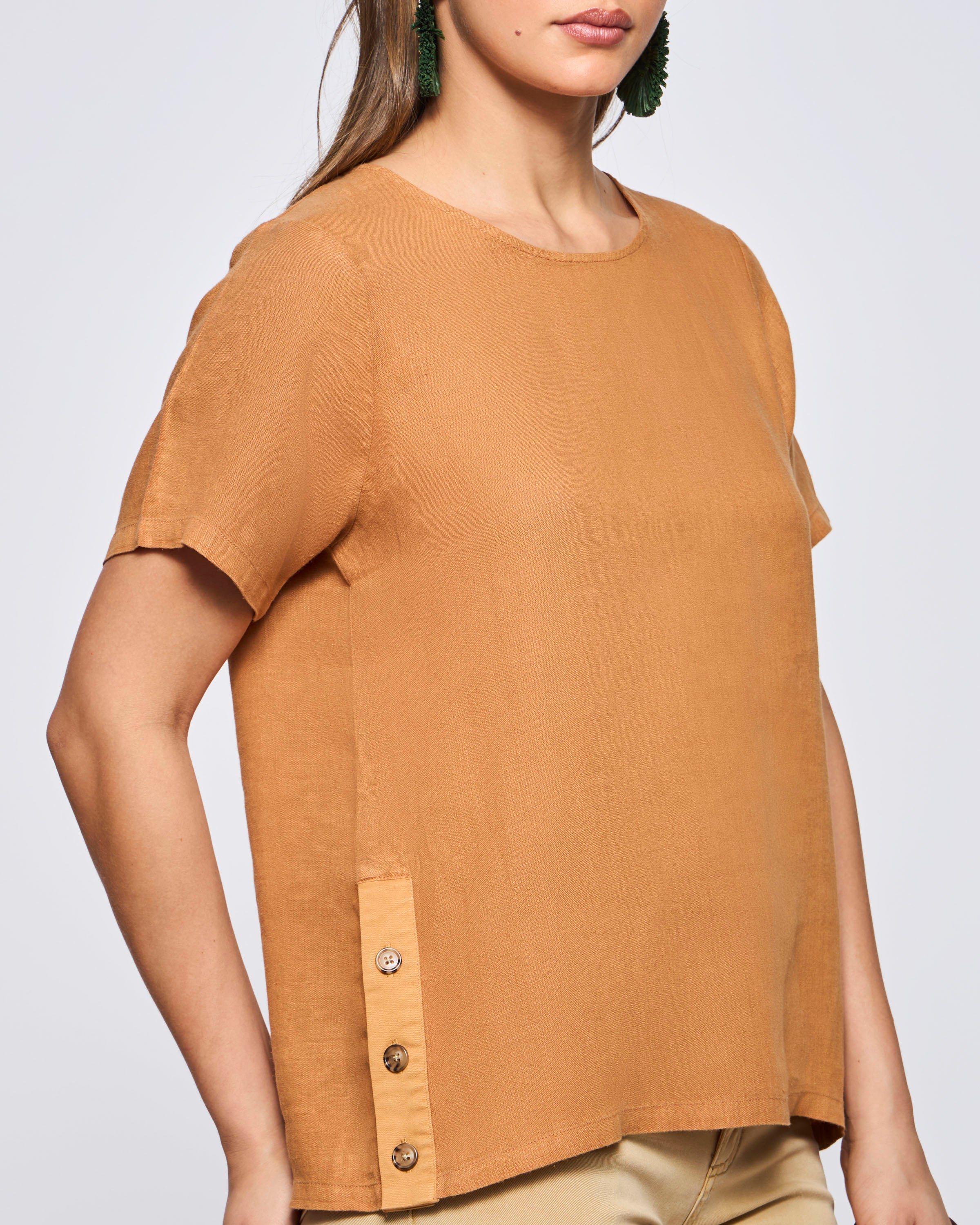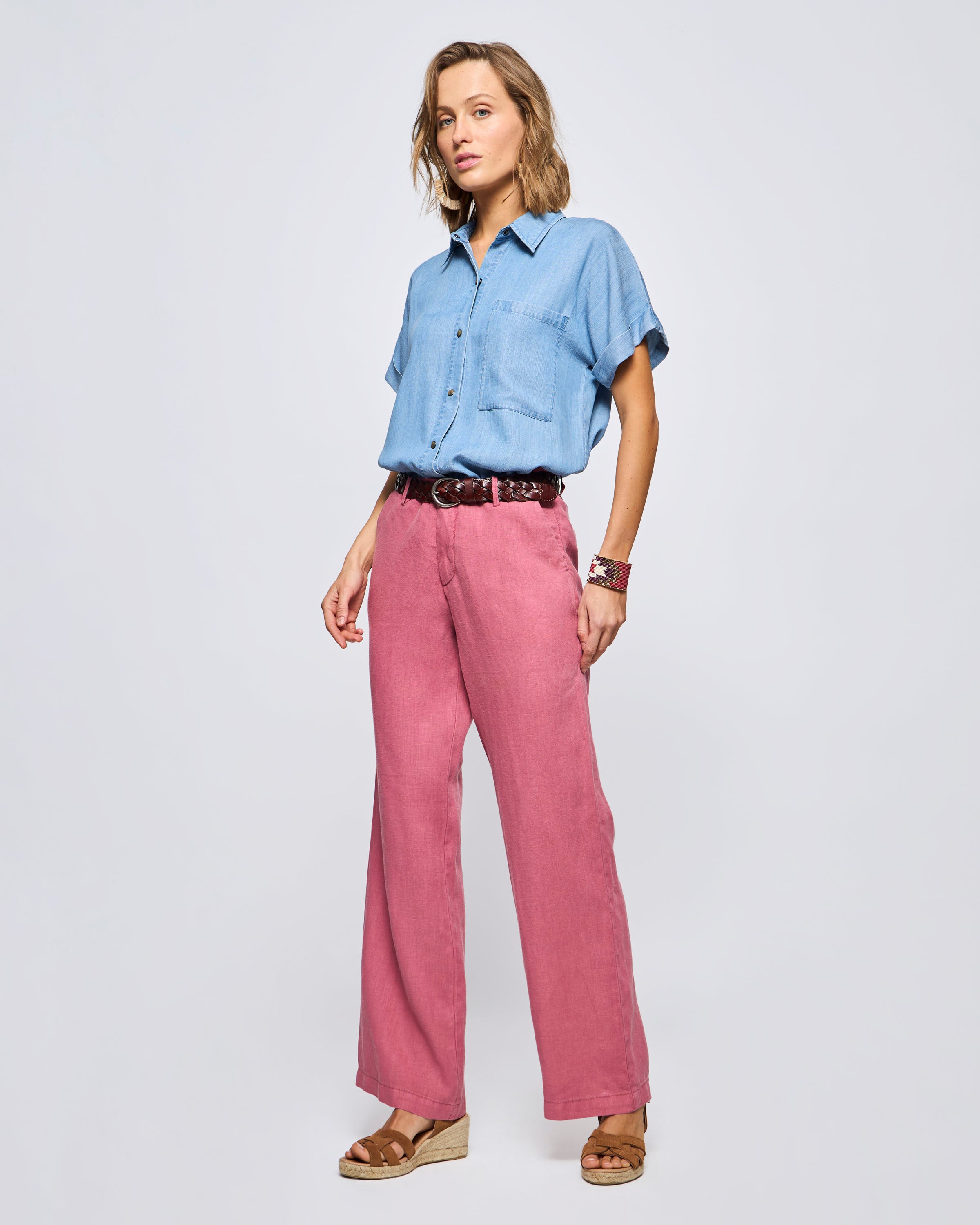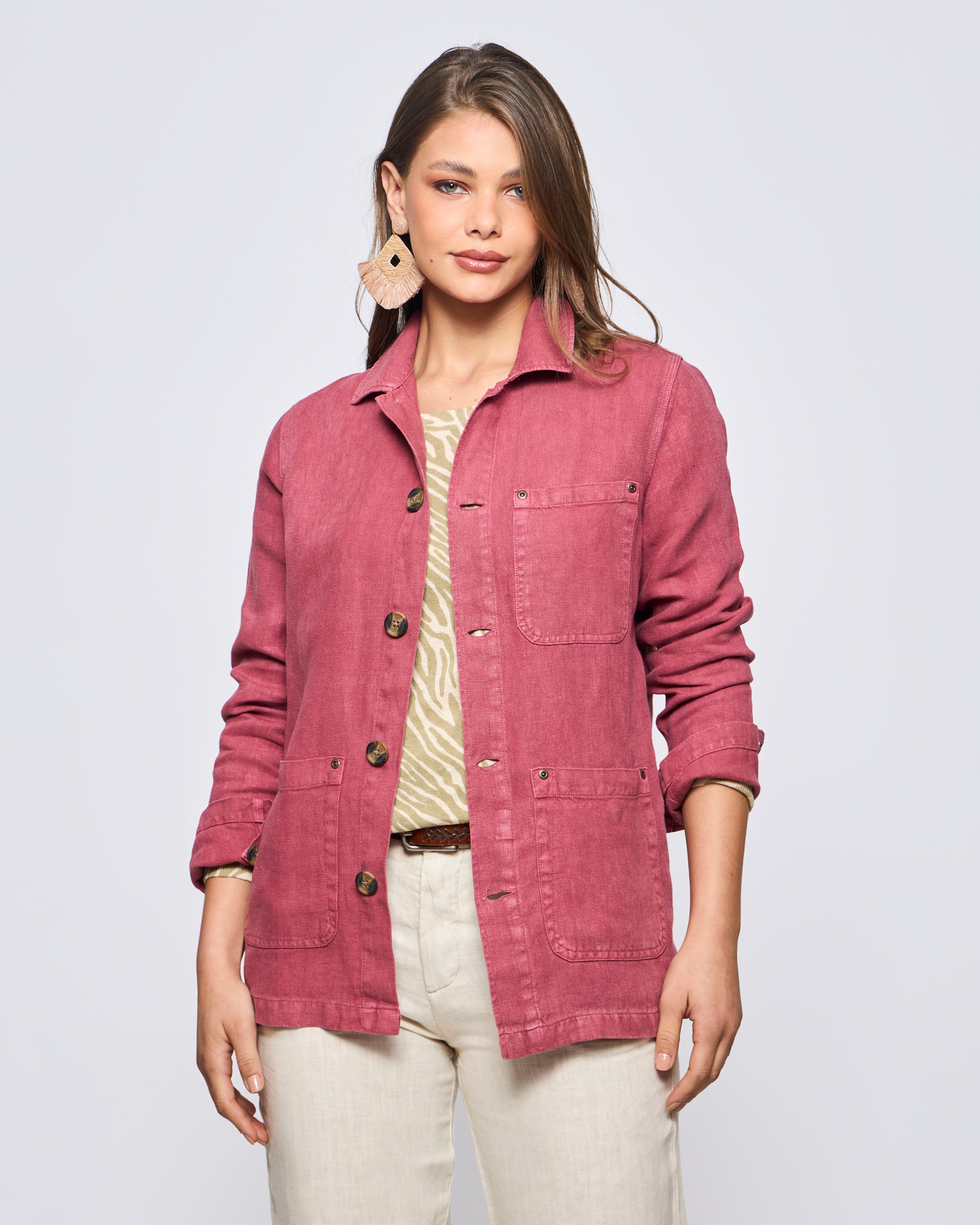 Camisa Sahariana Print un Bolsillo Vintage Lino