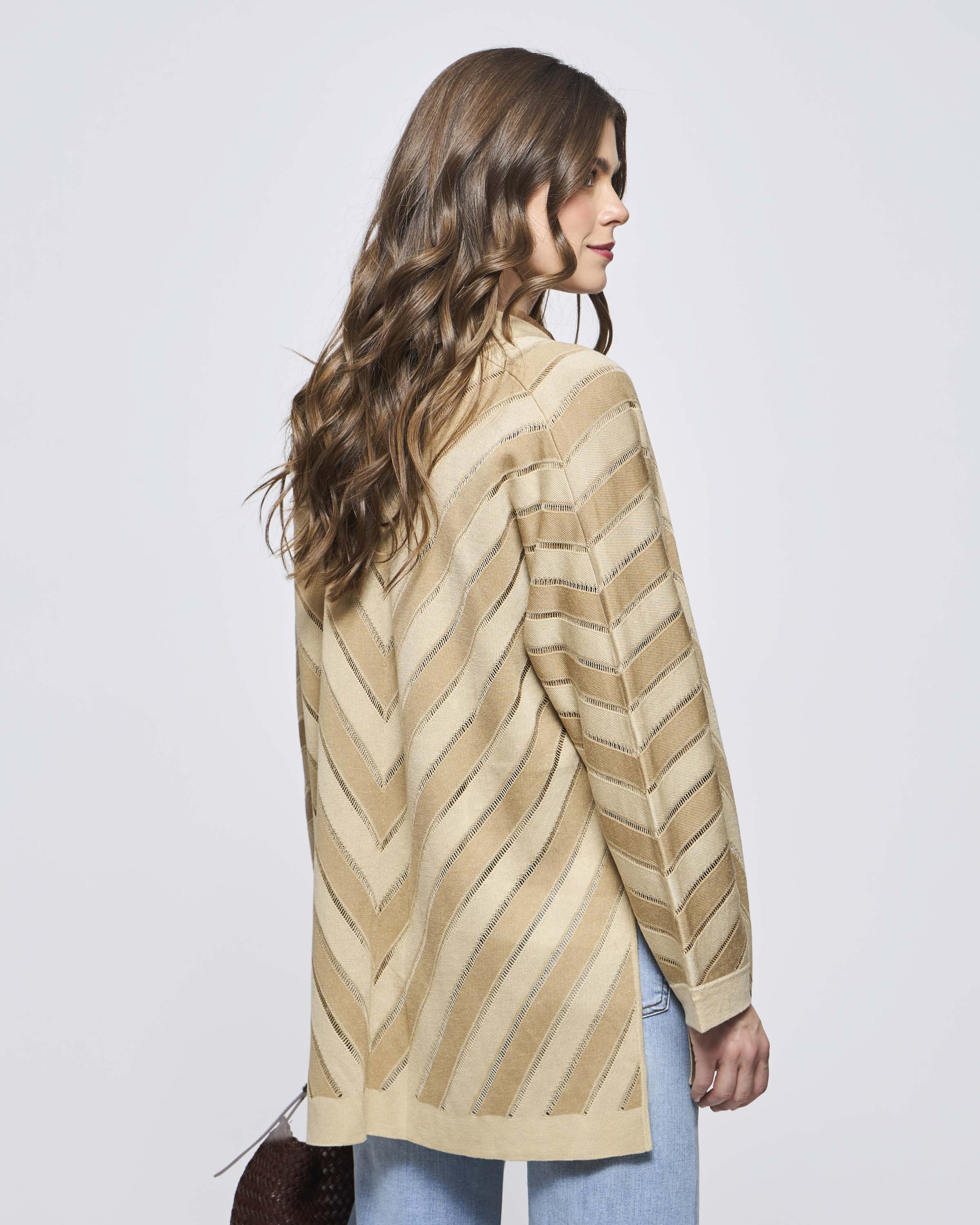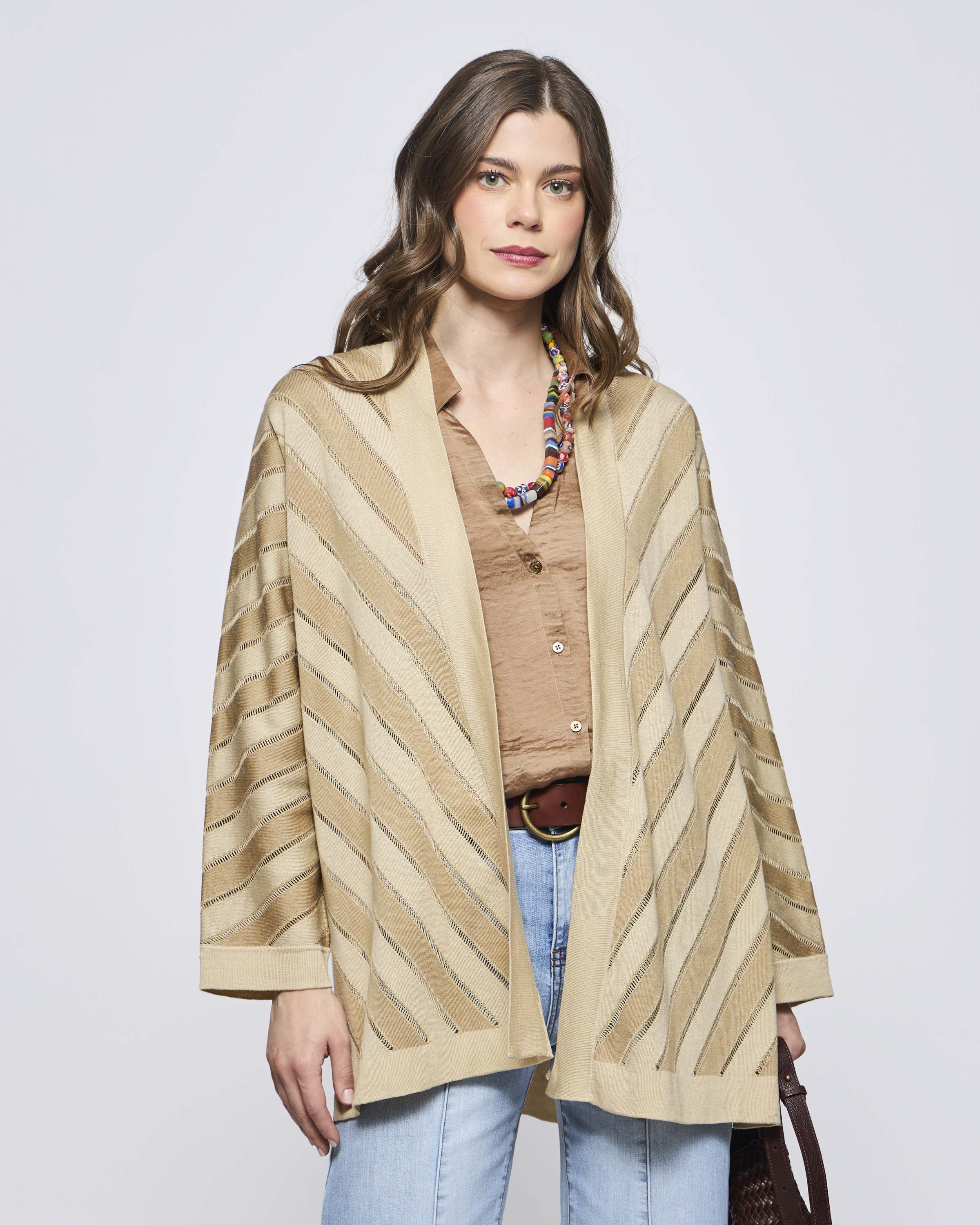 Blazer Lino Manga 3/4 Raya delgada Azul Blanco