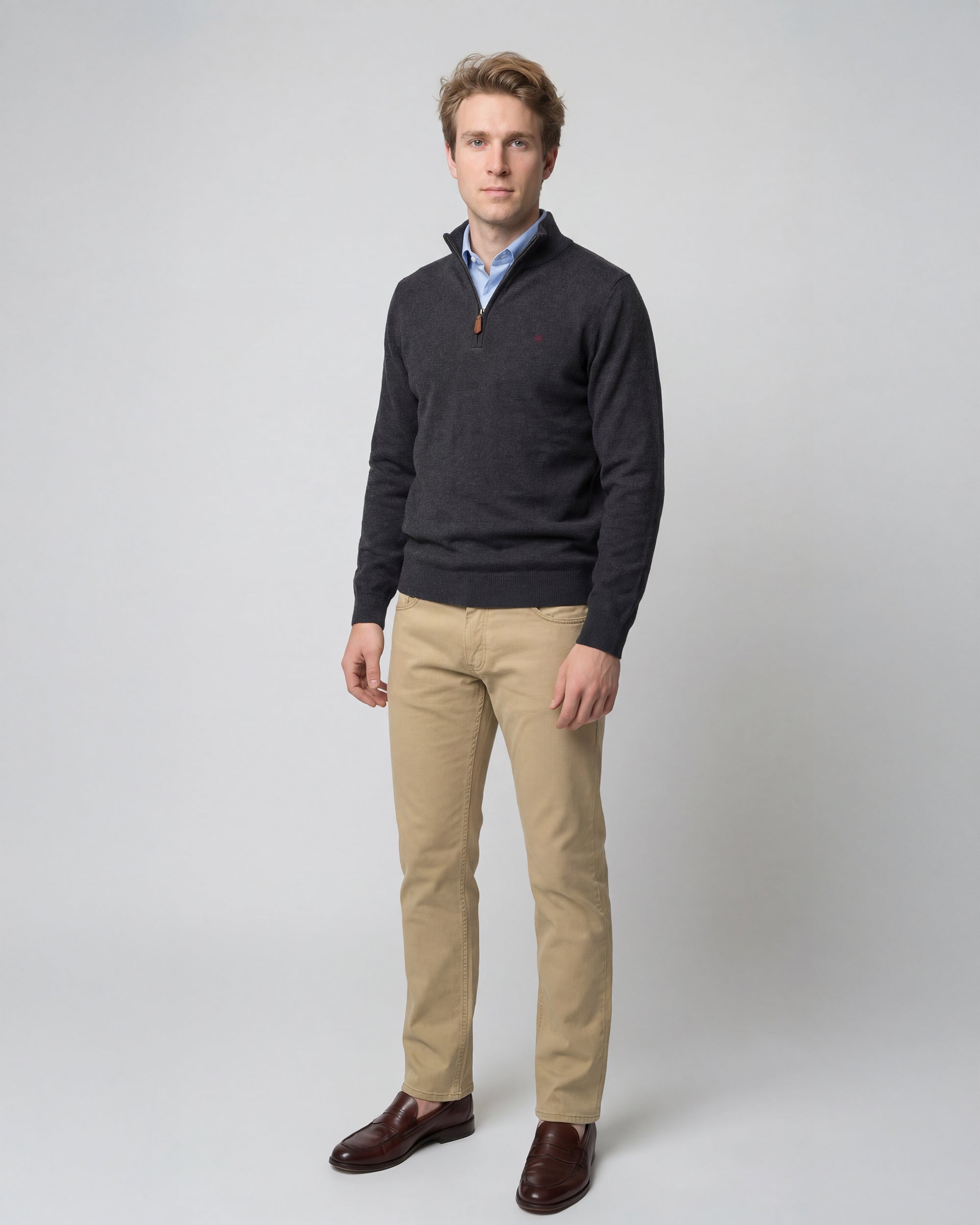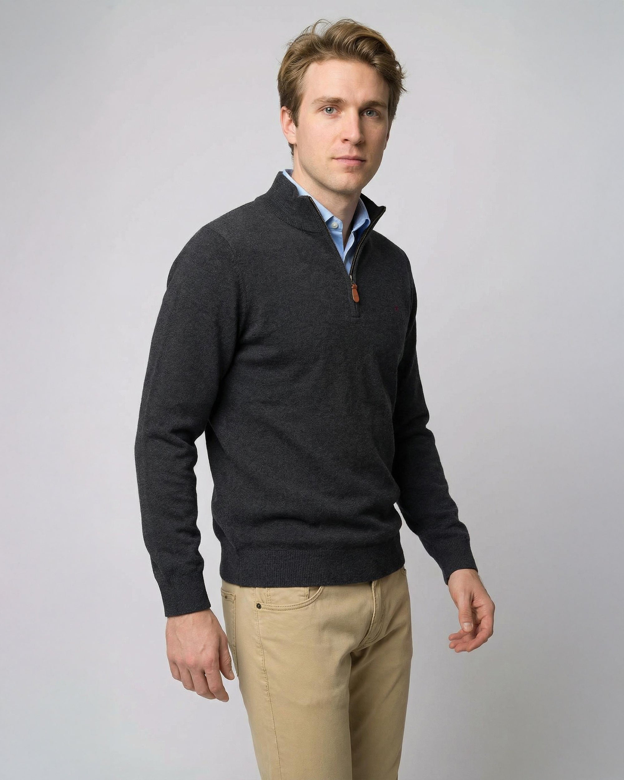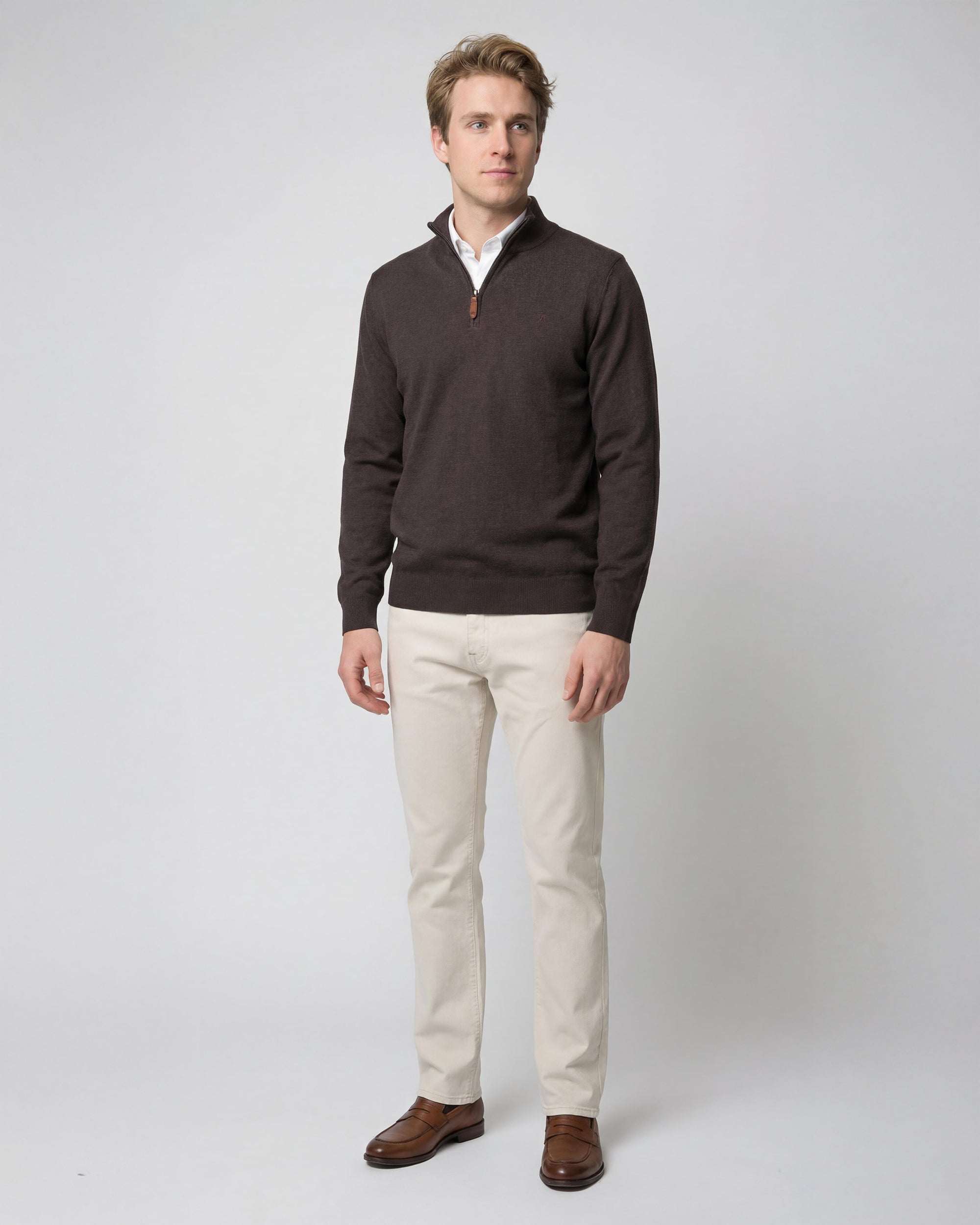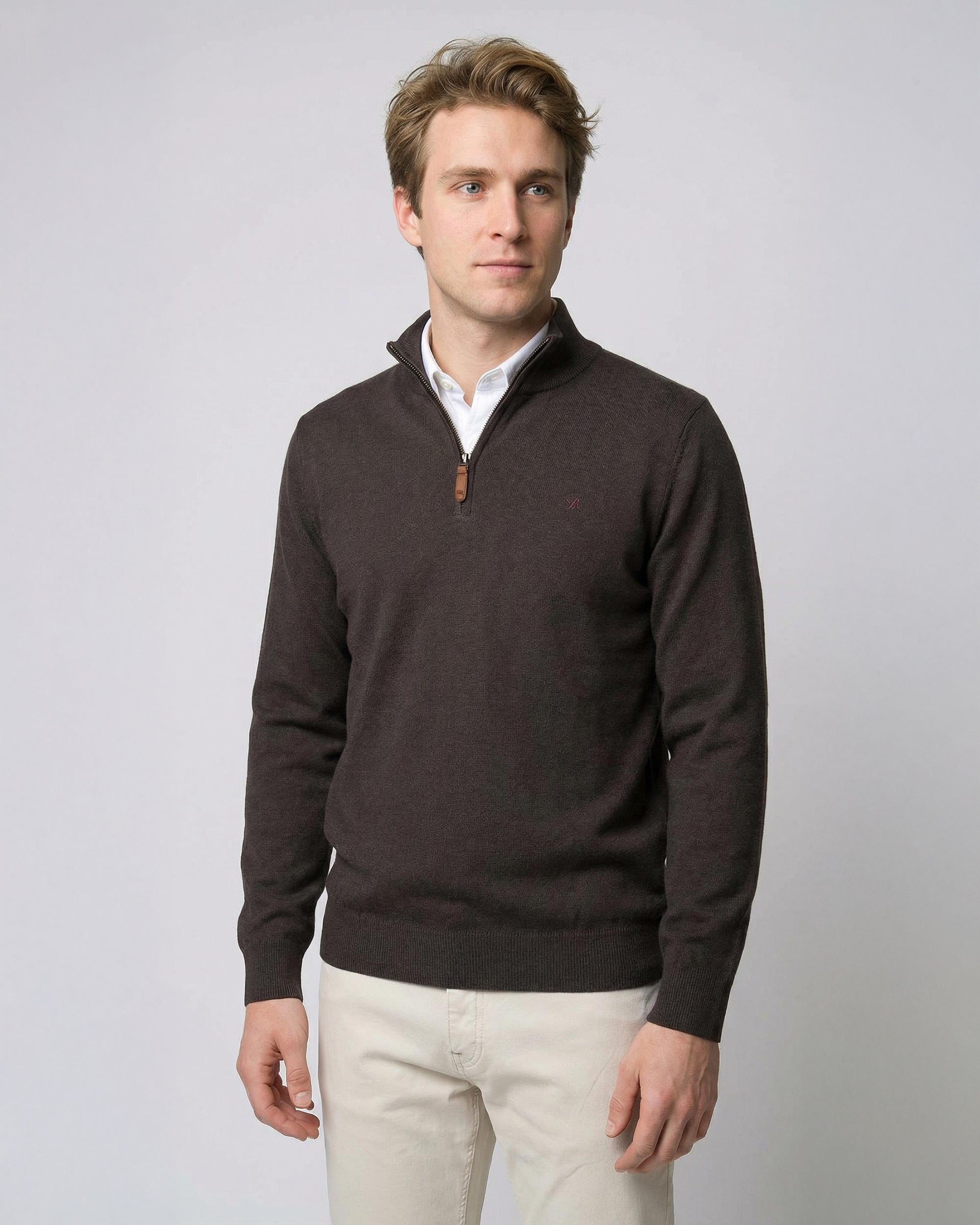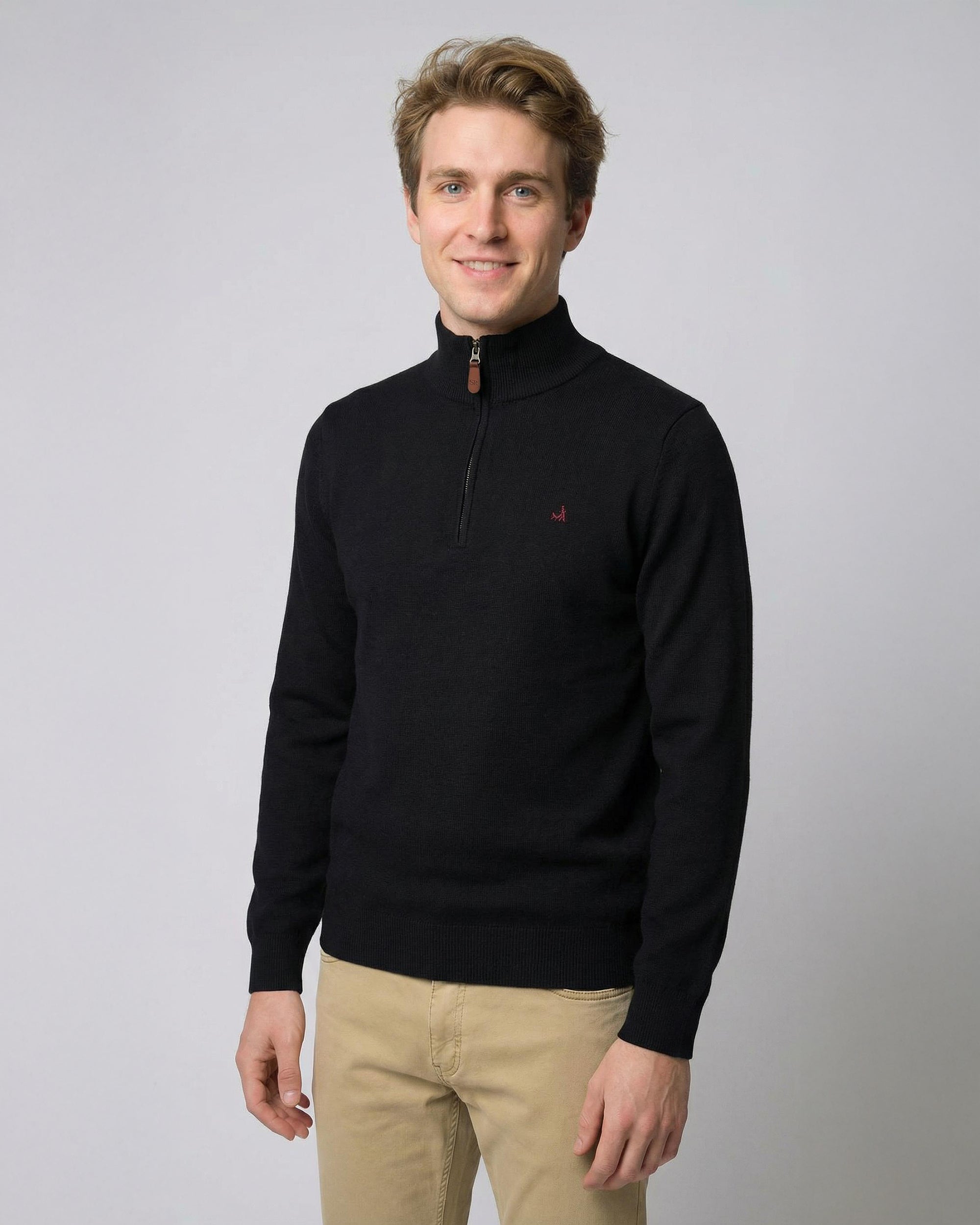 Sweater Medio Cierre Lana Merino Algodón