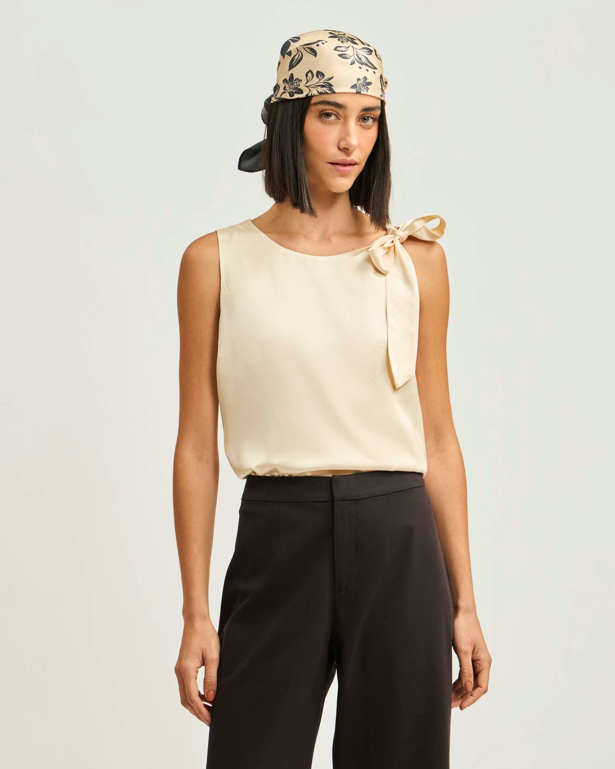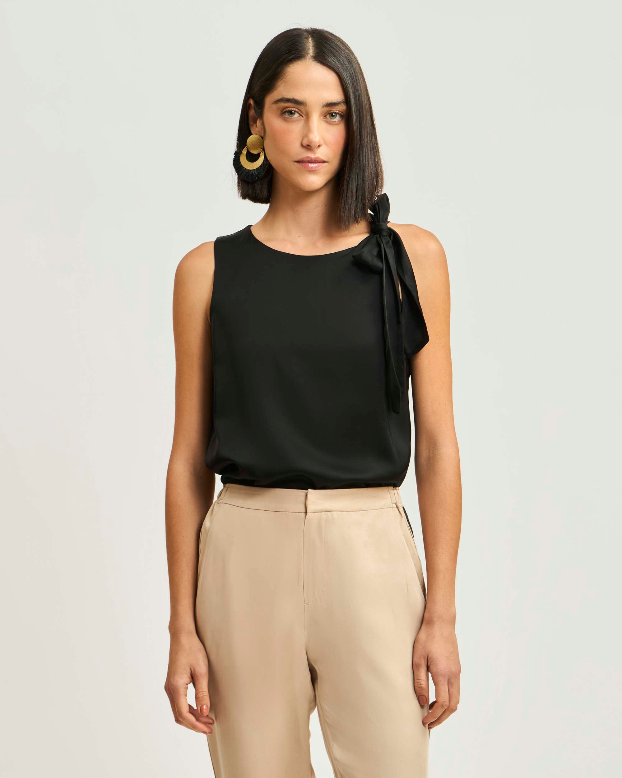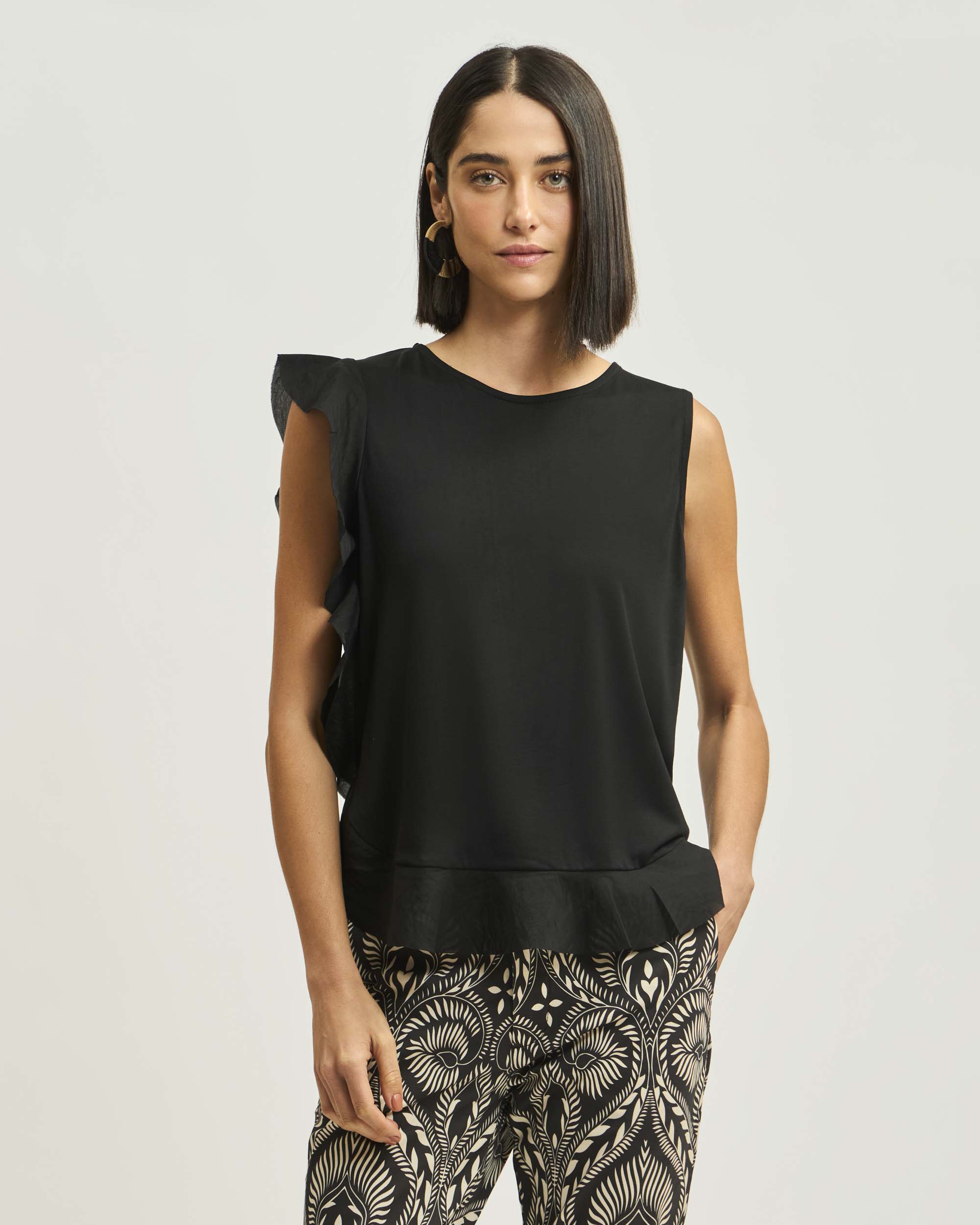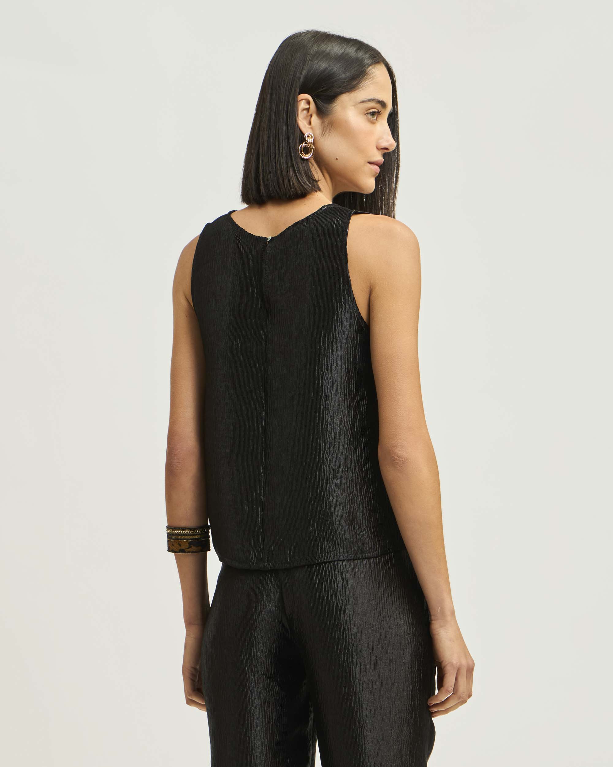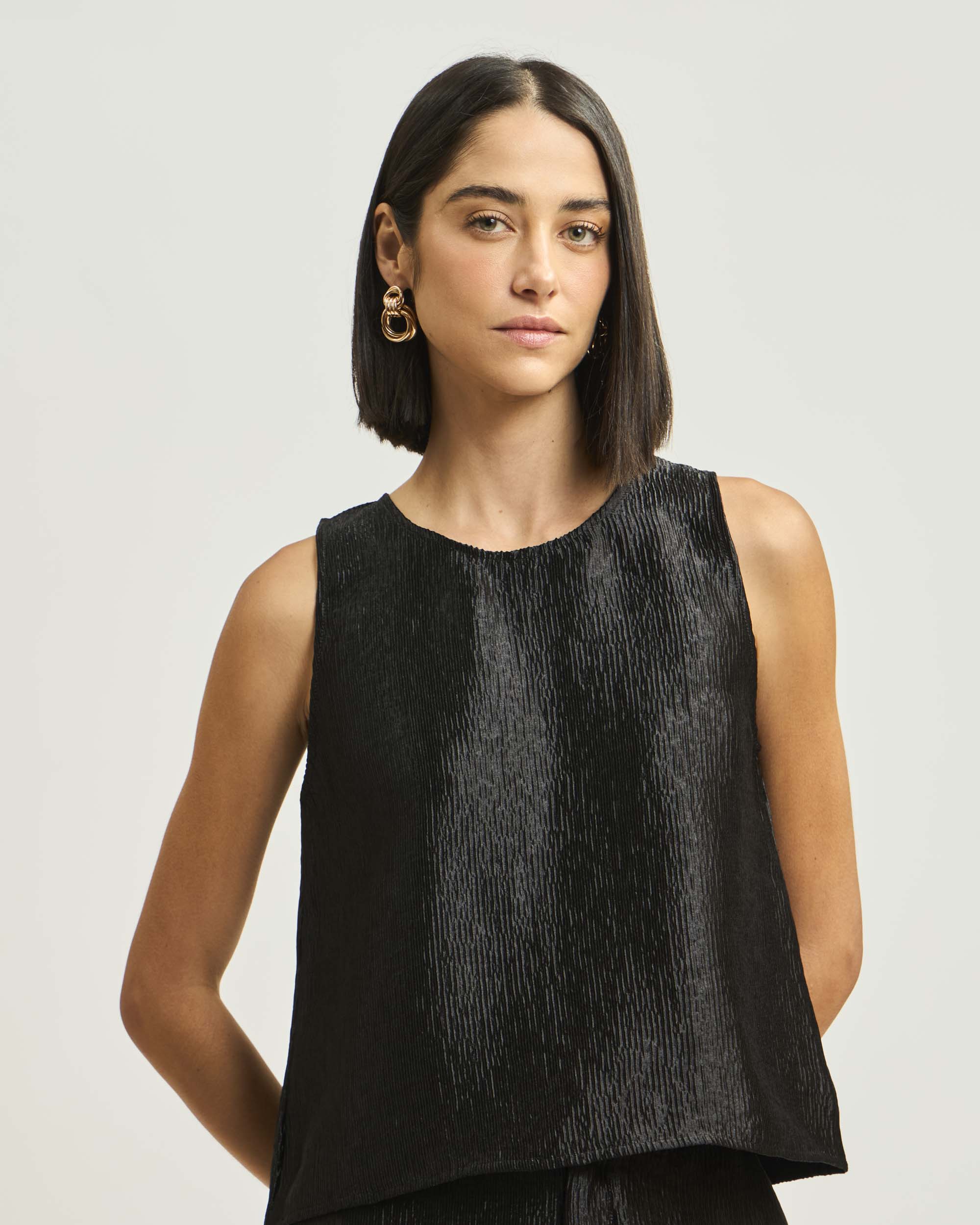 Blusa Sin Mangas Escote Cerrado En Set Texturado