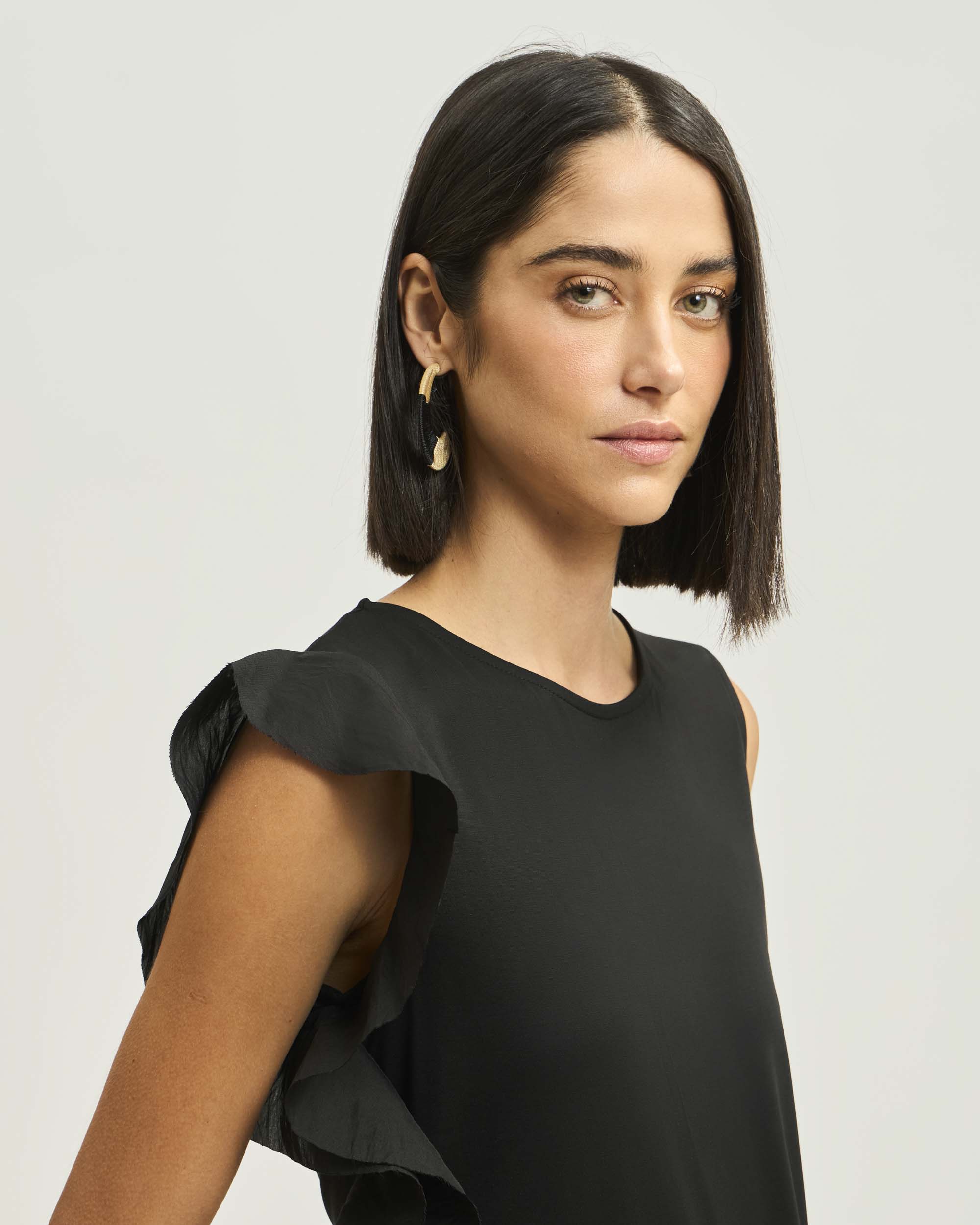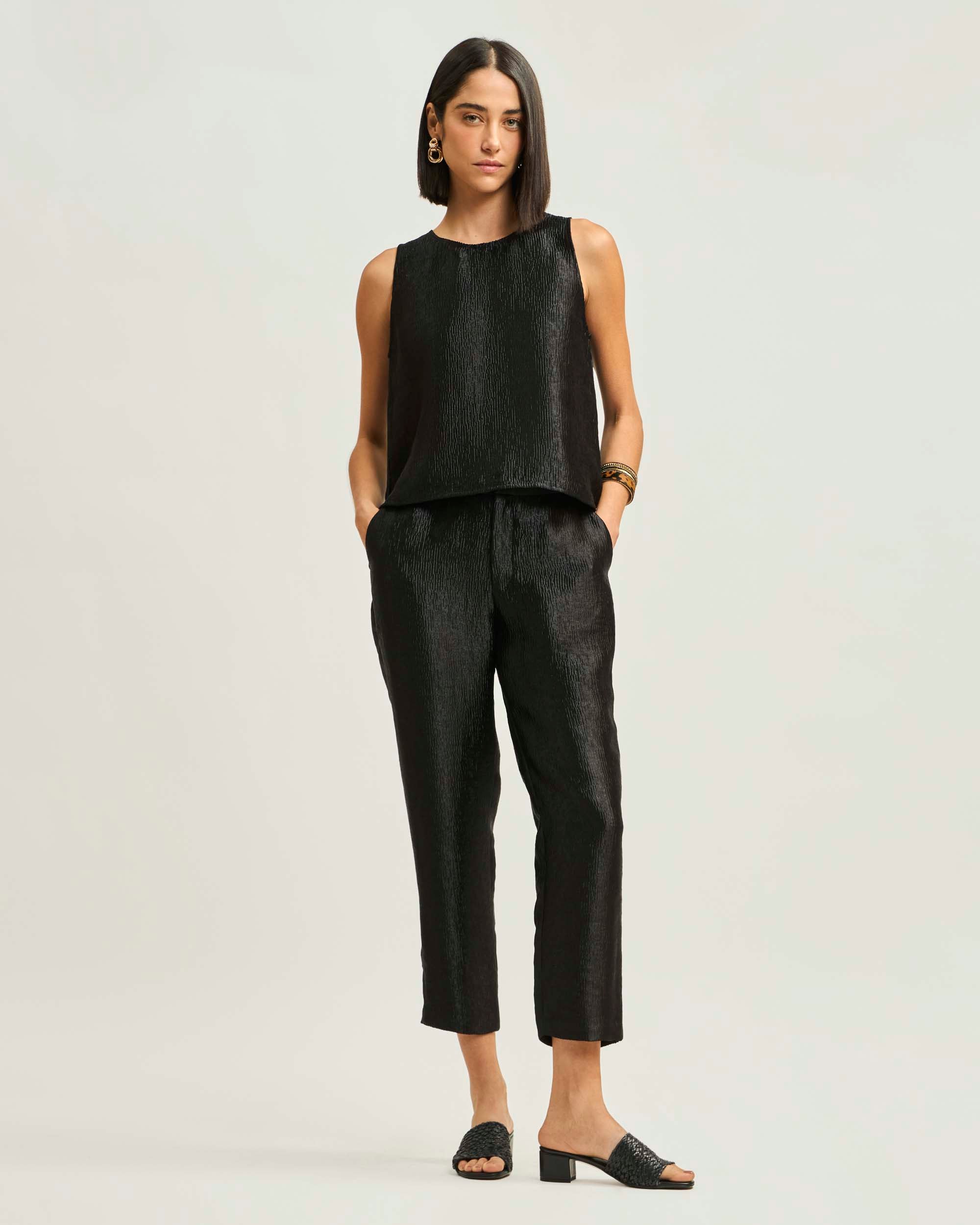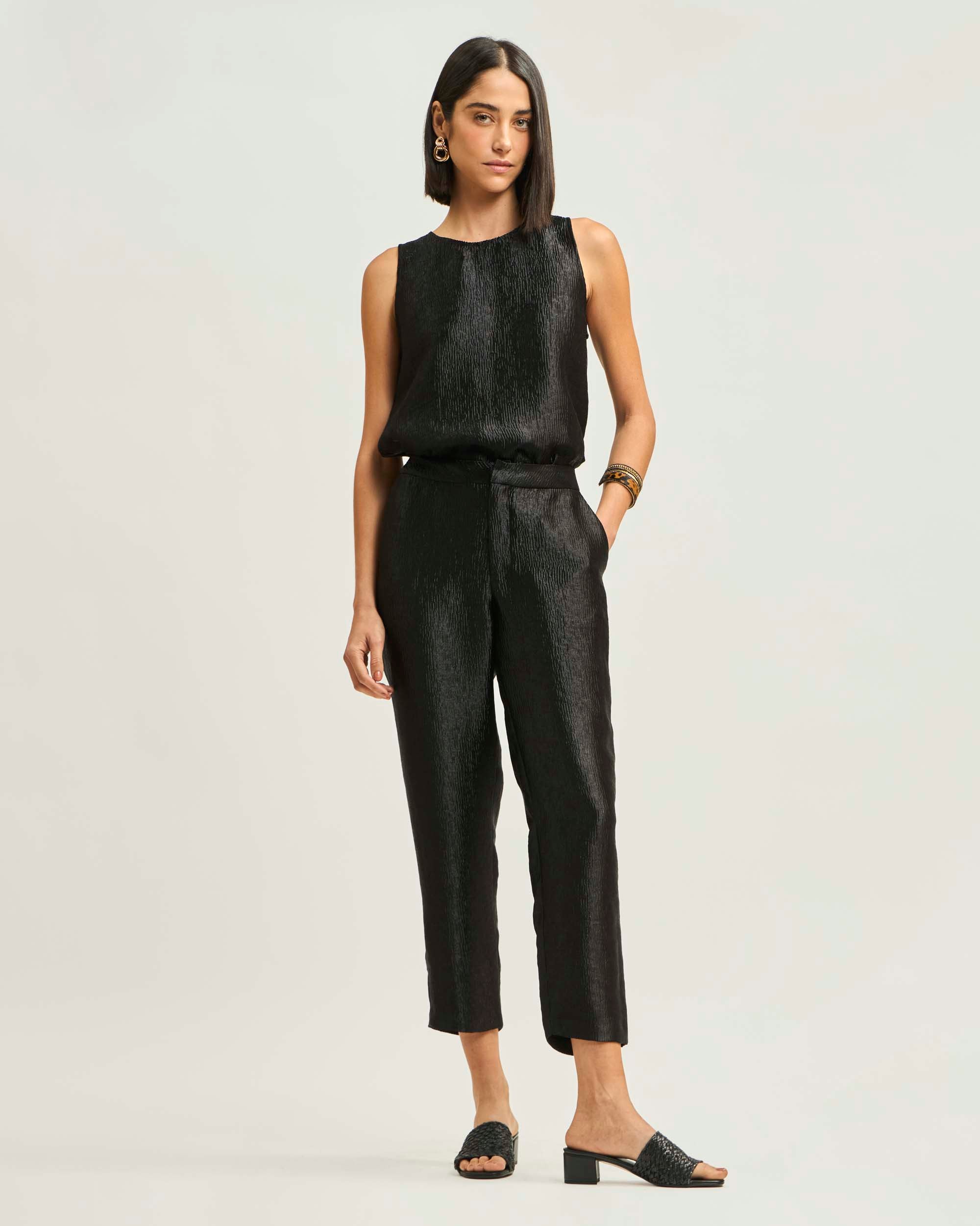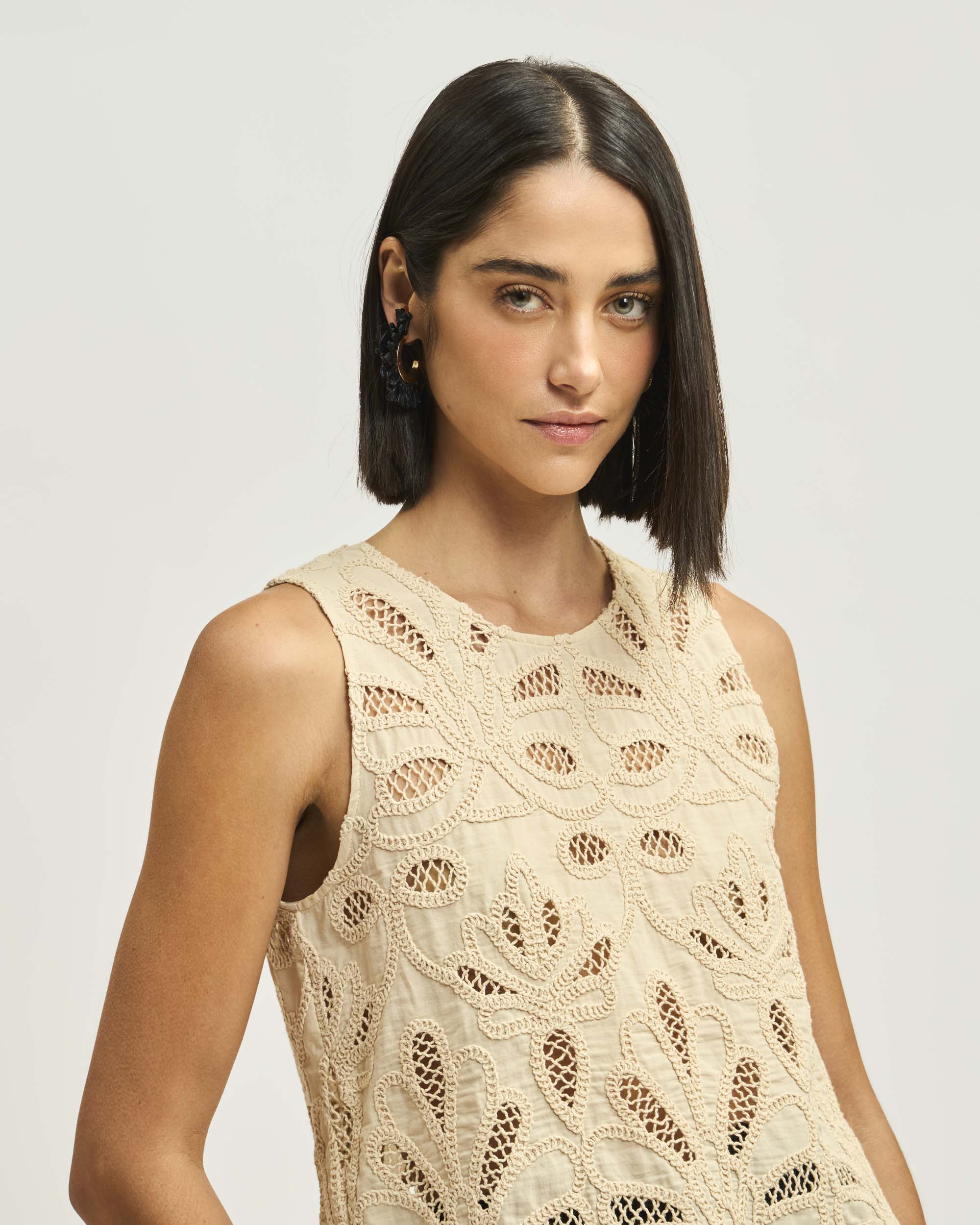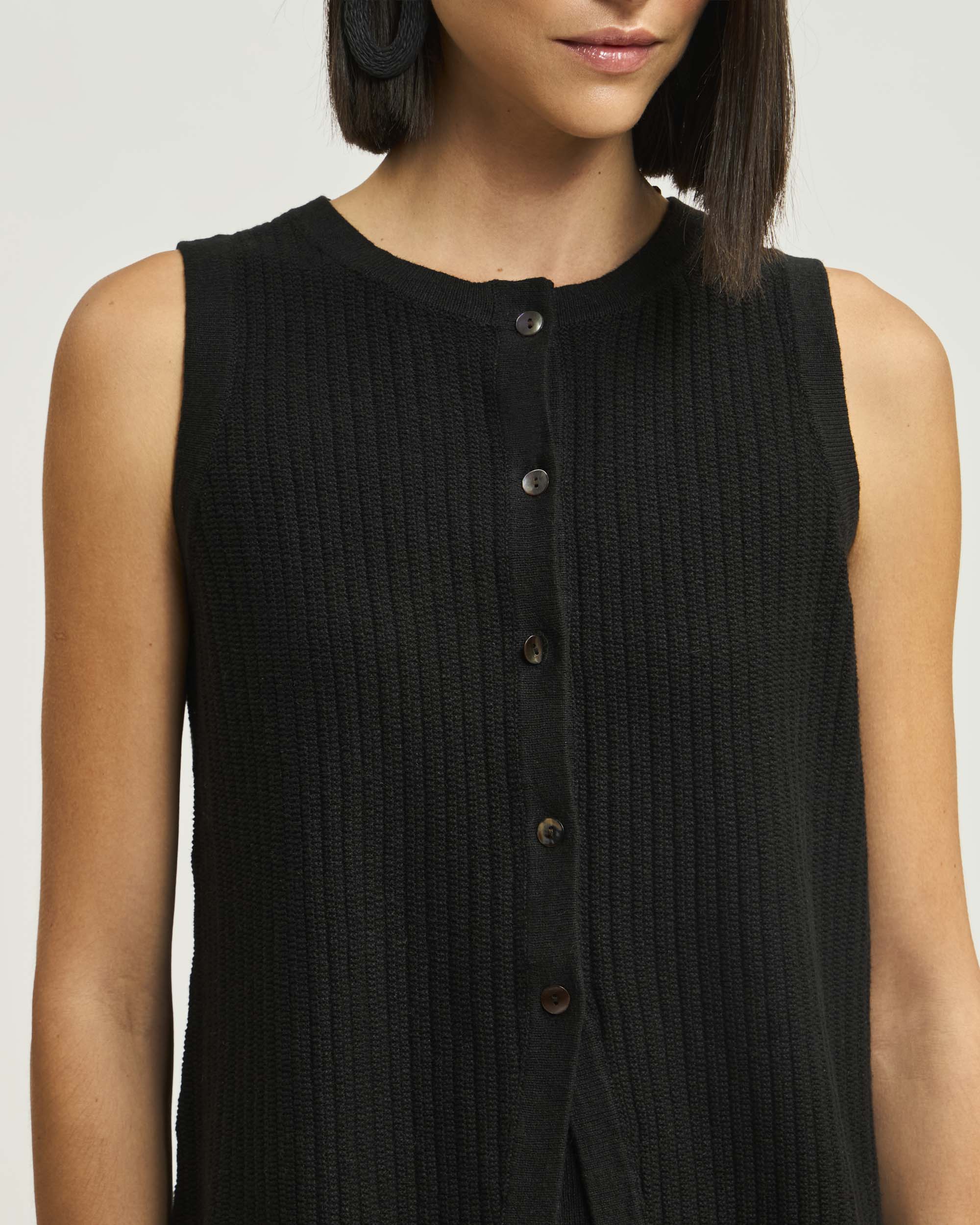 Blusa Sin Mangas Escote Cerrado En Set Texturado