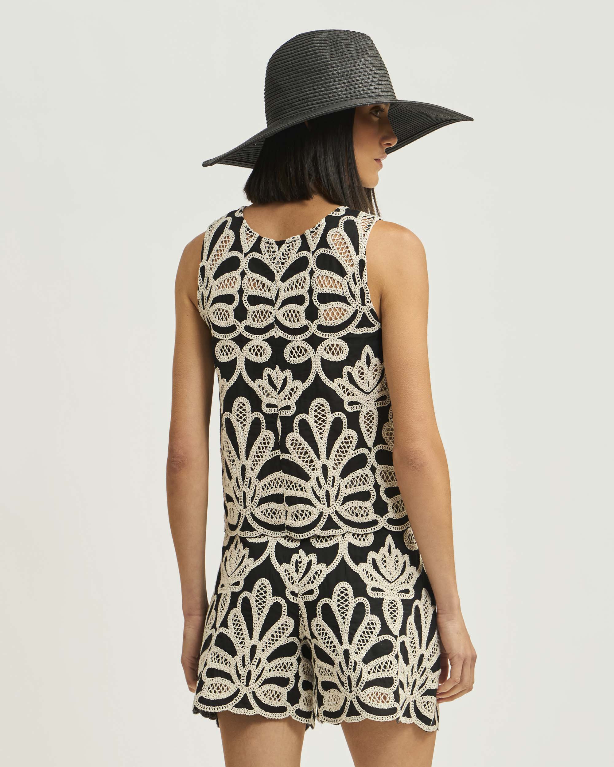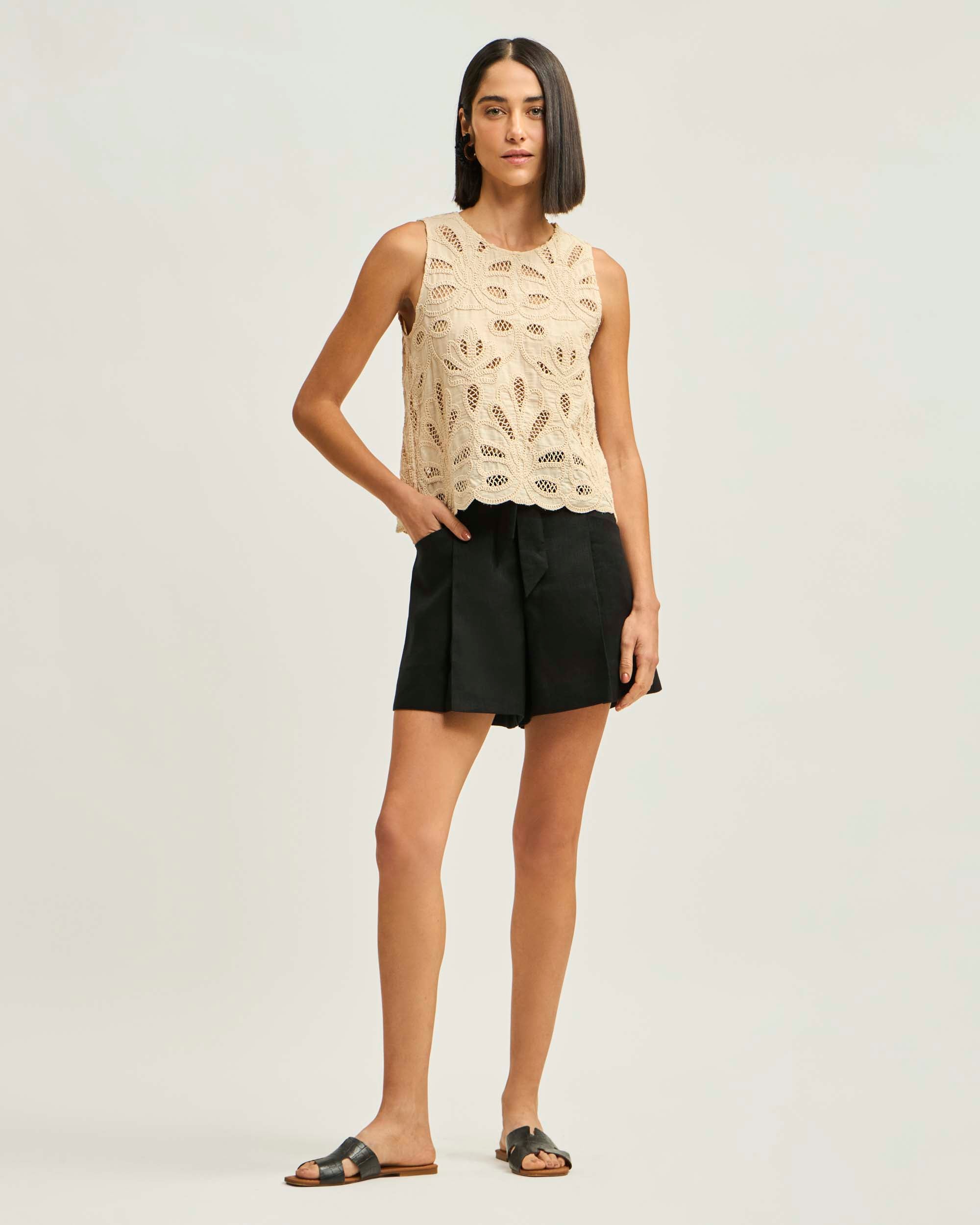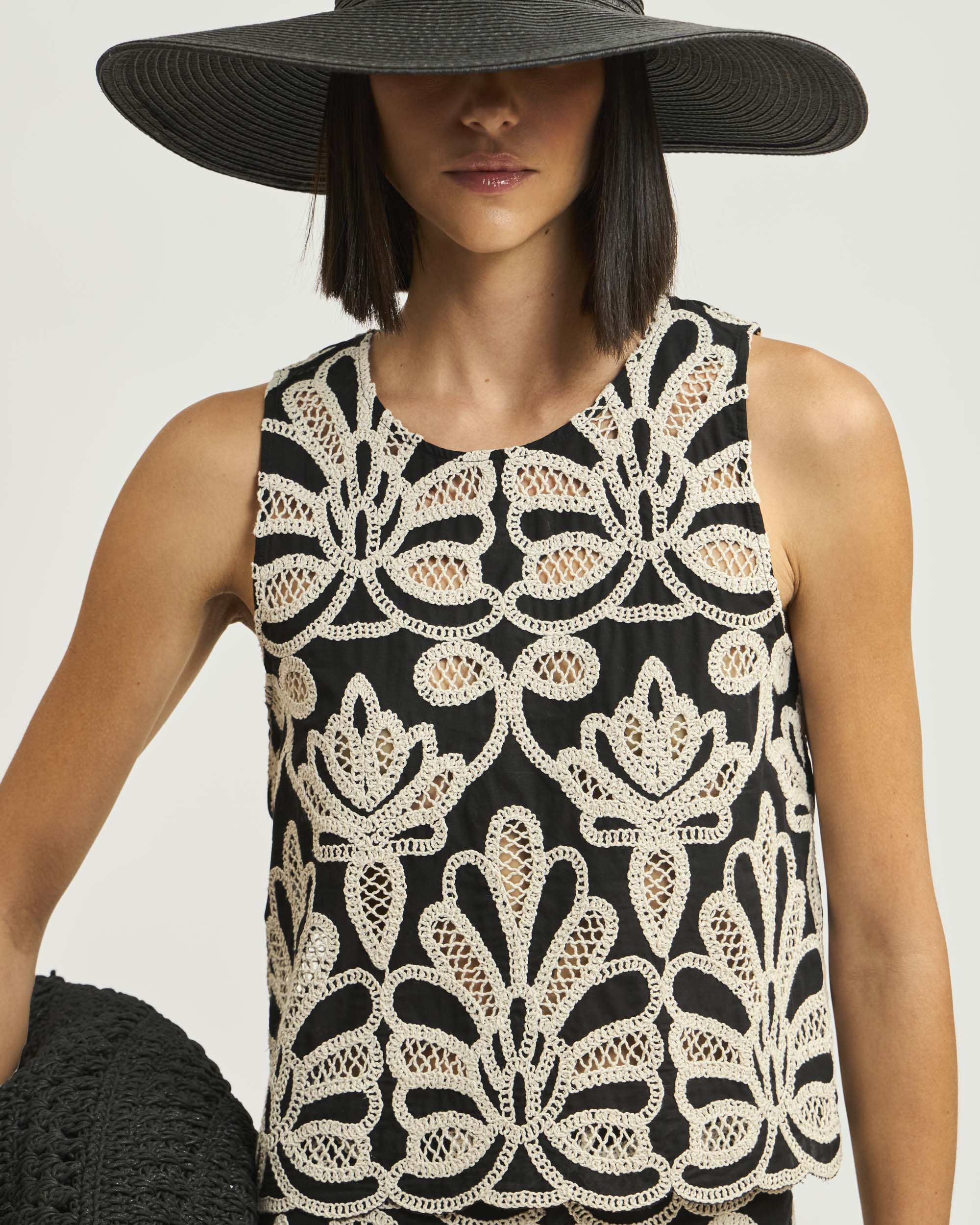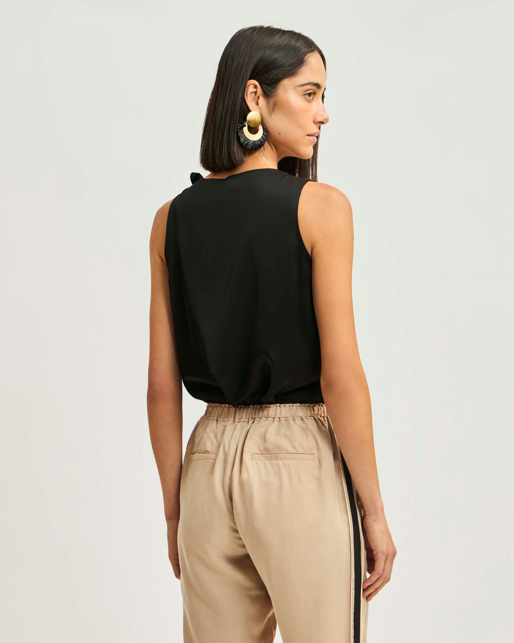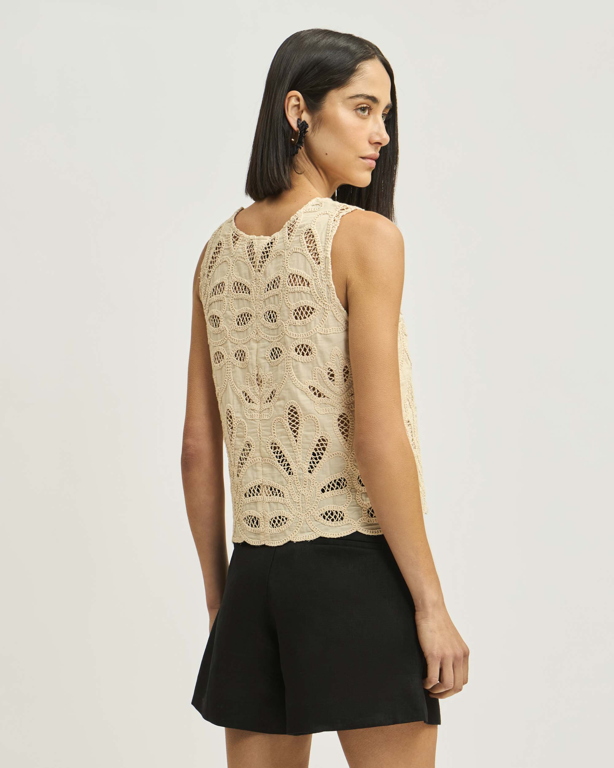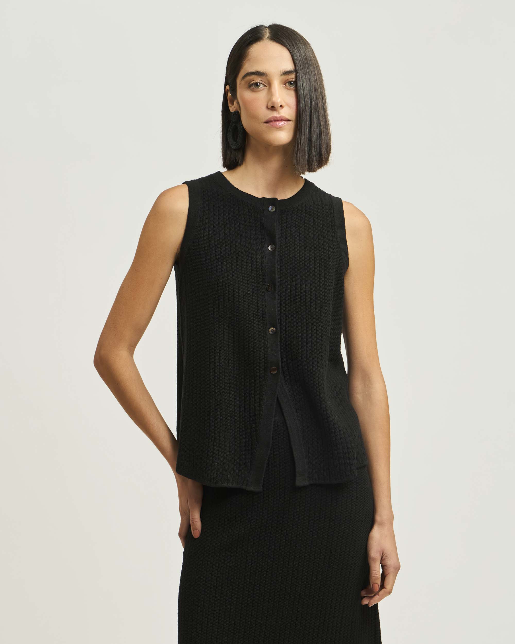 Blusa Sin Mangas Escote Cerrado En Set Texturado