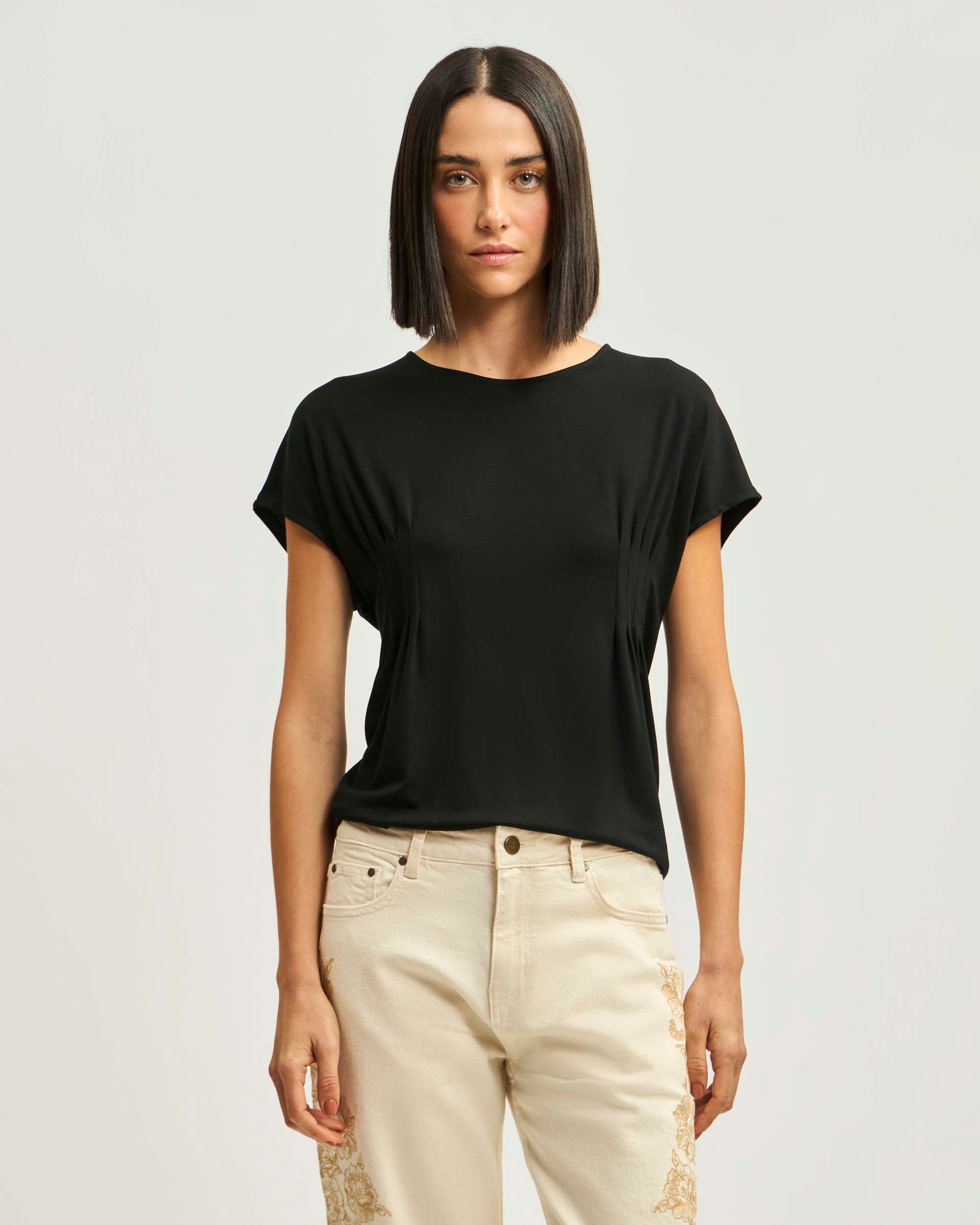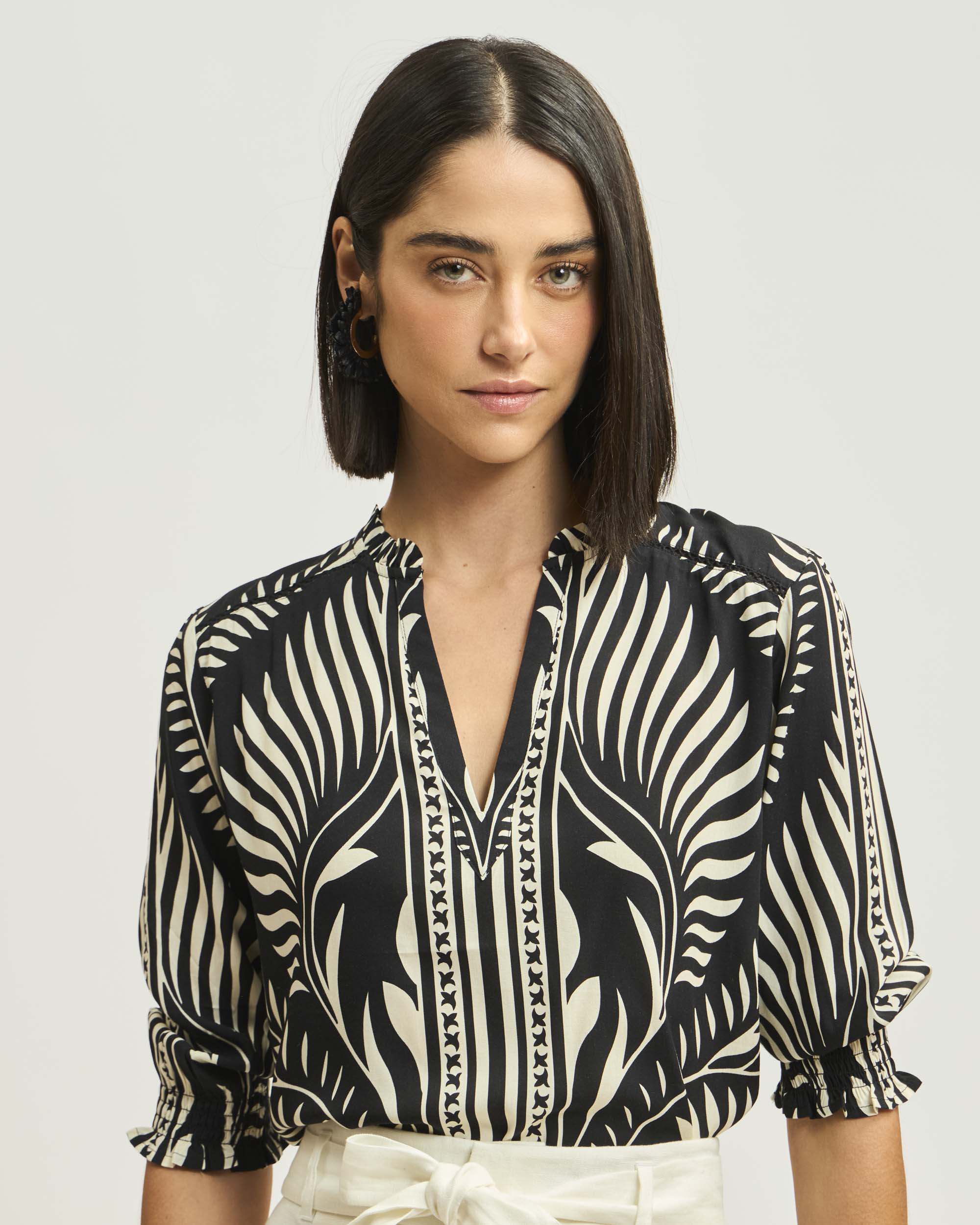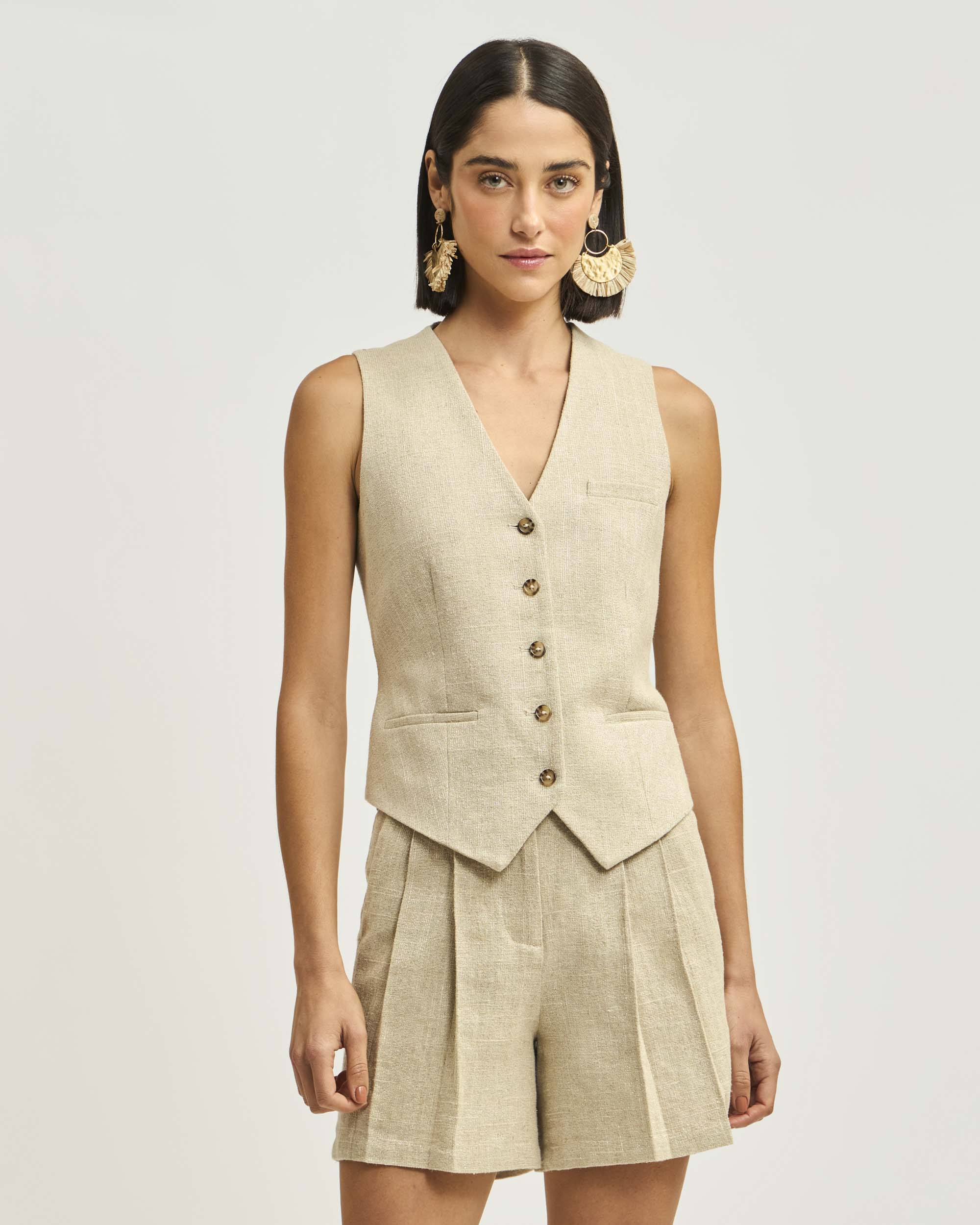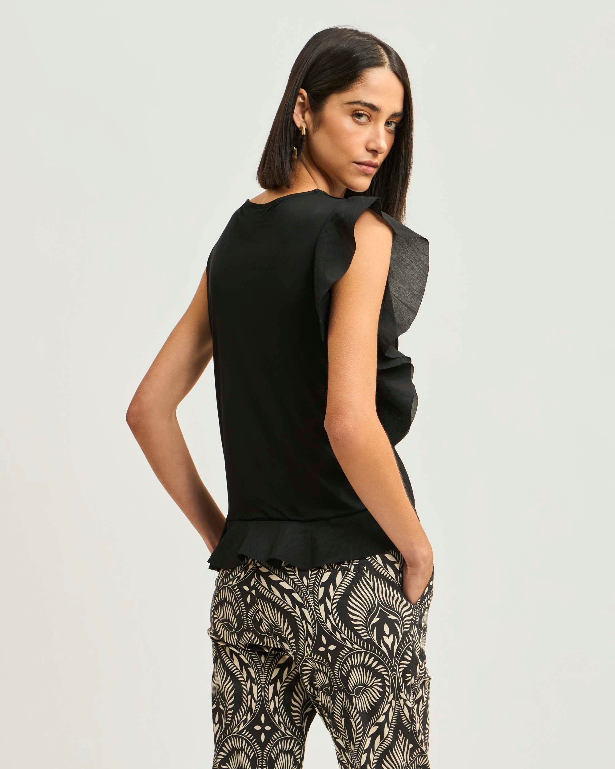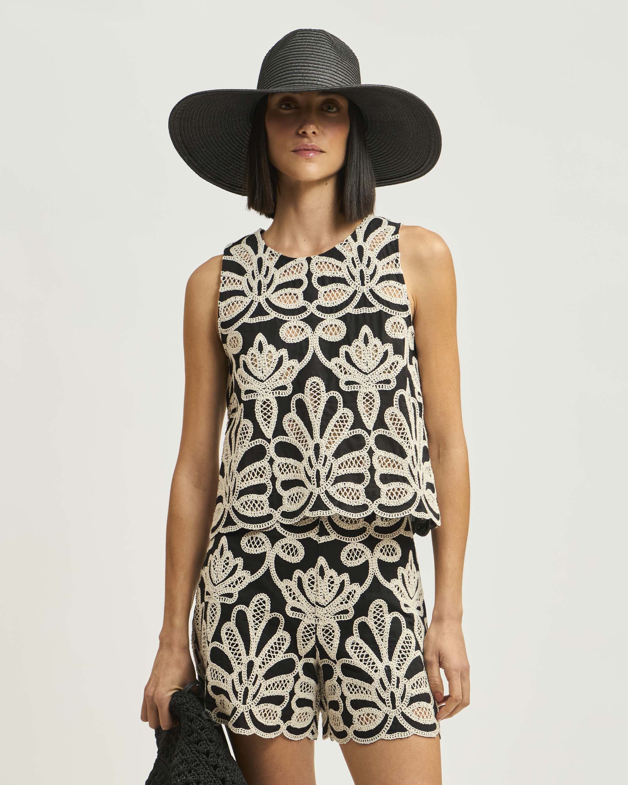 Blusa Sin Mangas Escote Cerrado En Set Texturado
