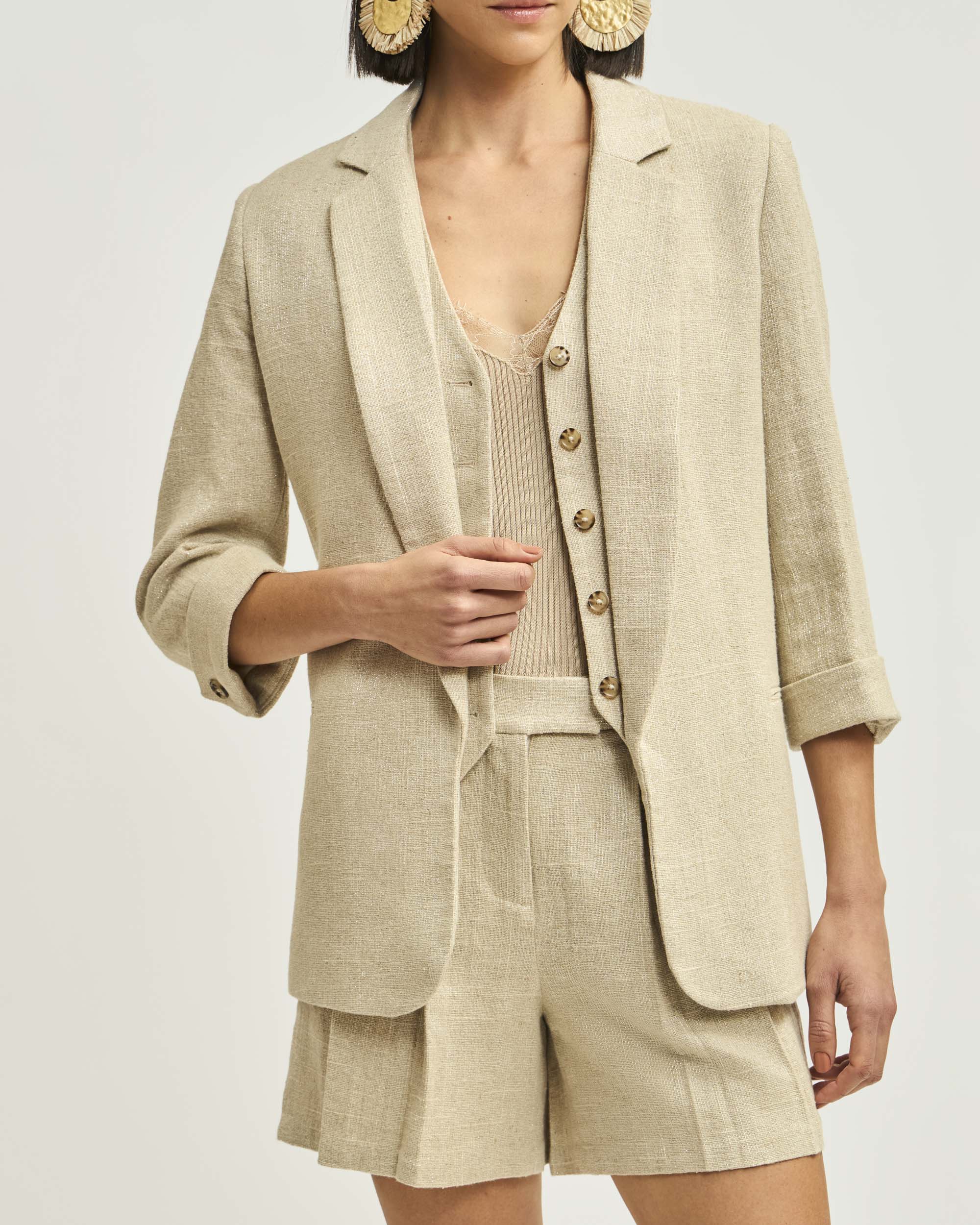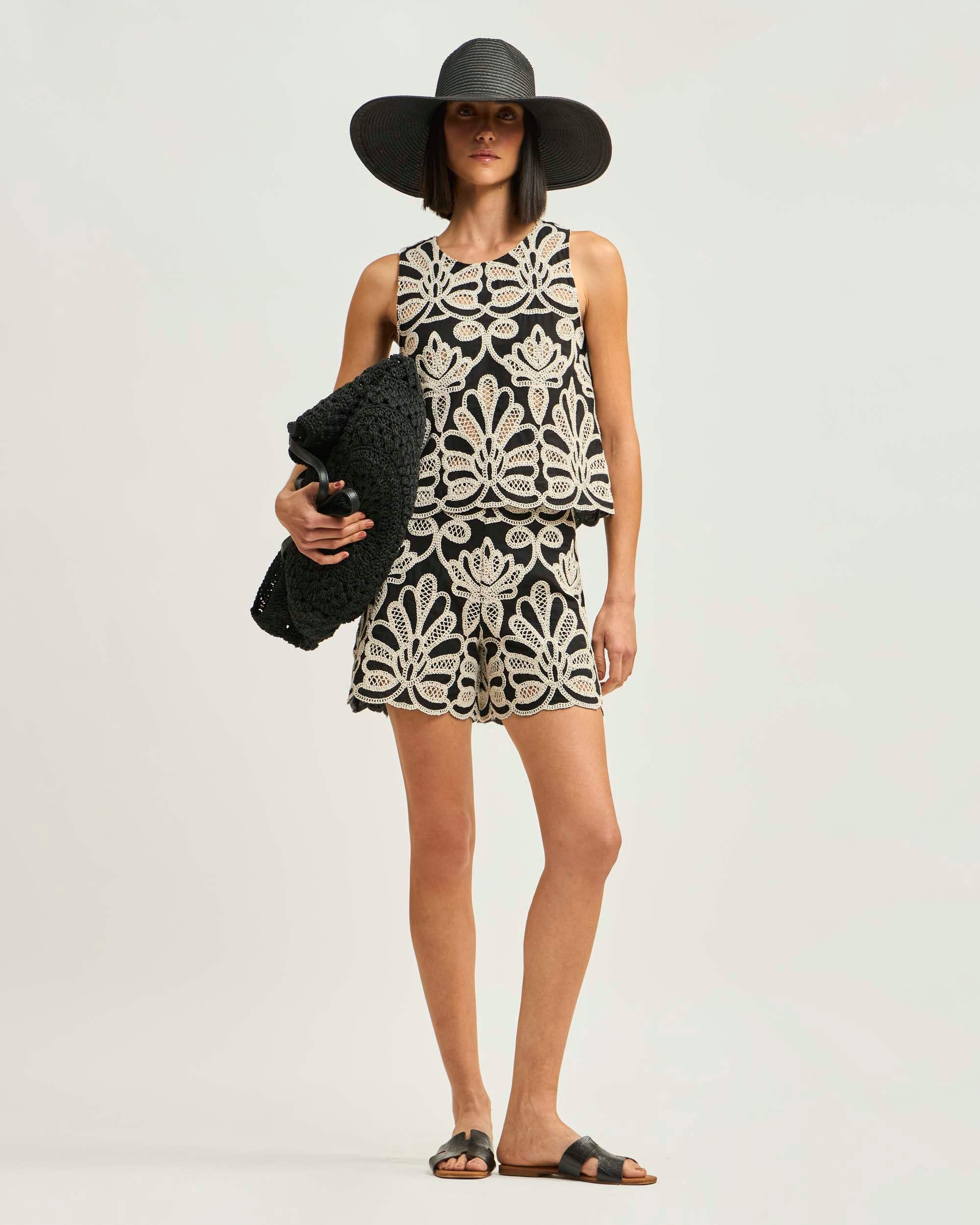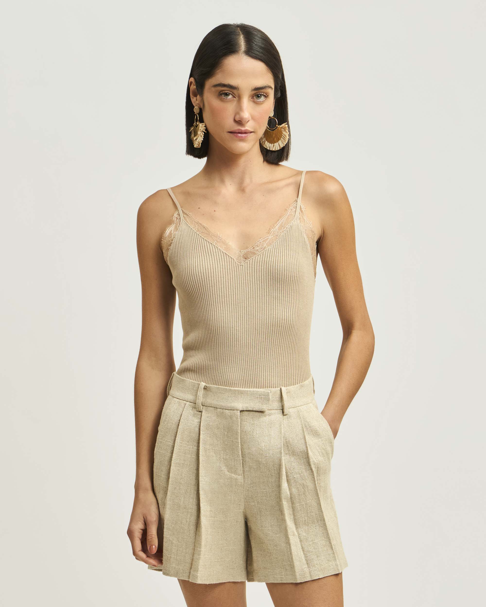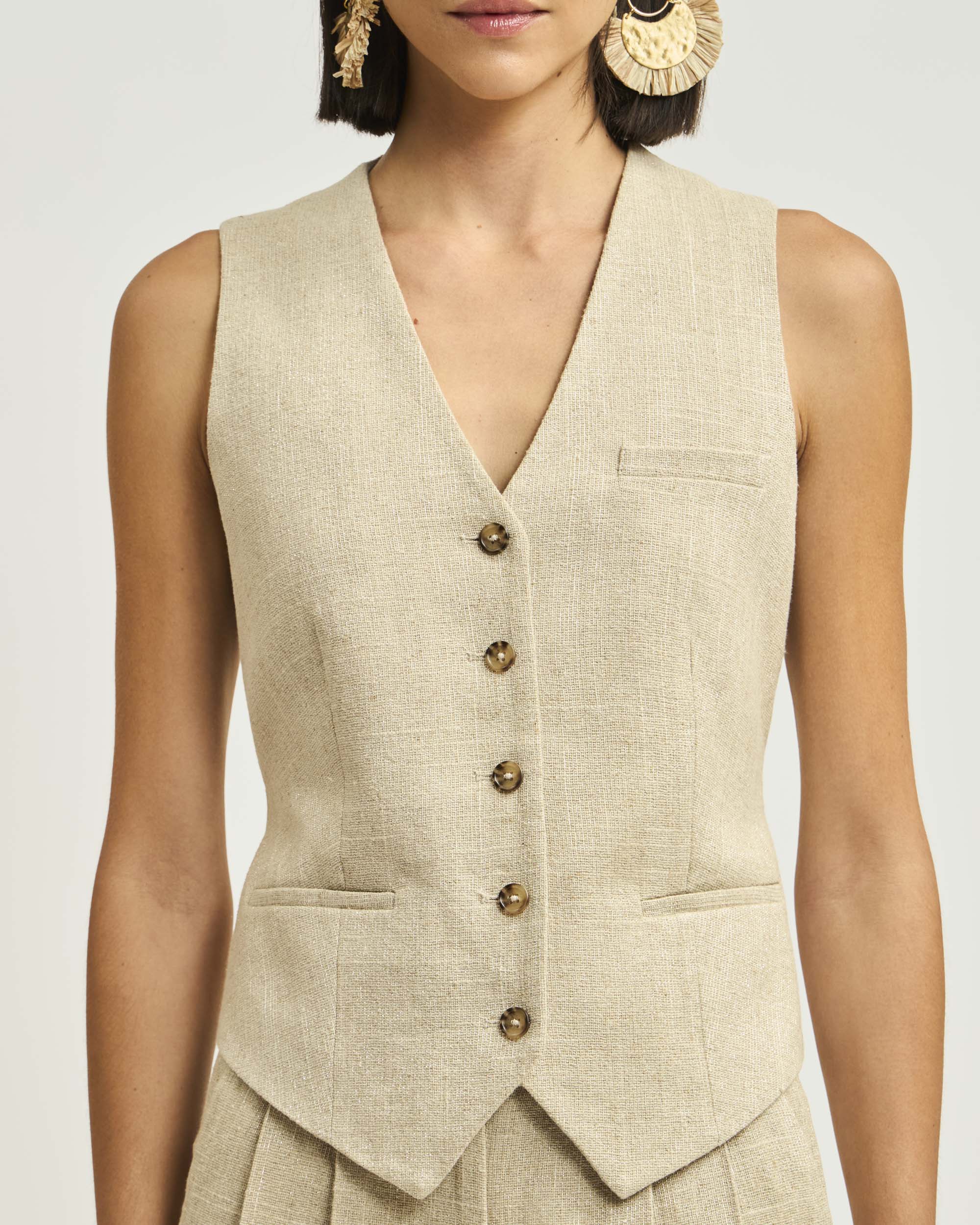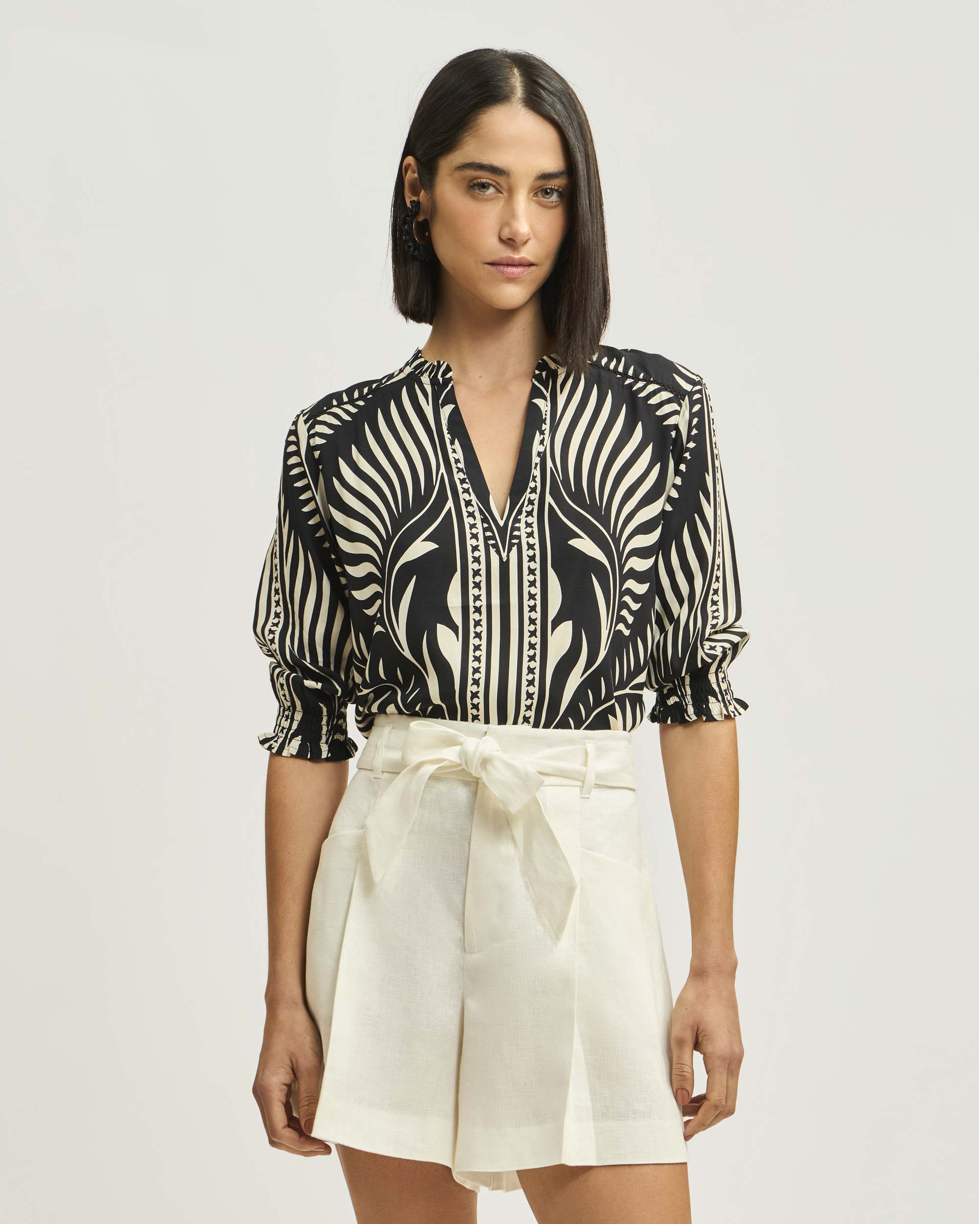 Blusa Sin Mangas Escote Cerrado En Set Texturado