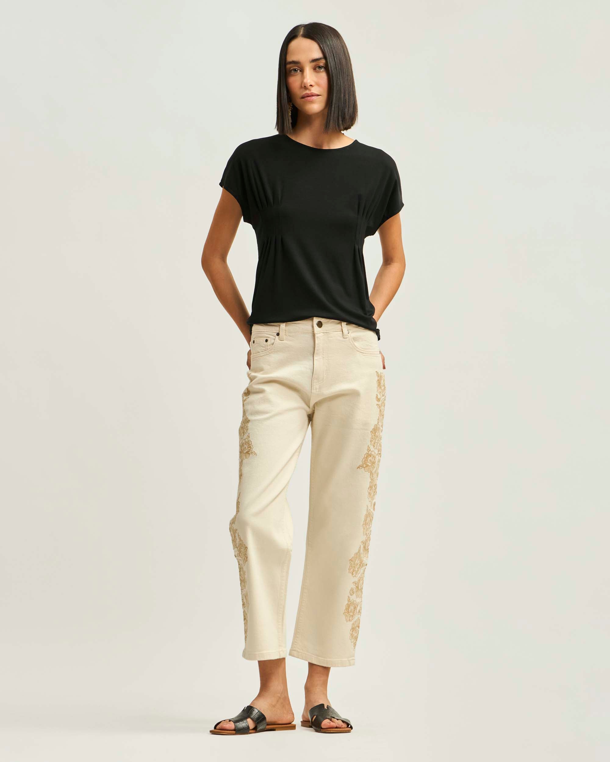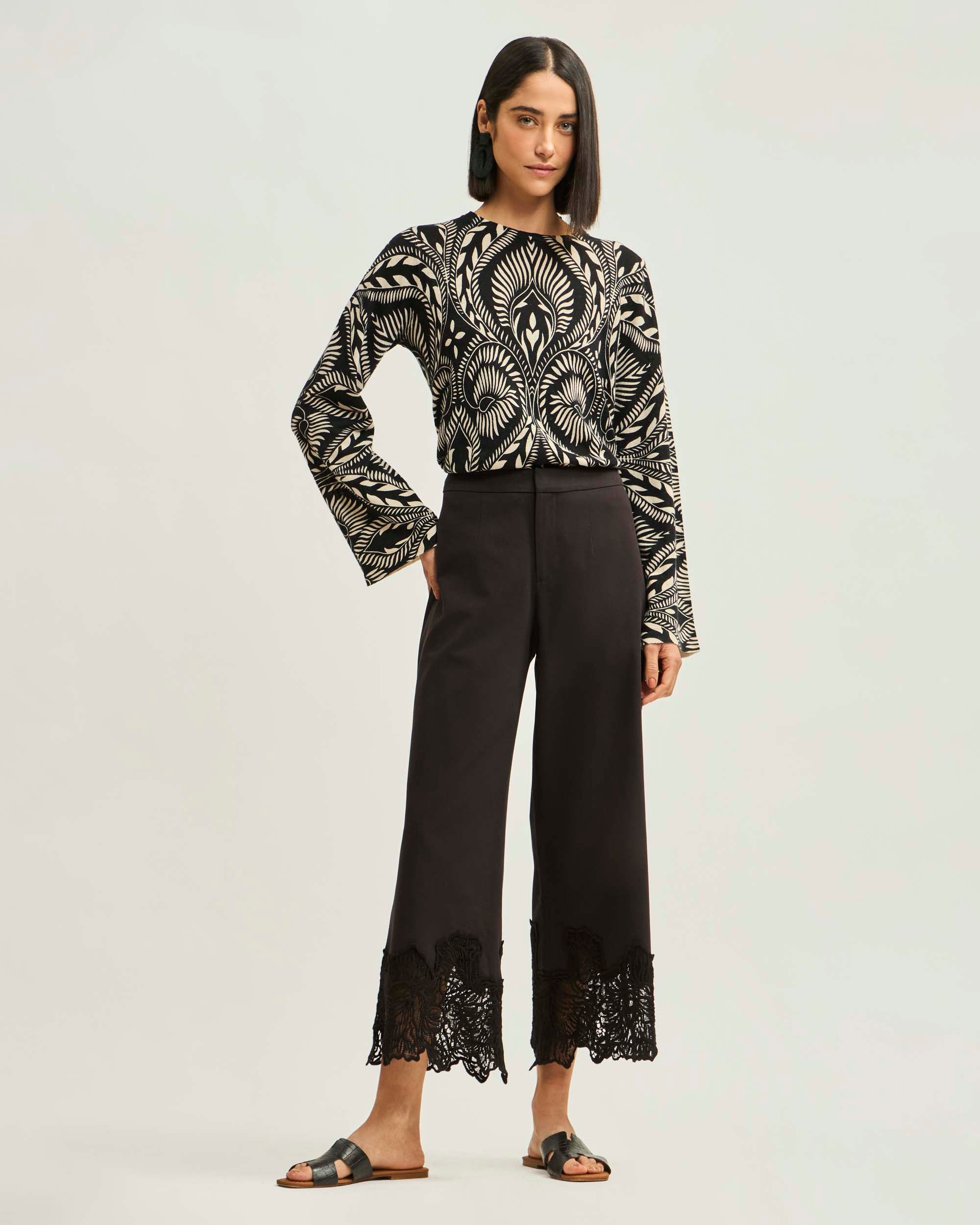 Pantalón Print Antonieta Tiro Alto Bota Ajustada Gabardina