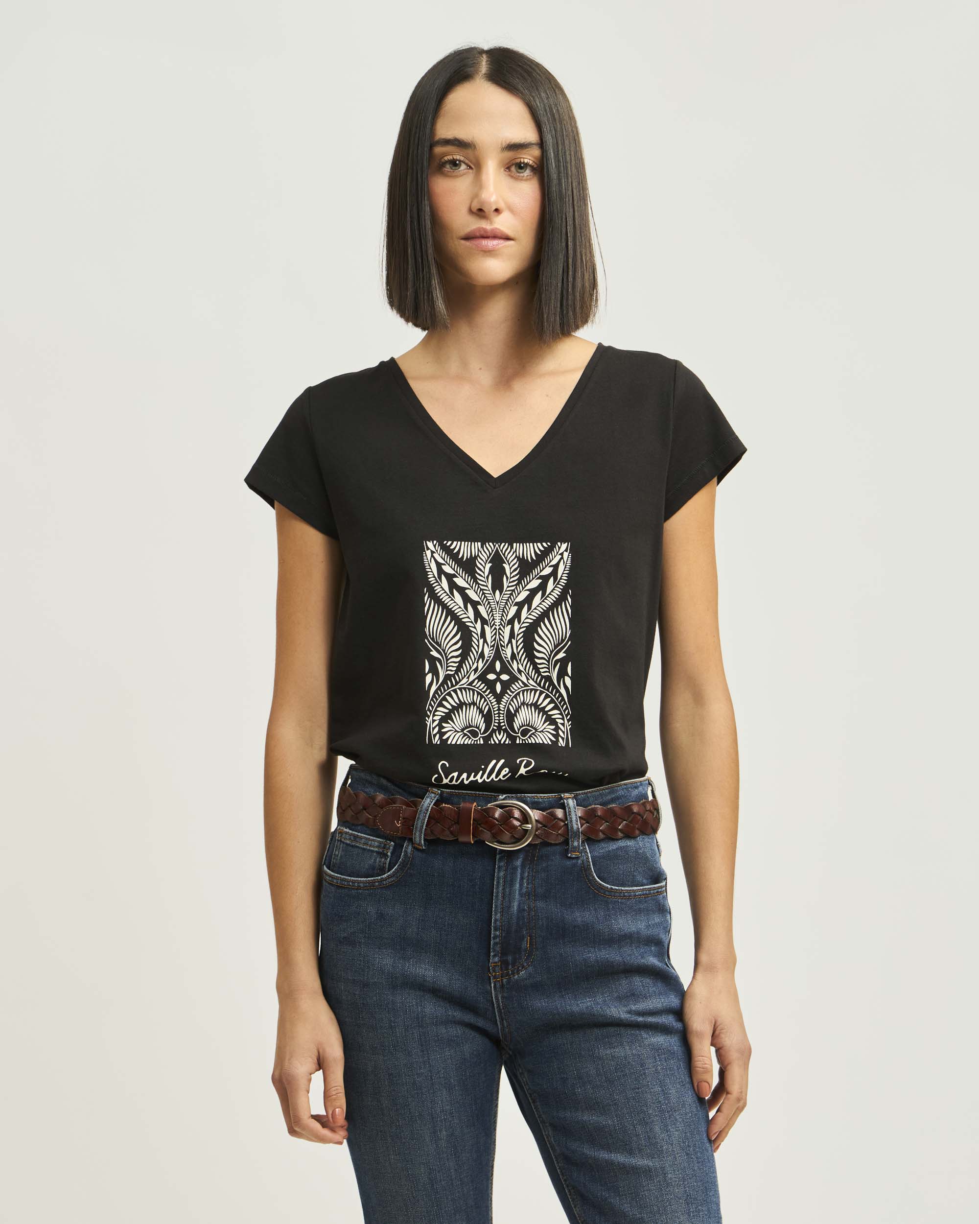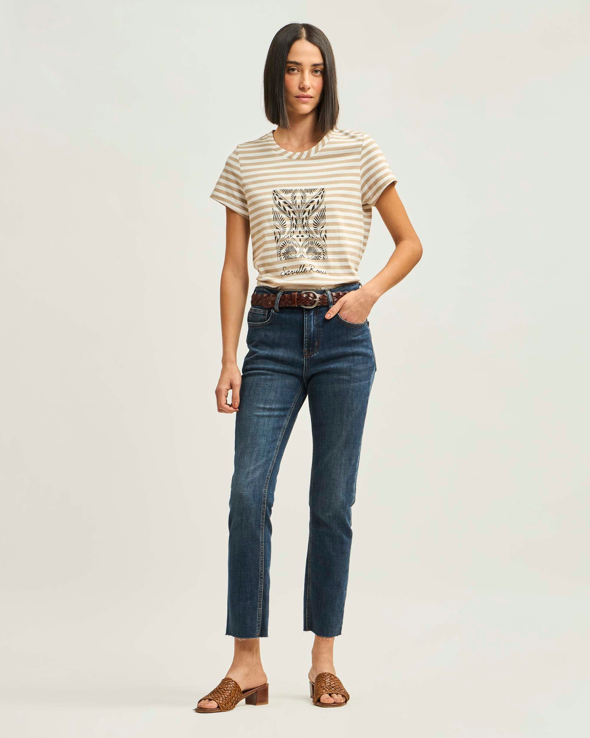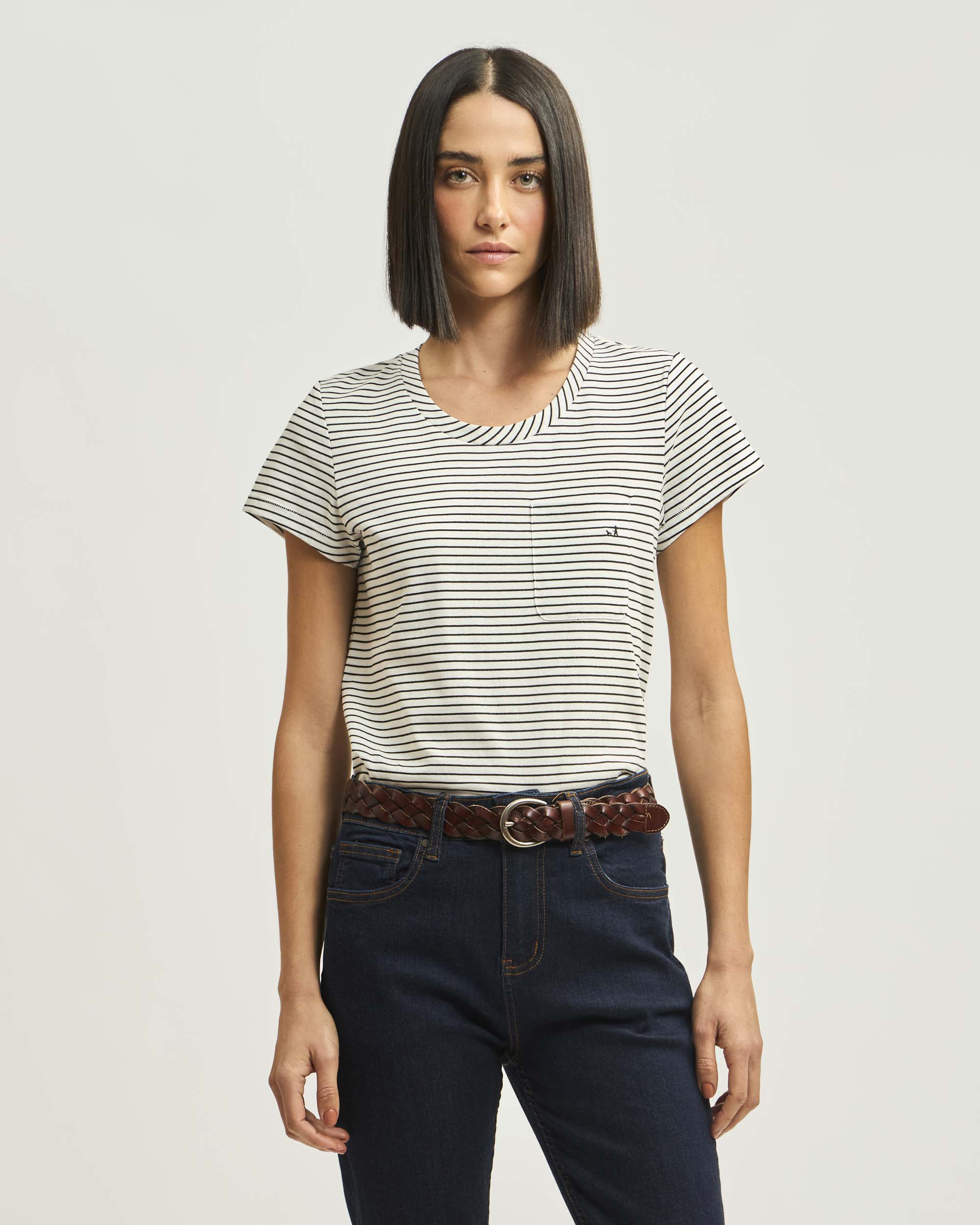 Polera Manga Corta Cuello Redondo Rayada Print SR