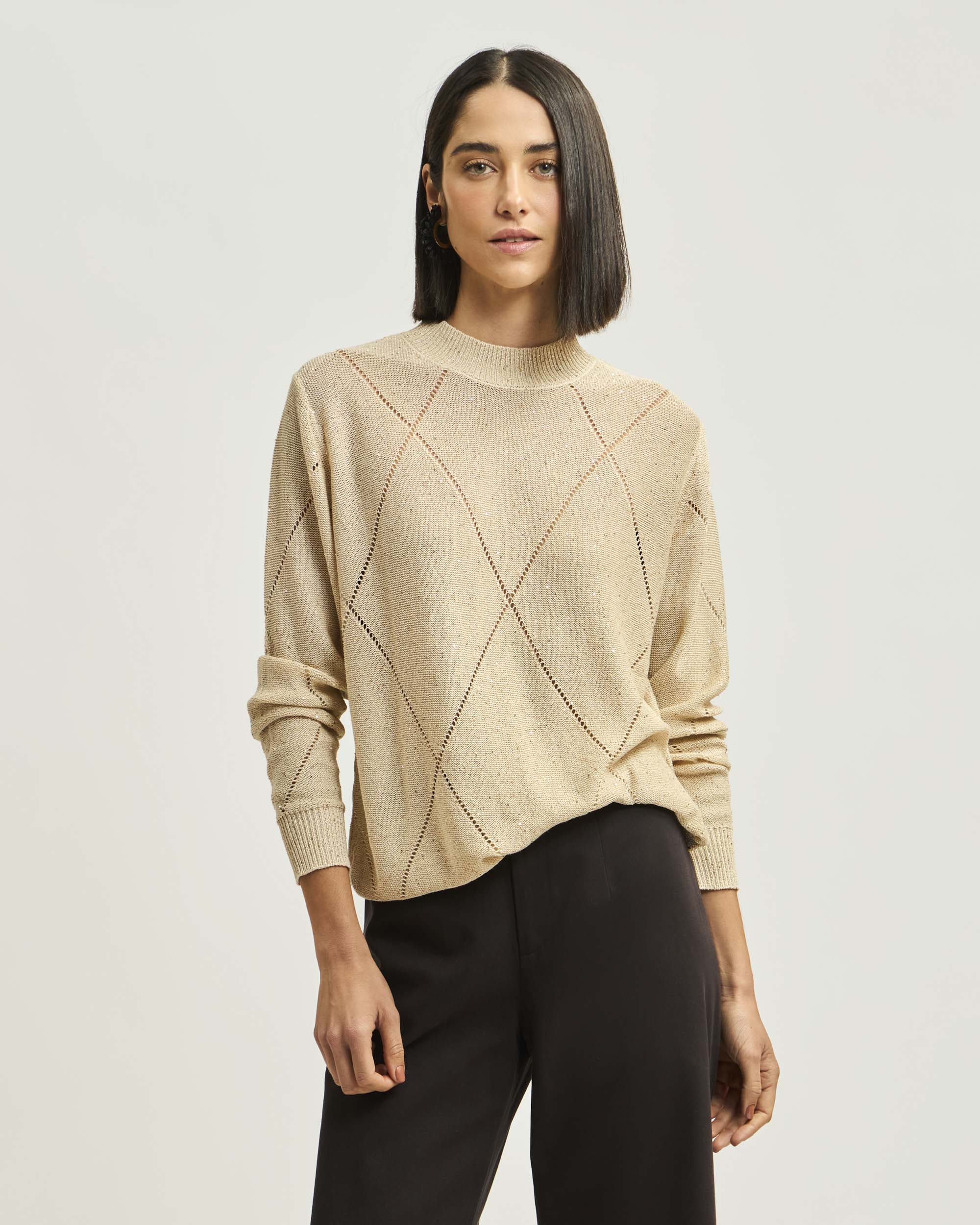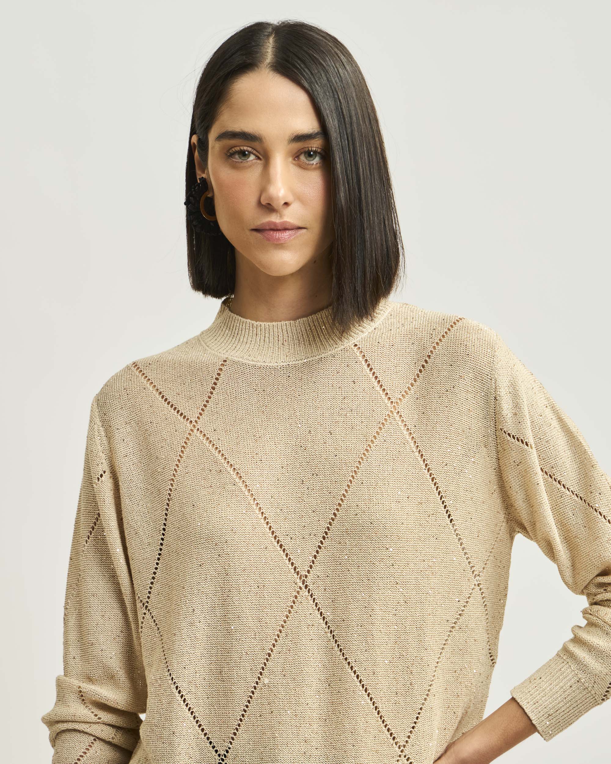 Sweater Mini Lentejuelas Diseño Rombos Calados