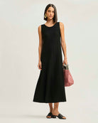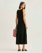 Vestido Largo Tejido Acanalado Sin Manga