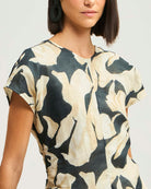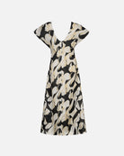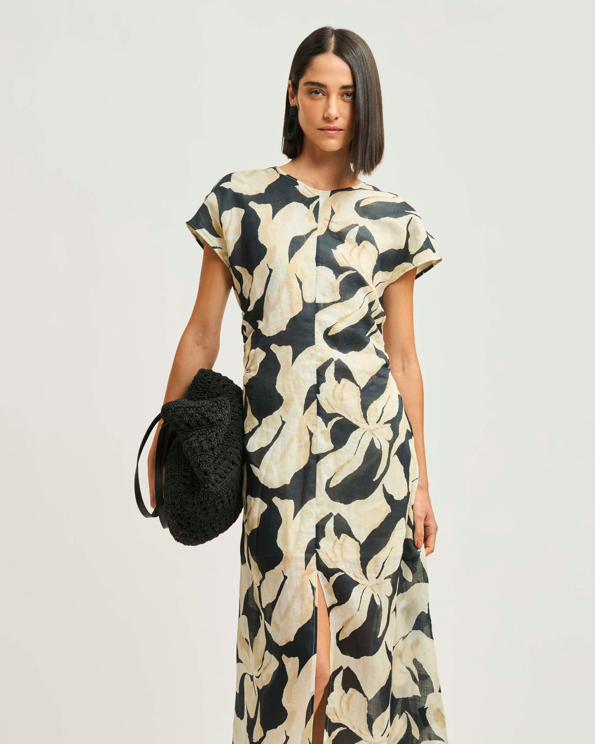 Vestido Manga Corta Fruncido En Cintura Organza Print