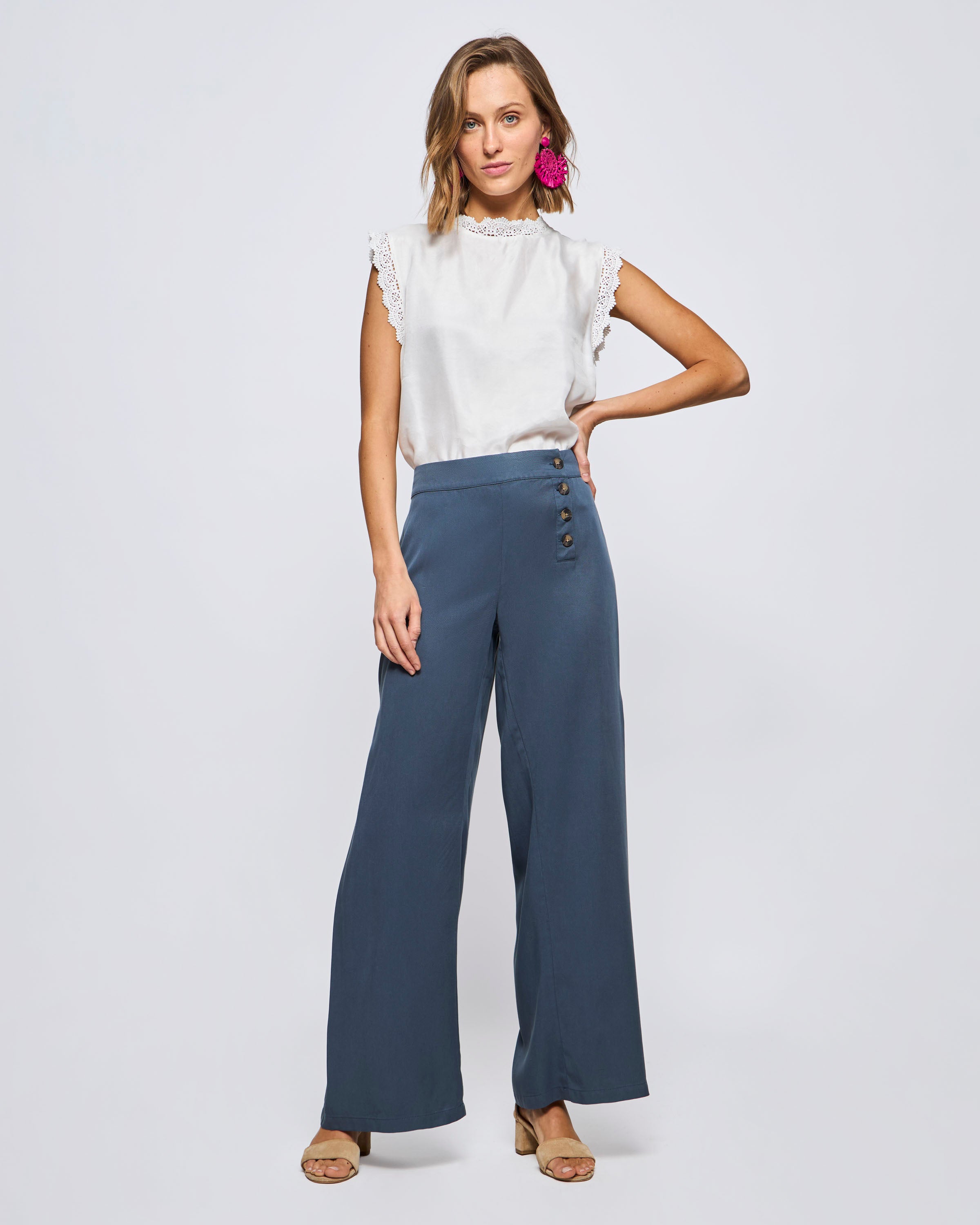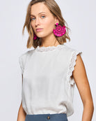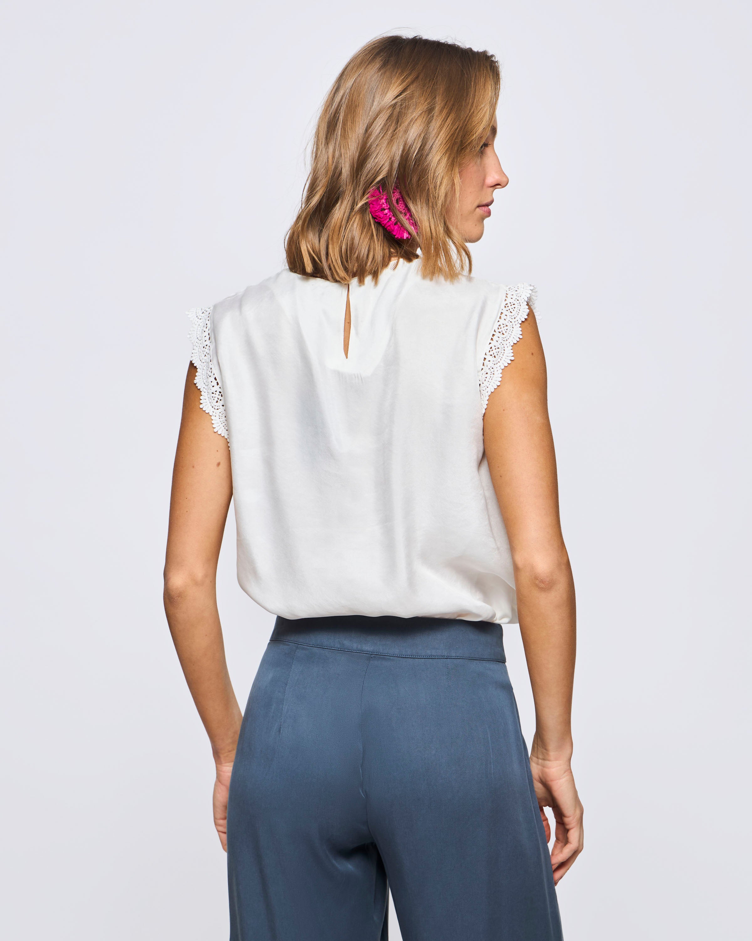 Blusa Sin Manga y Detalles Encaje Cupro Rayón