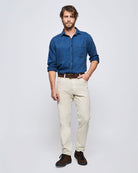 Quizás uno de los modelos más Sport de Saville Row. Nuestra Camisa Houston en versión Weekend Shirt tiene un lavado que la hace suave y cómoda desde el primer día. En este caso viene en una Tela lisa de Índigo Twill, liviana y de Algodón muy especial y particular que da un Look perfecto.