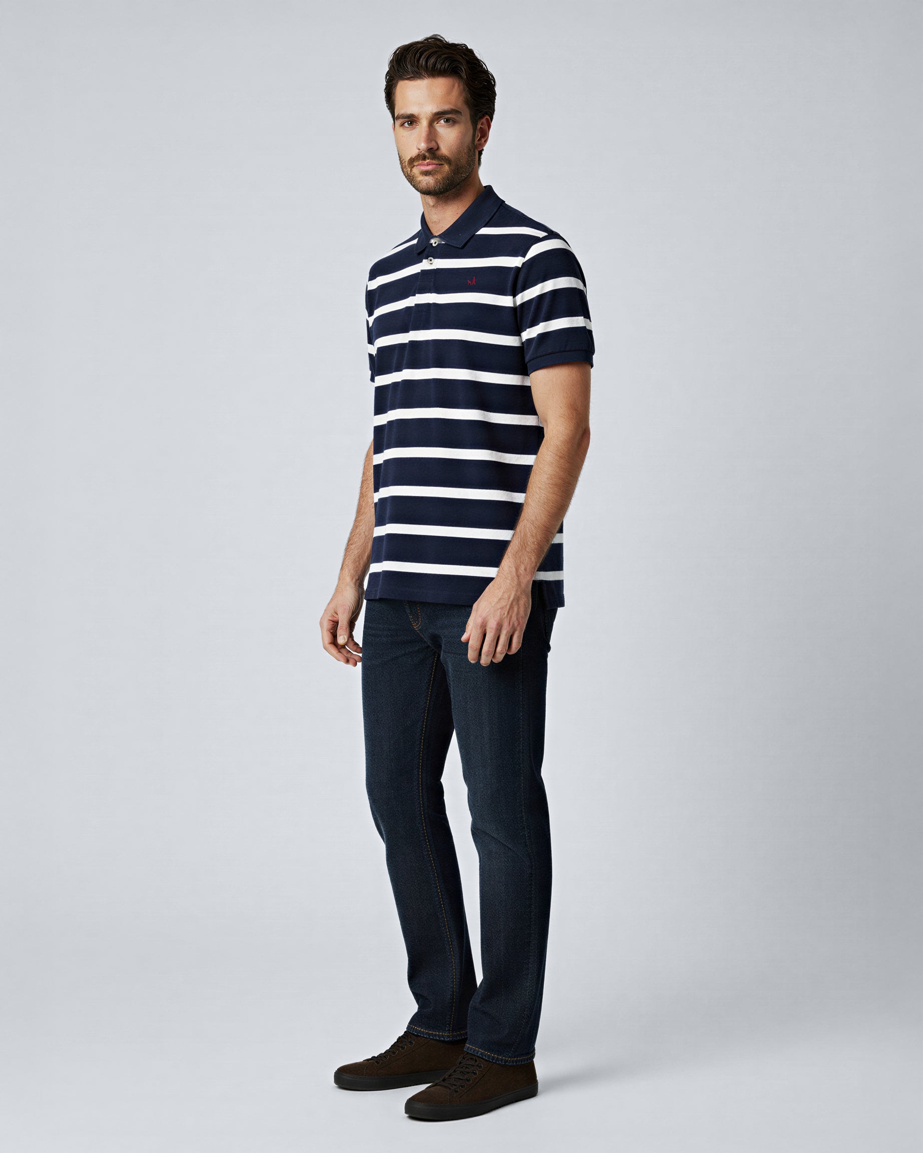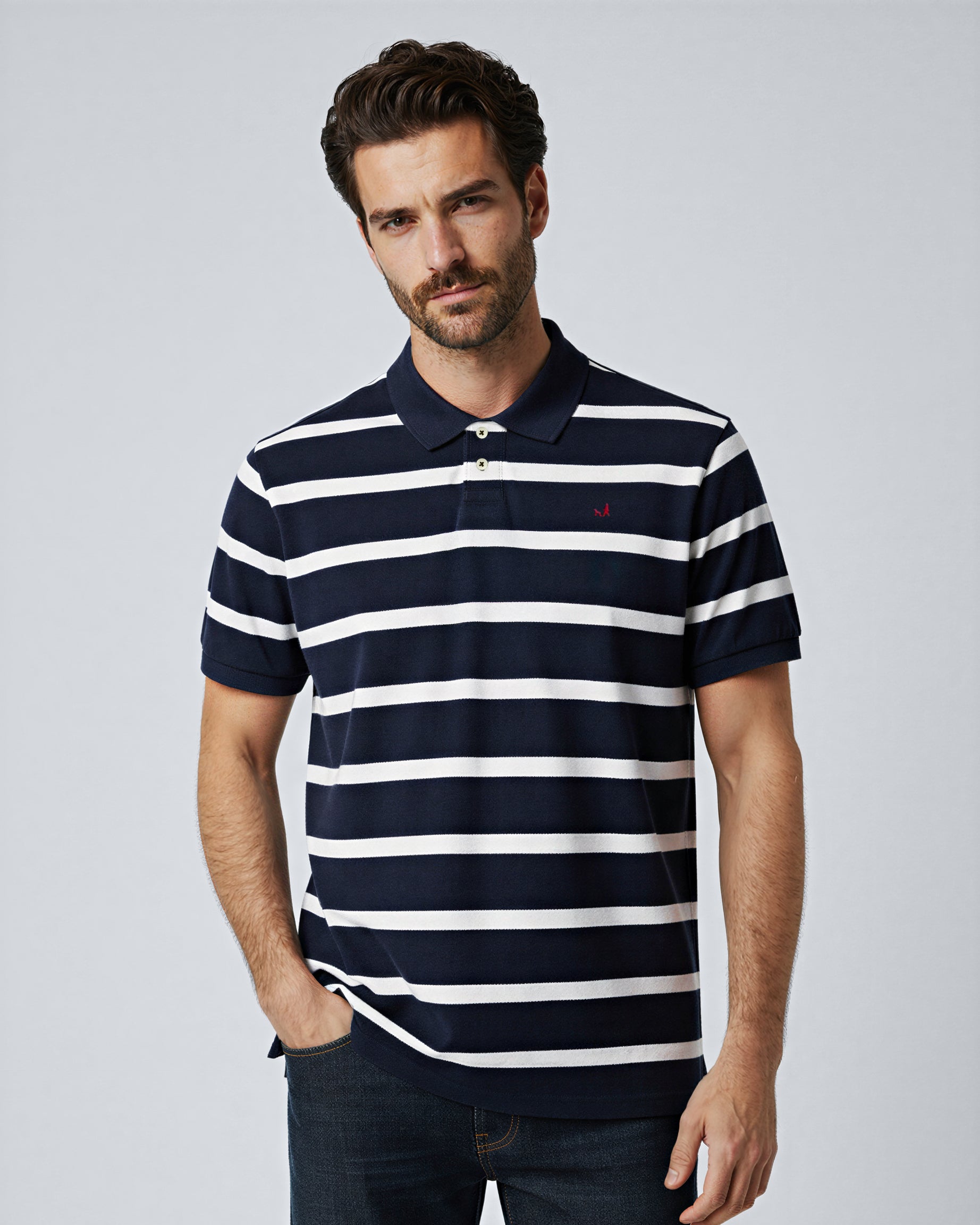 Polera Pique con Cuello Rayada