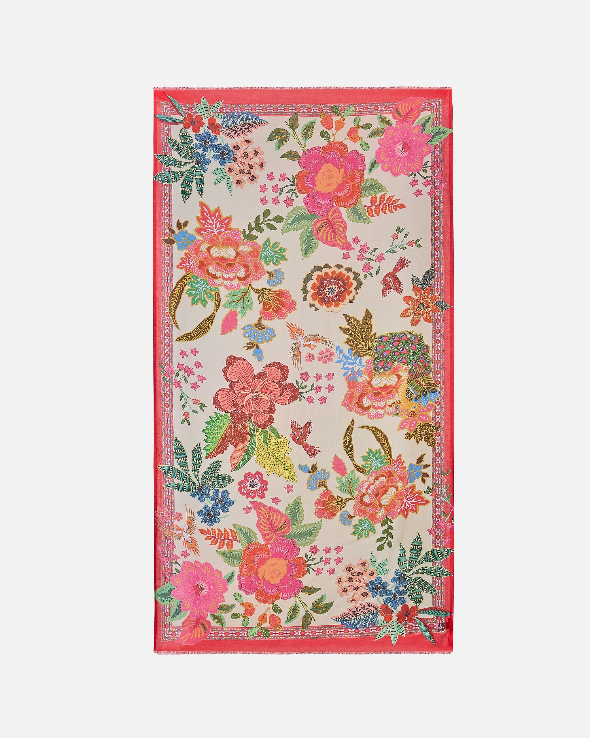 Echarpe Modal Seda Estampado Floral Oriental 100X180