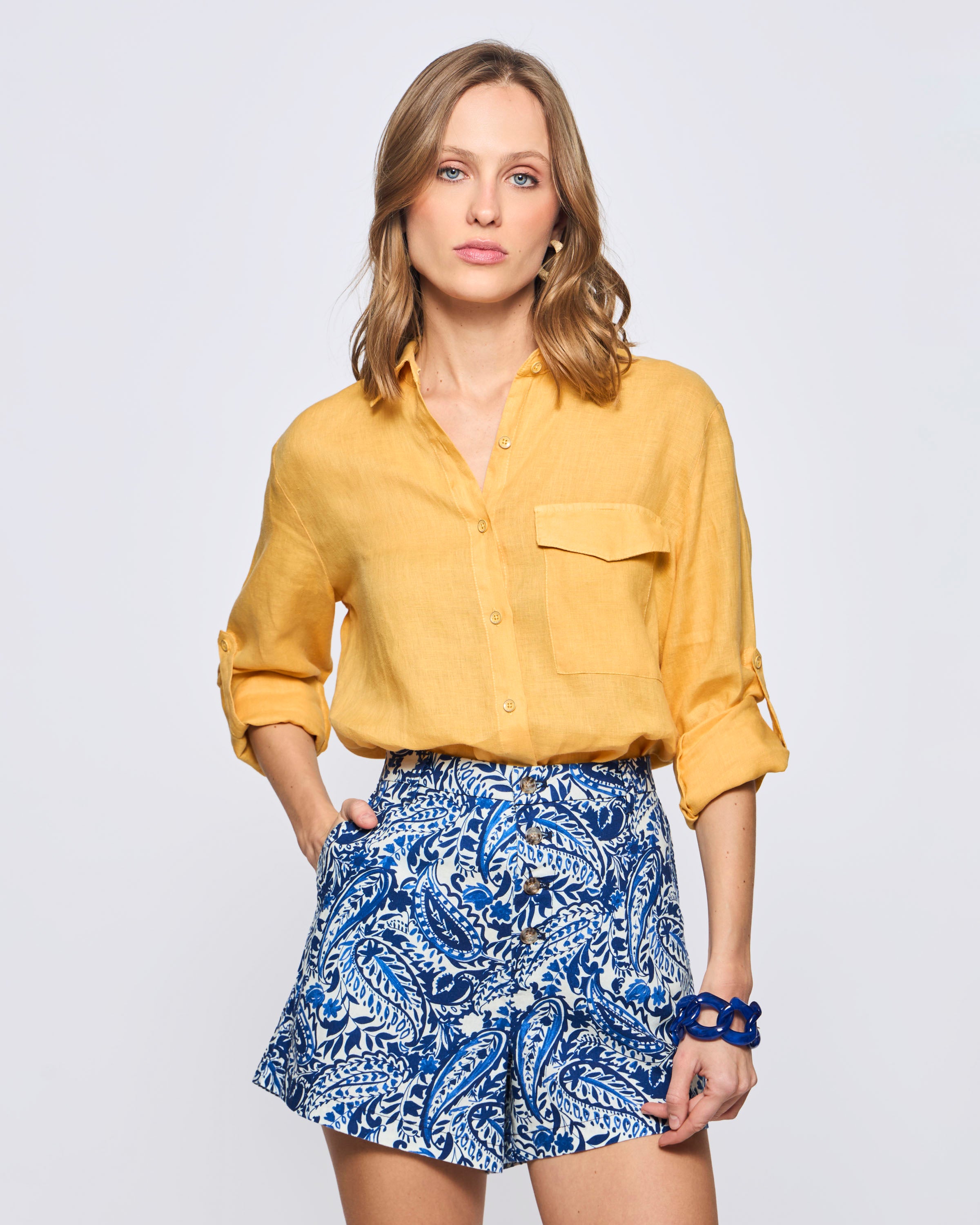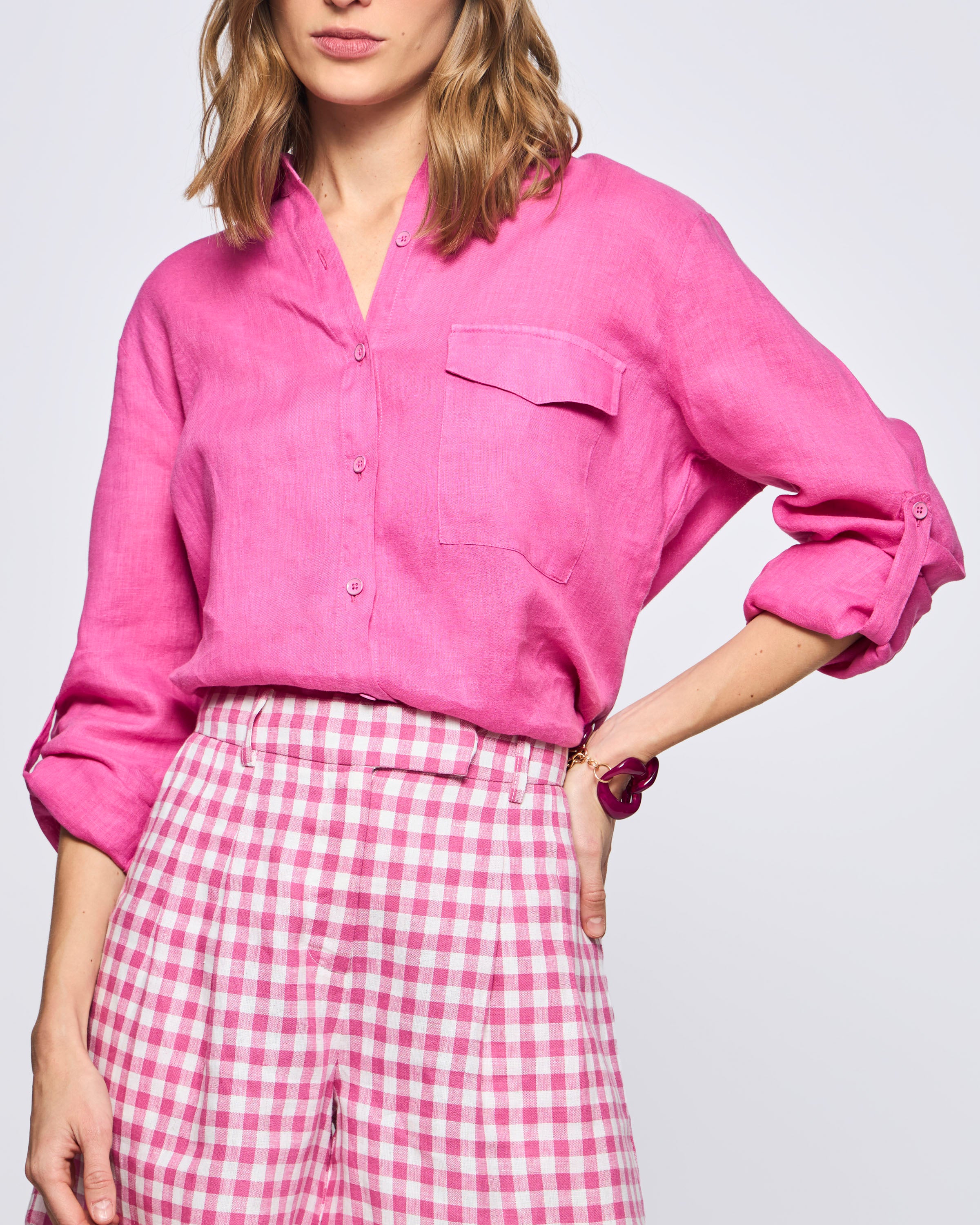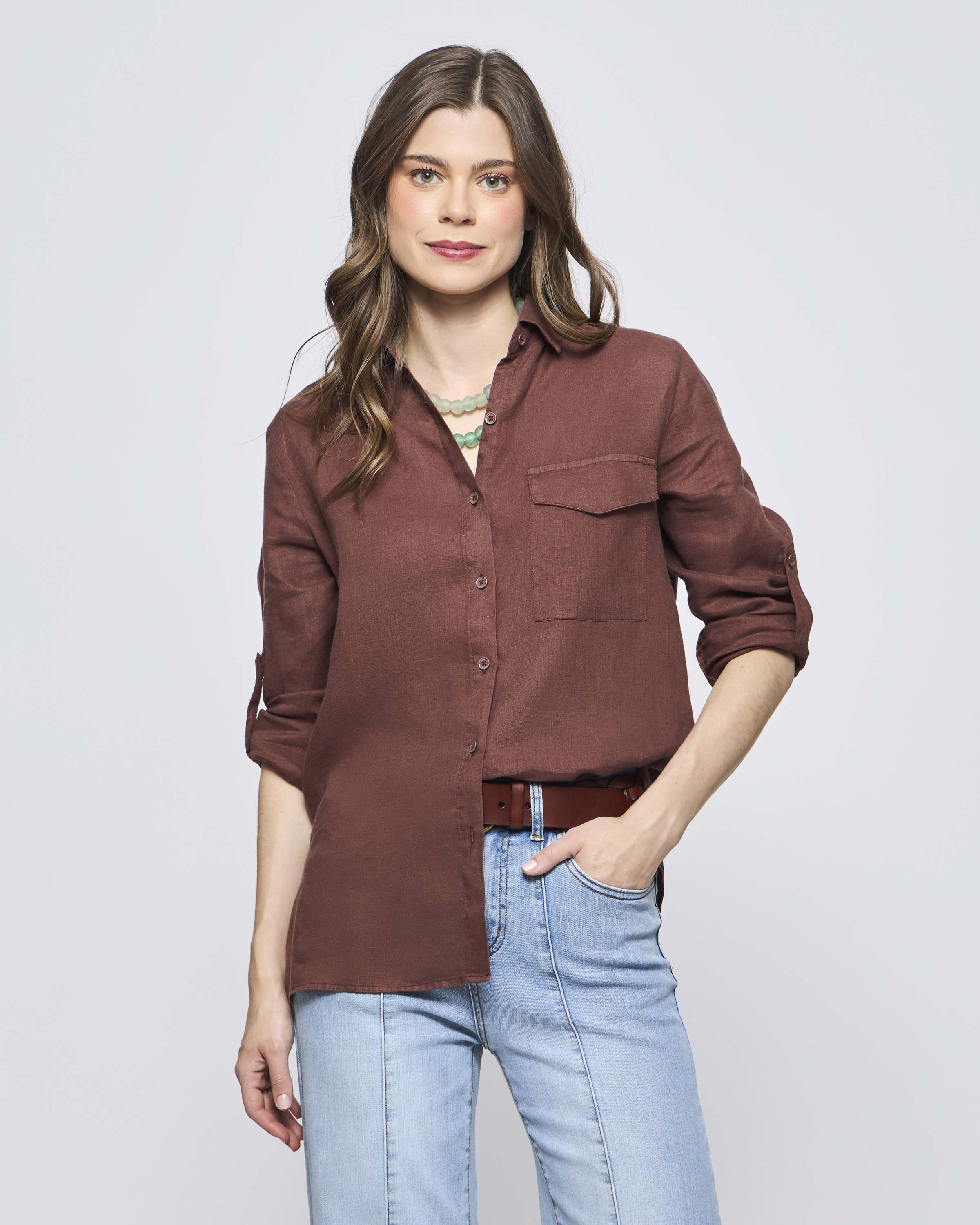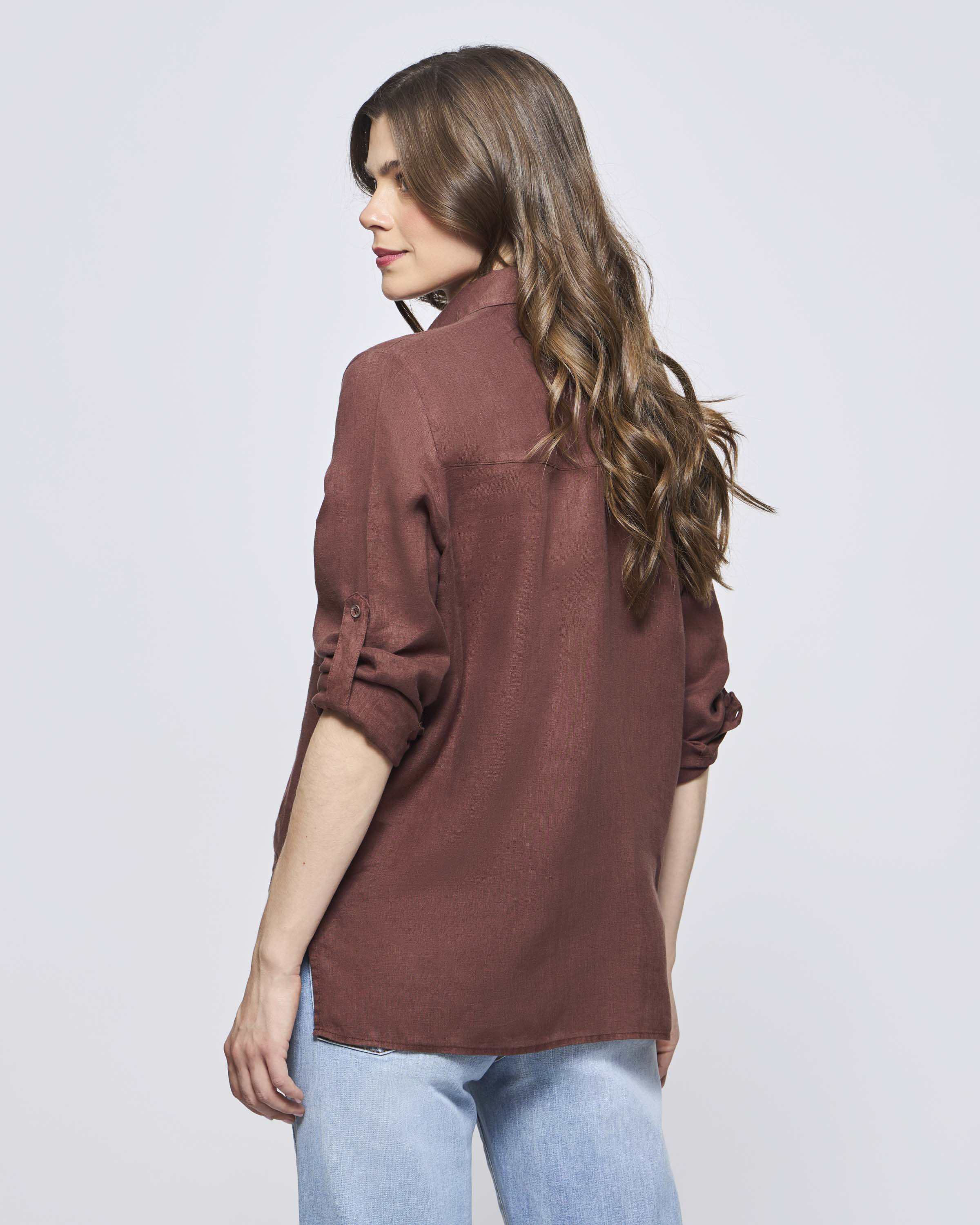 Camisa Lisa Sahariana Un Bolsillo Vintage Lino
