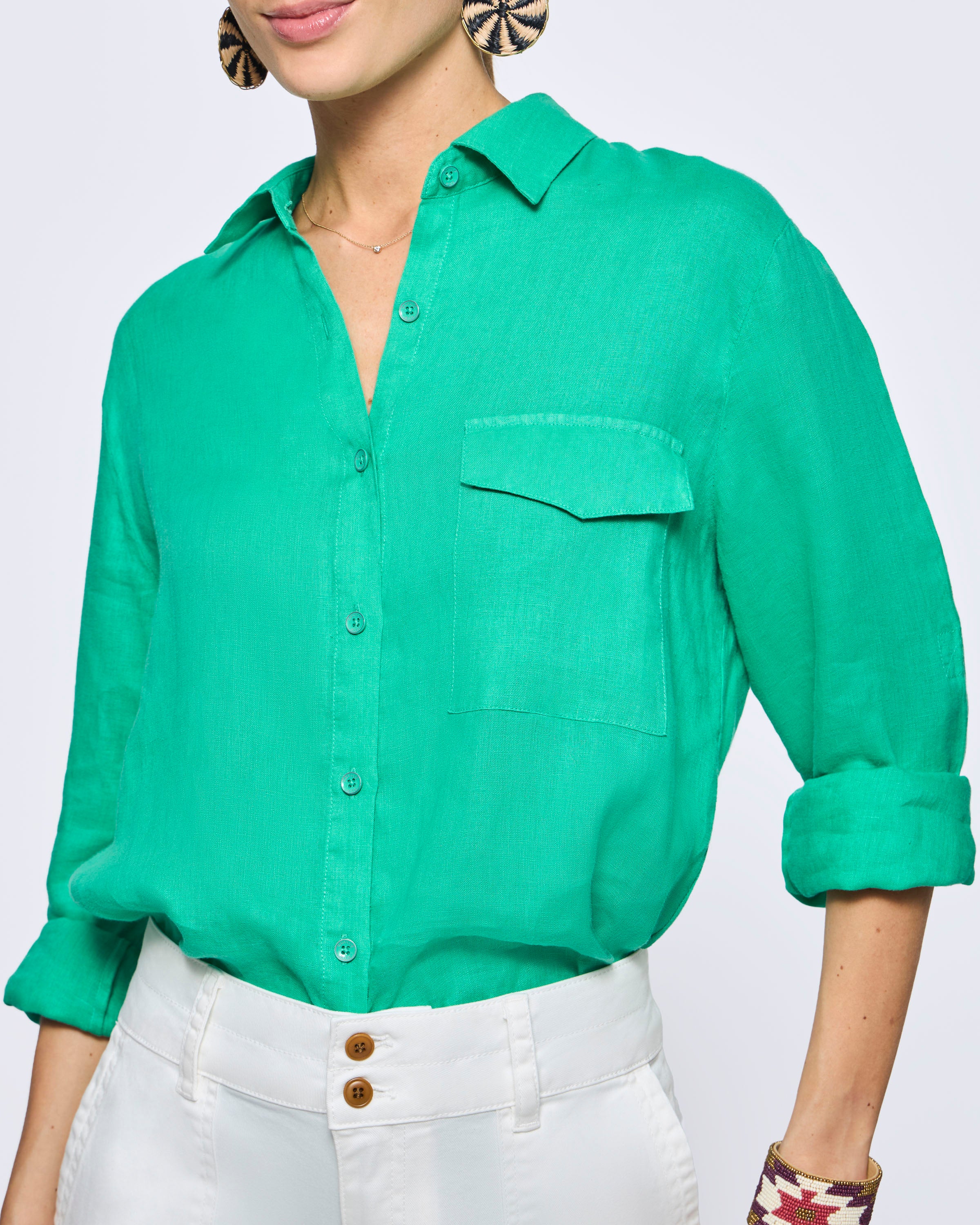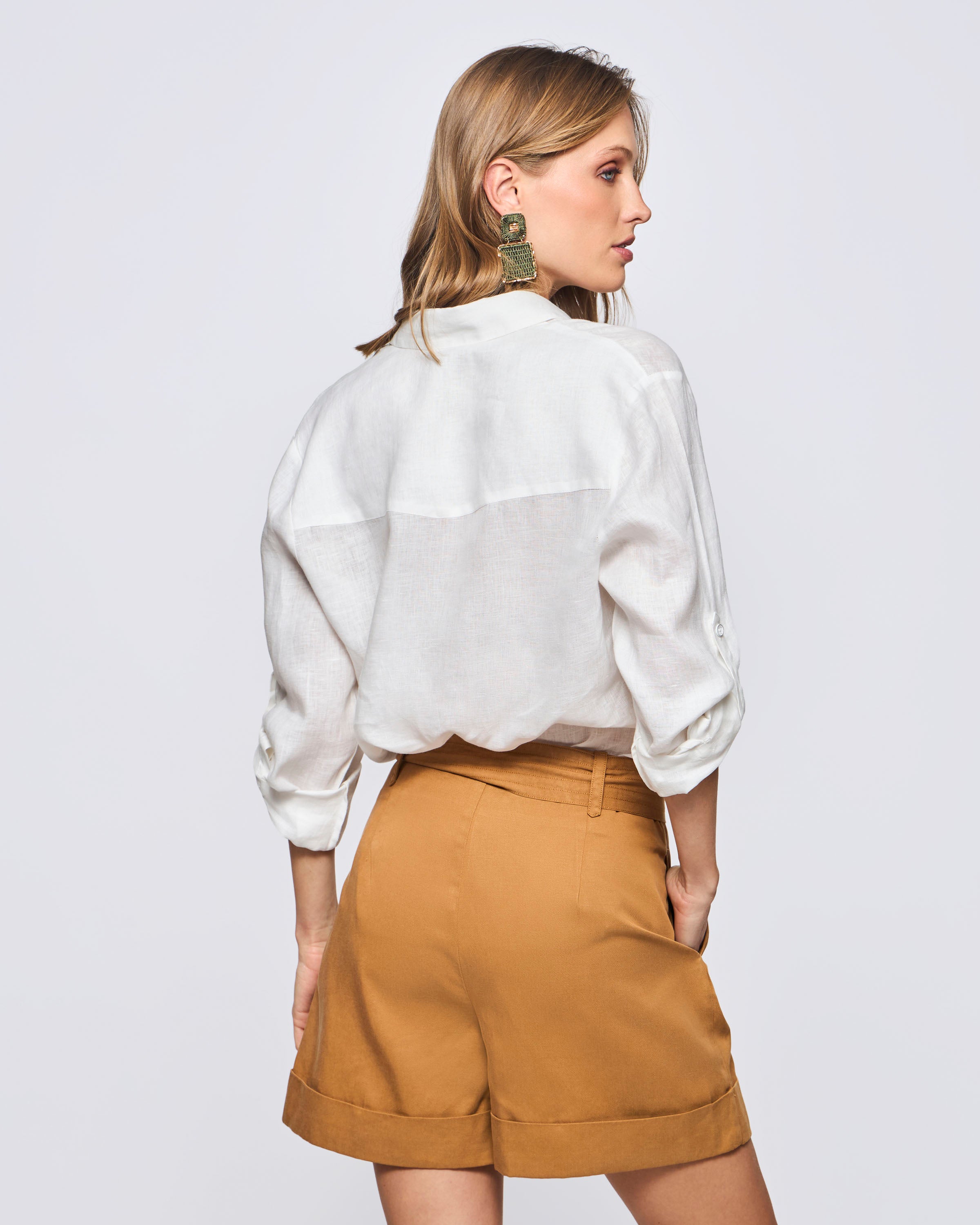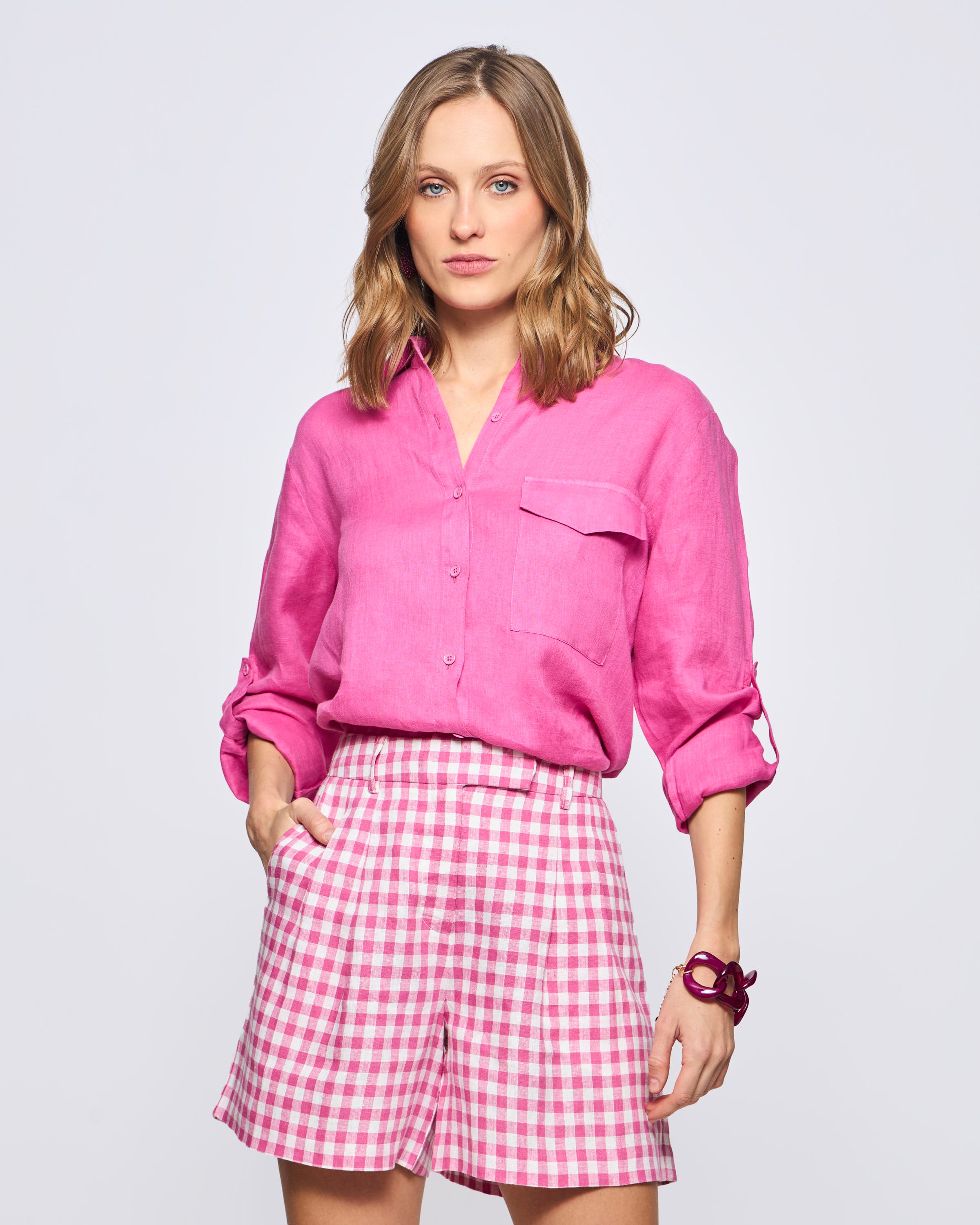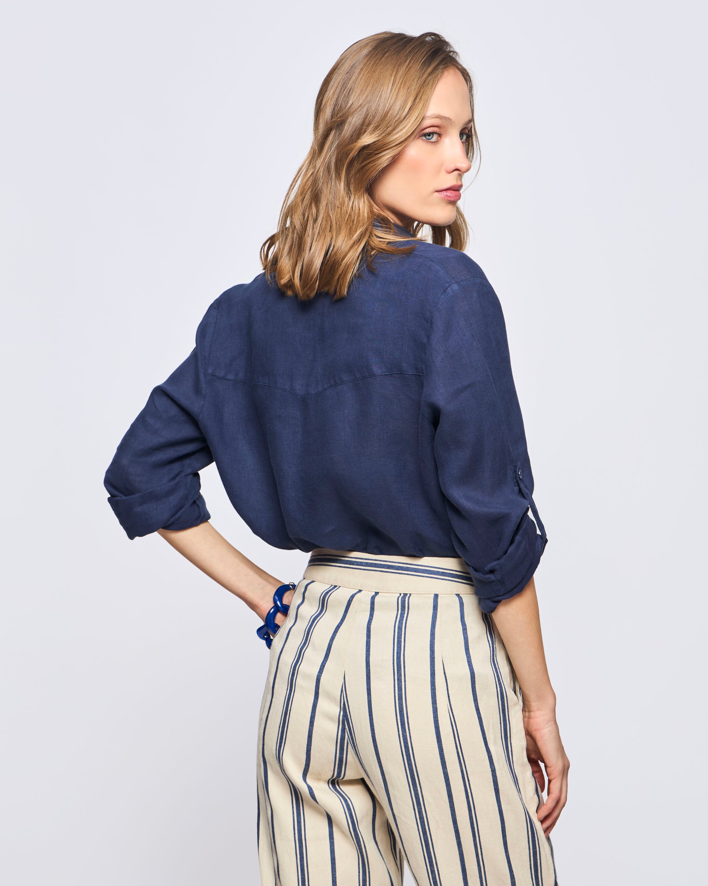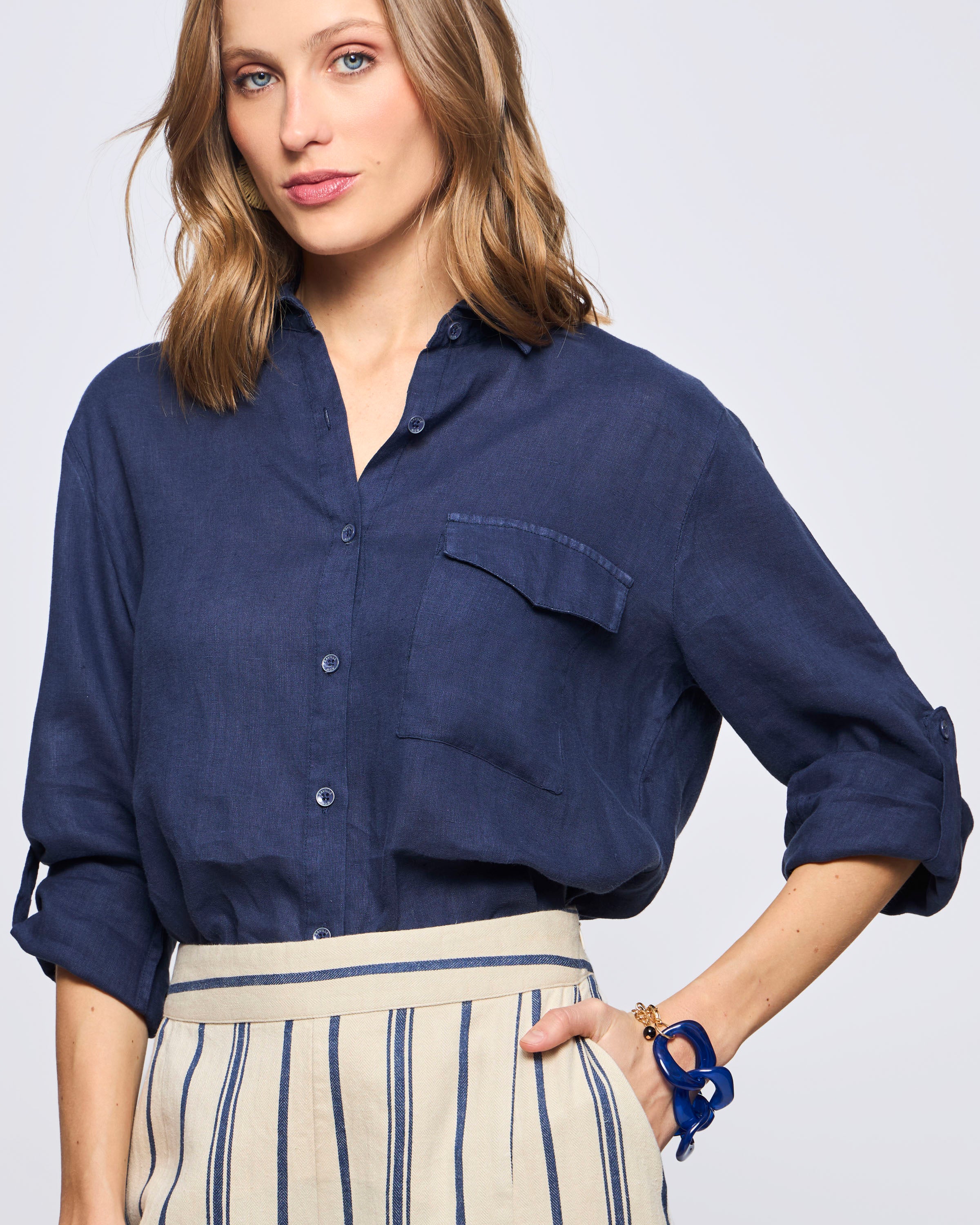 Camisa Lisa Sahariana Un Bolsillo Vintage Lino