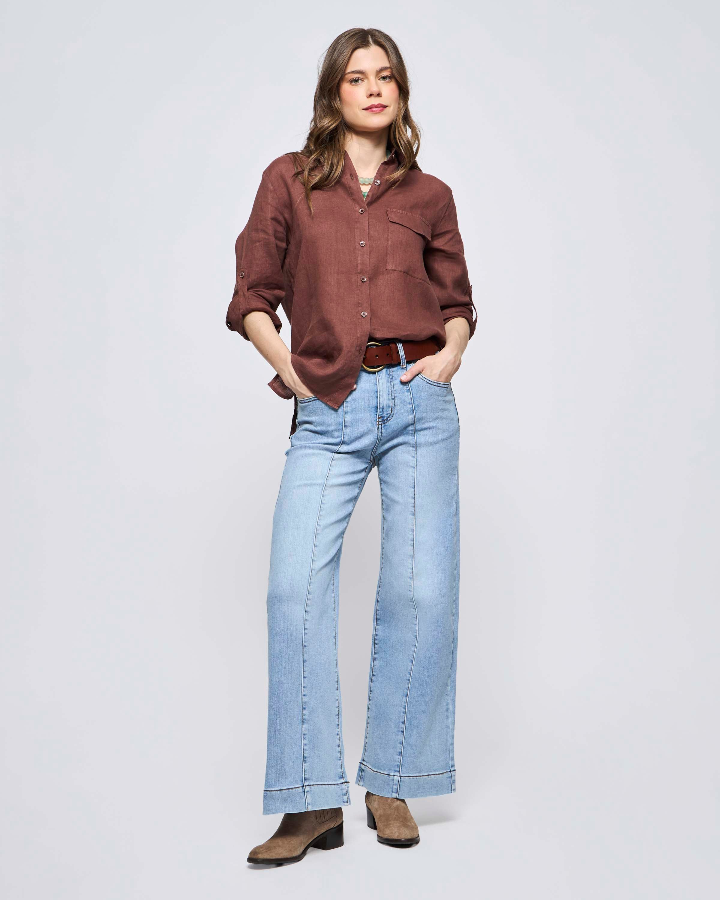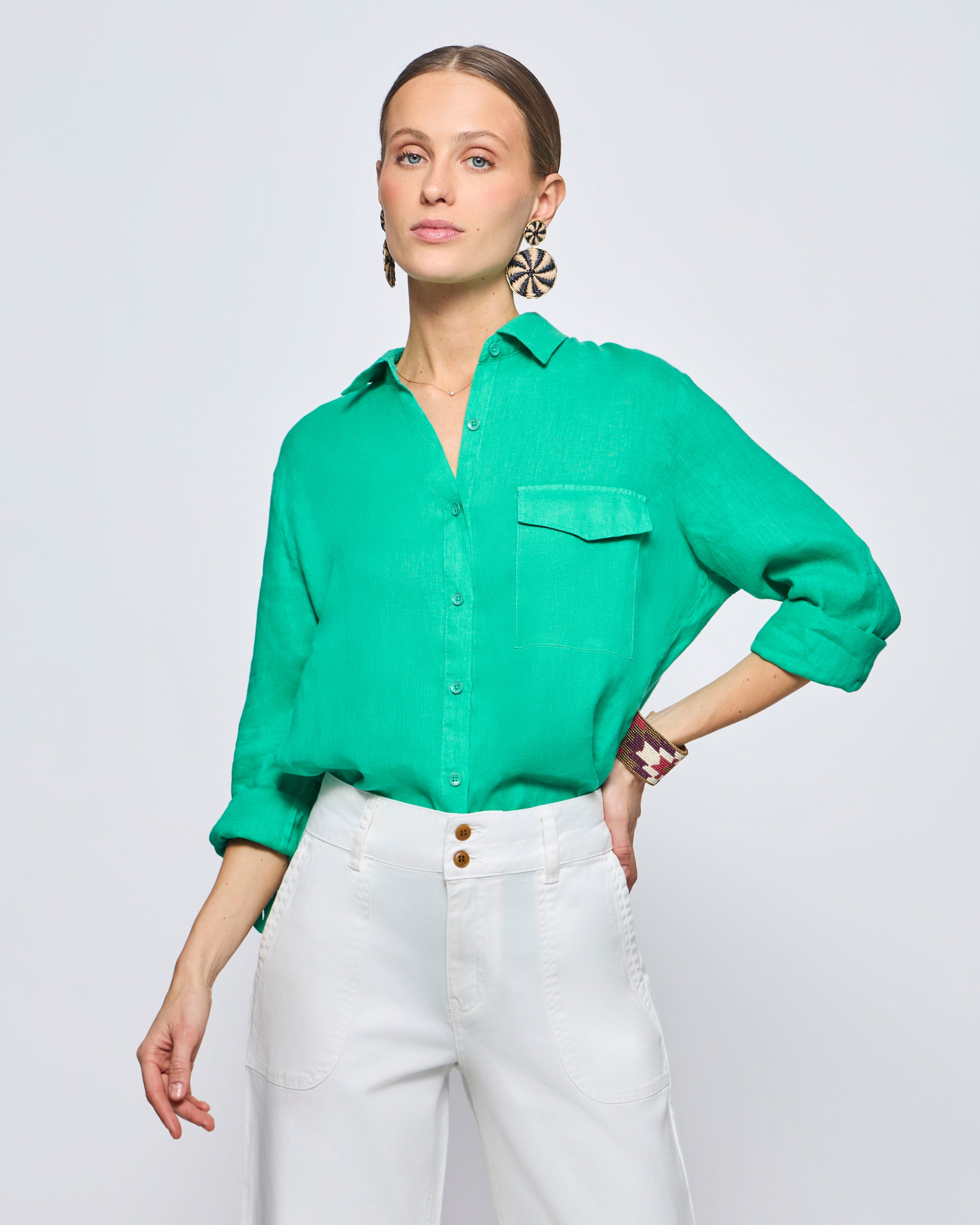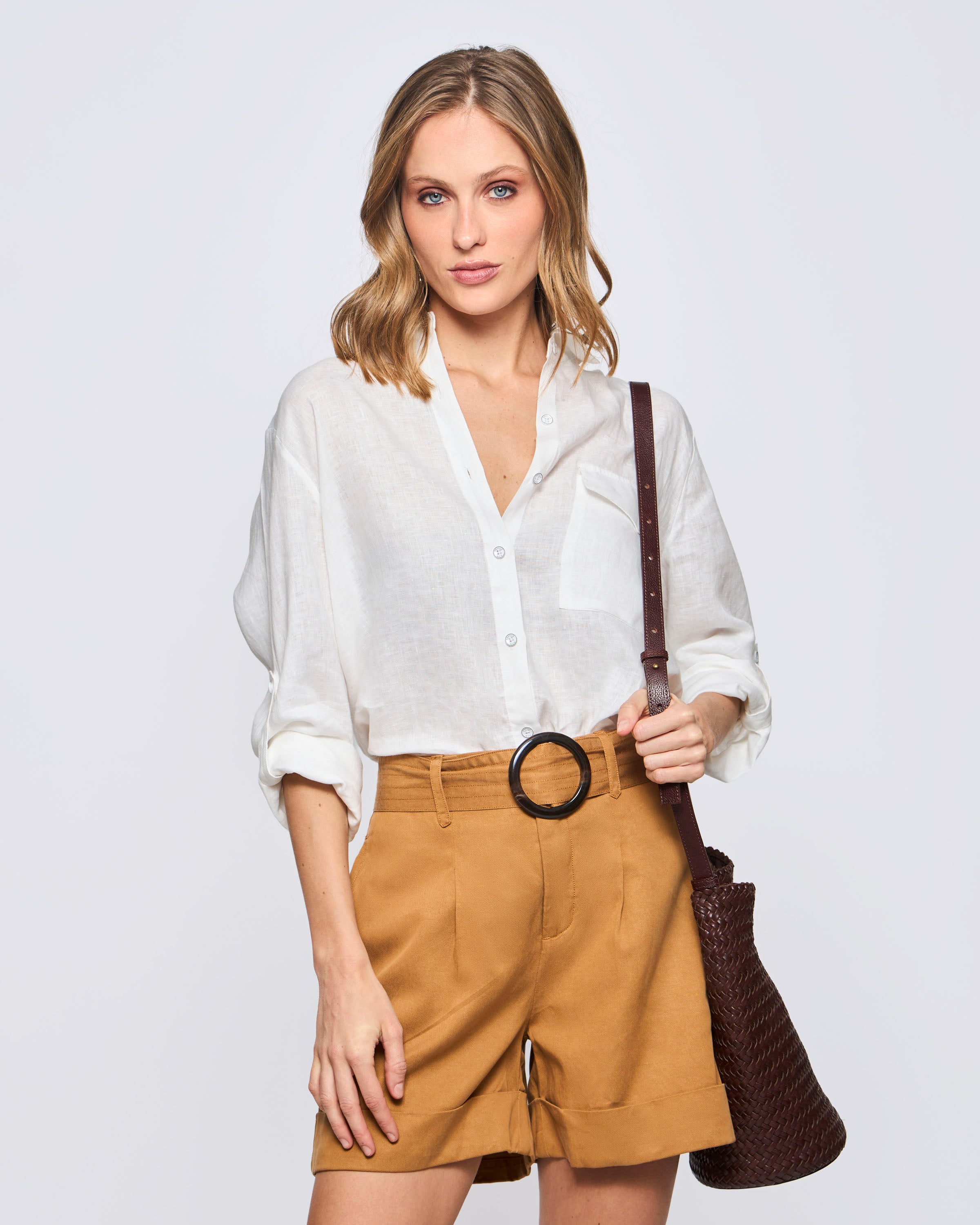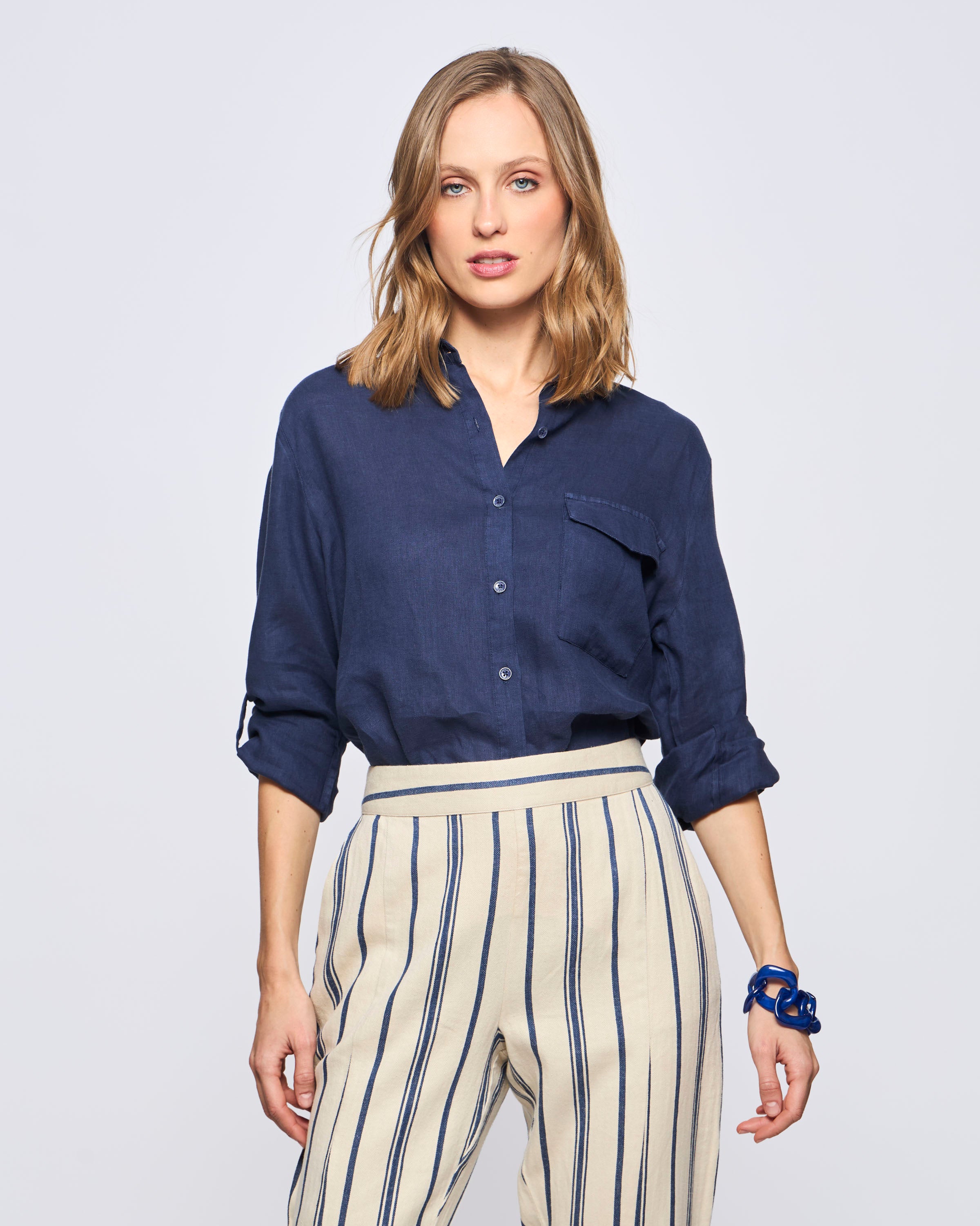 Camisa Lisa Sahariana Un Bolsillo Vintage Lino