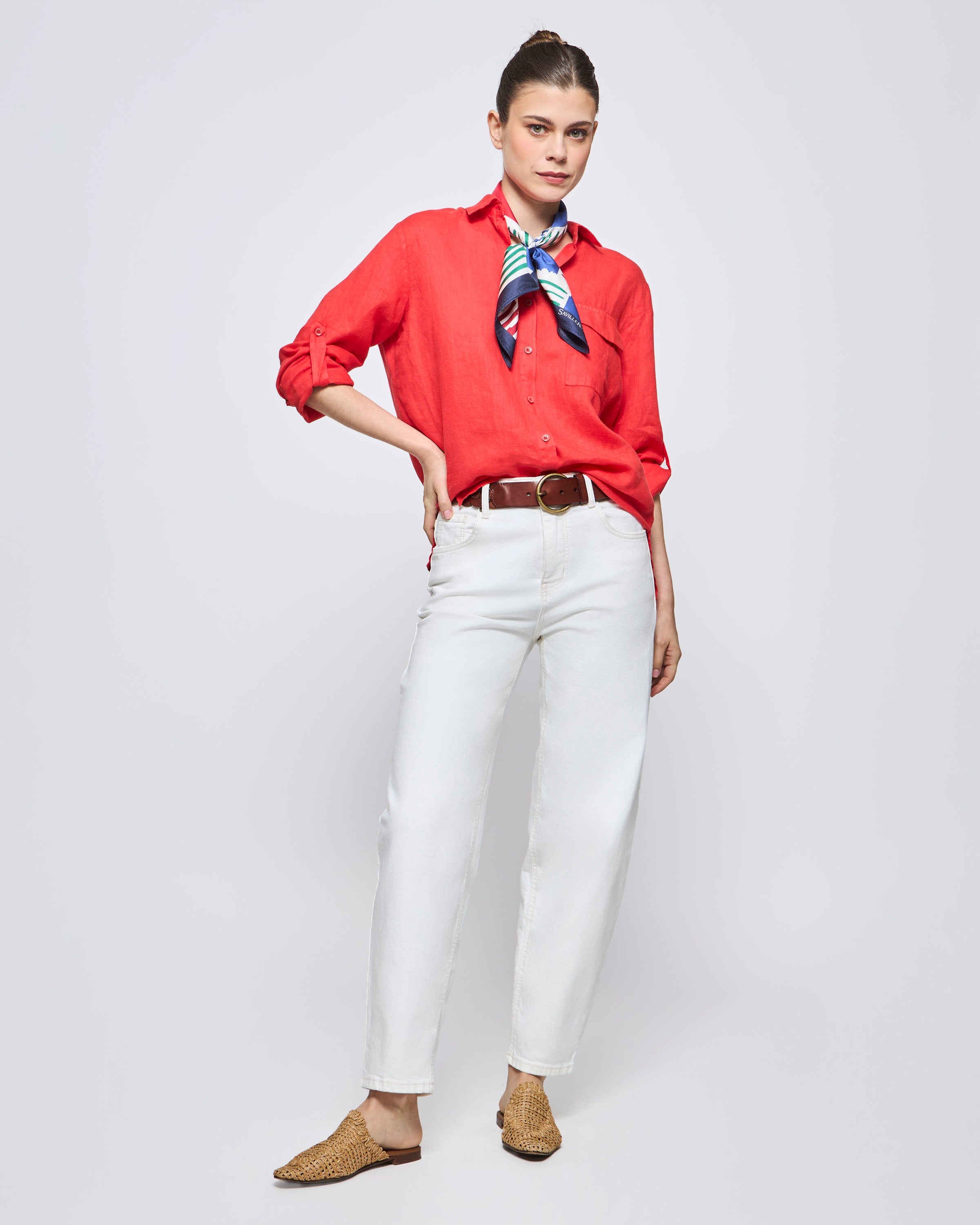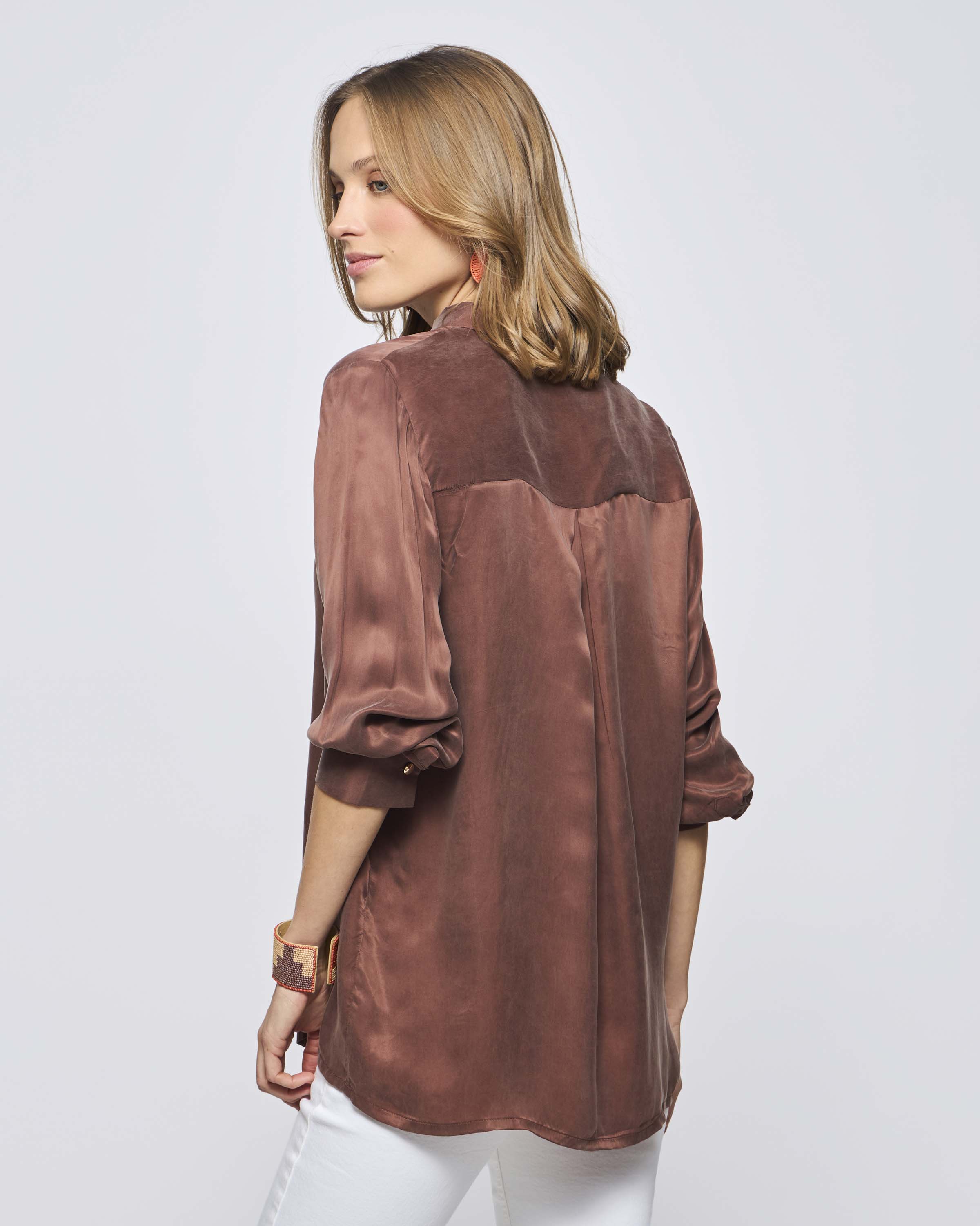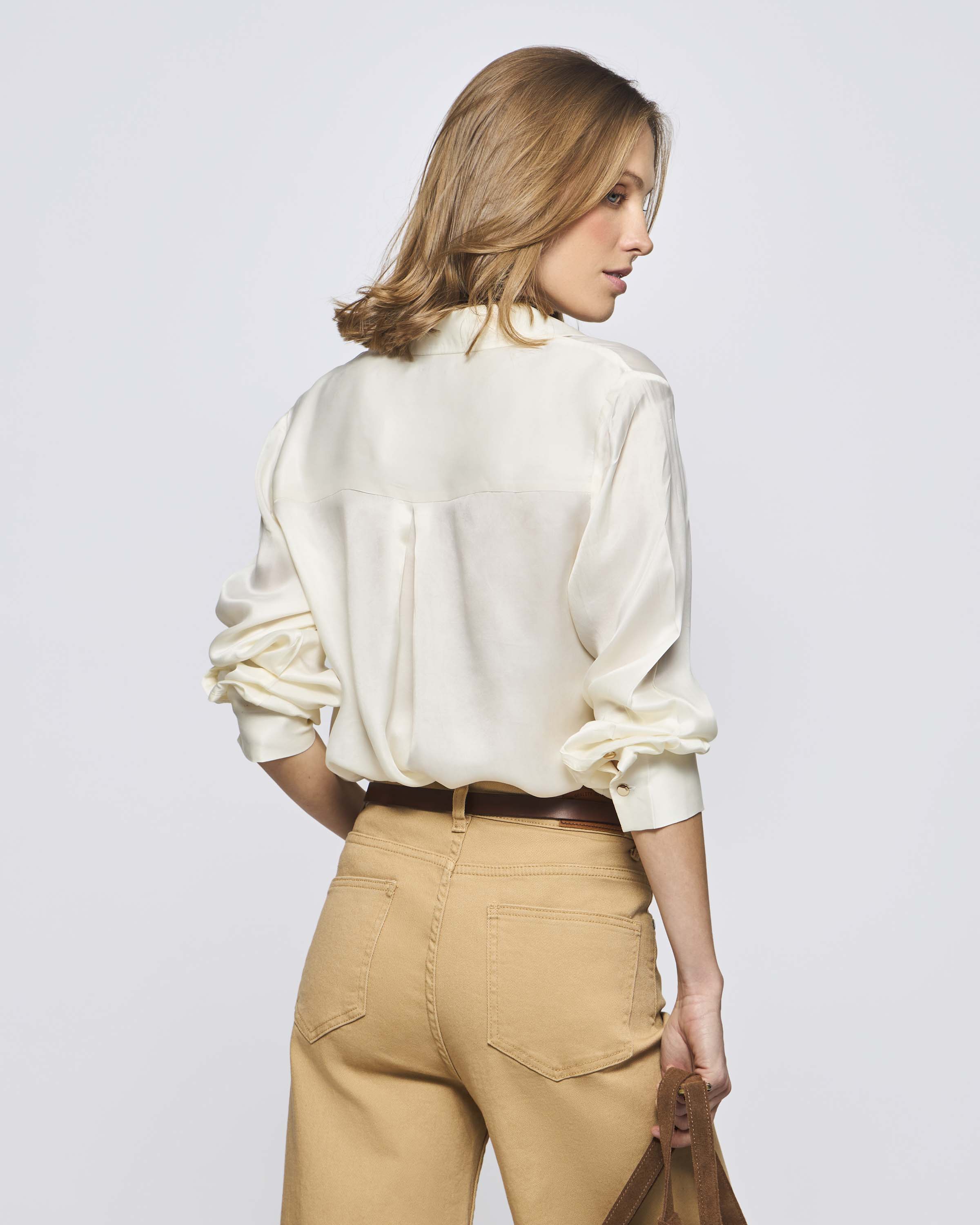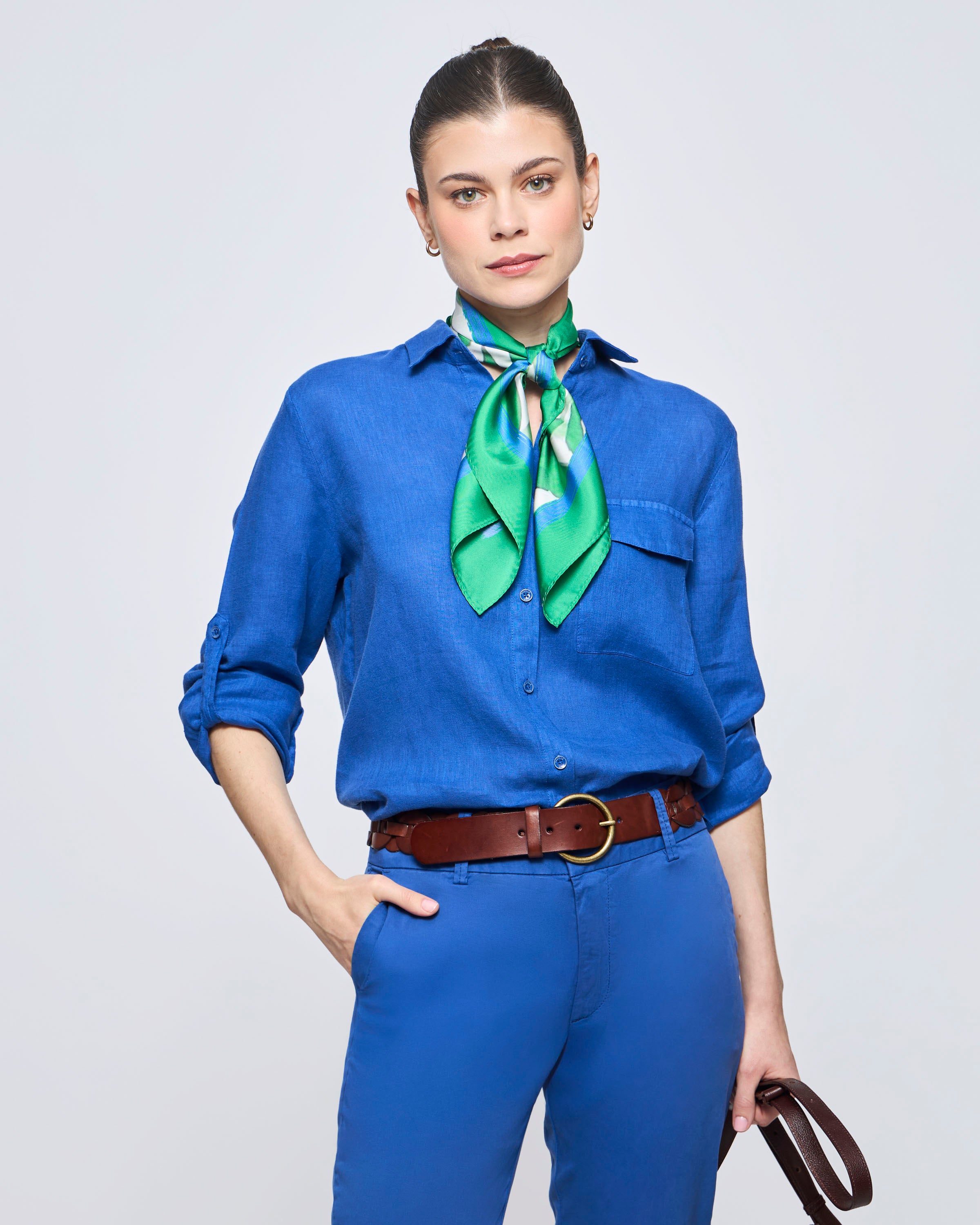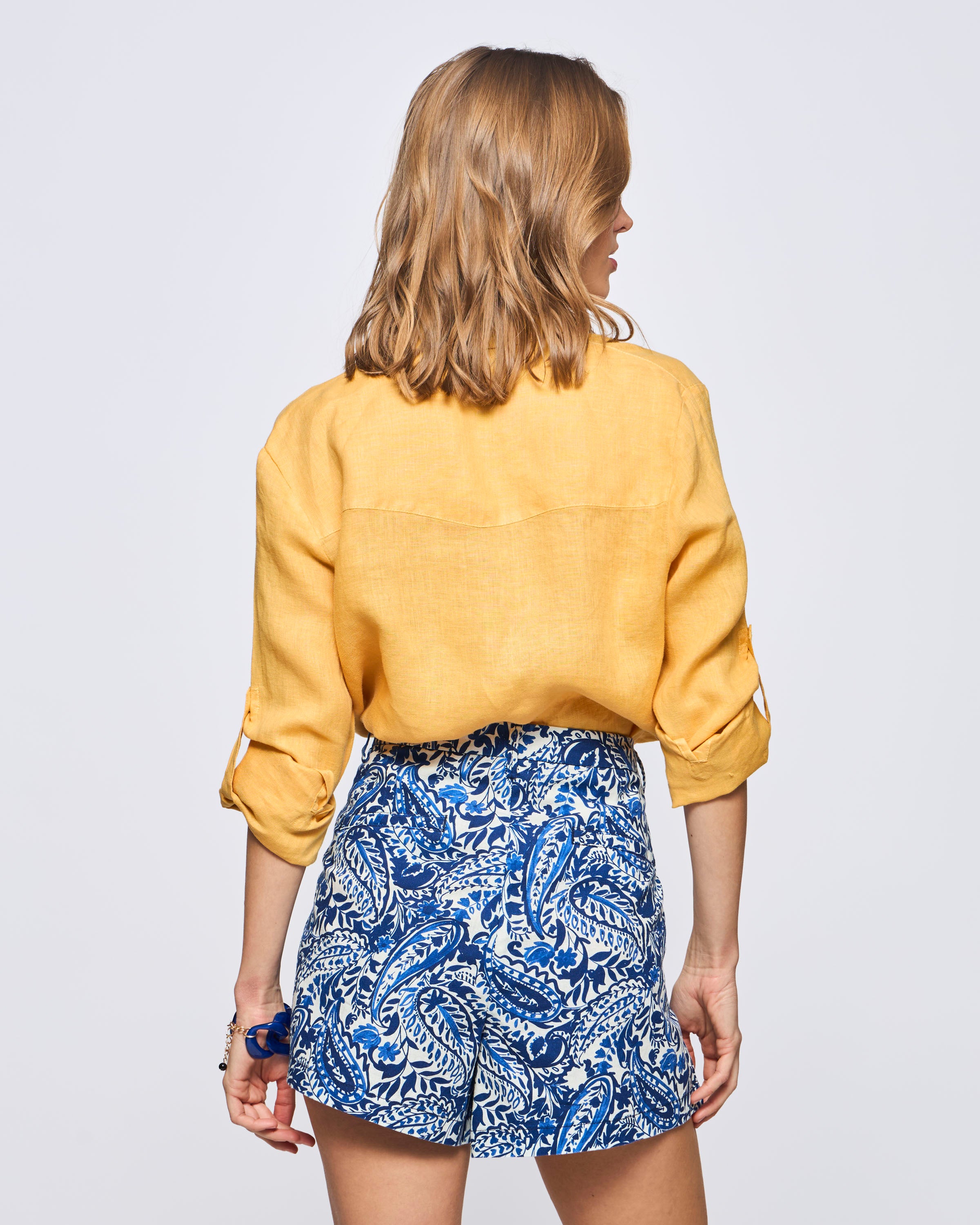 Camisa Lisa Sahariana Un Bolsillo Vintage Lino