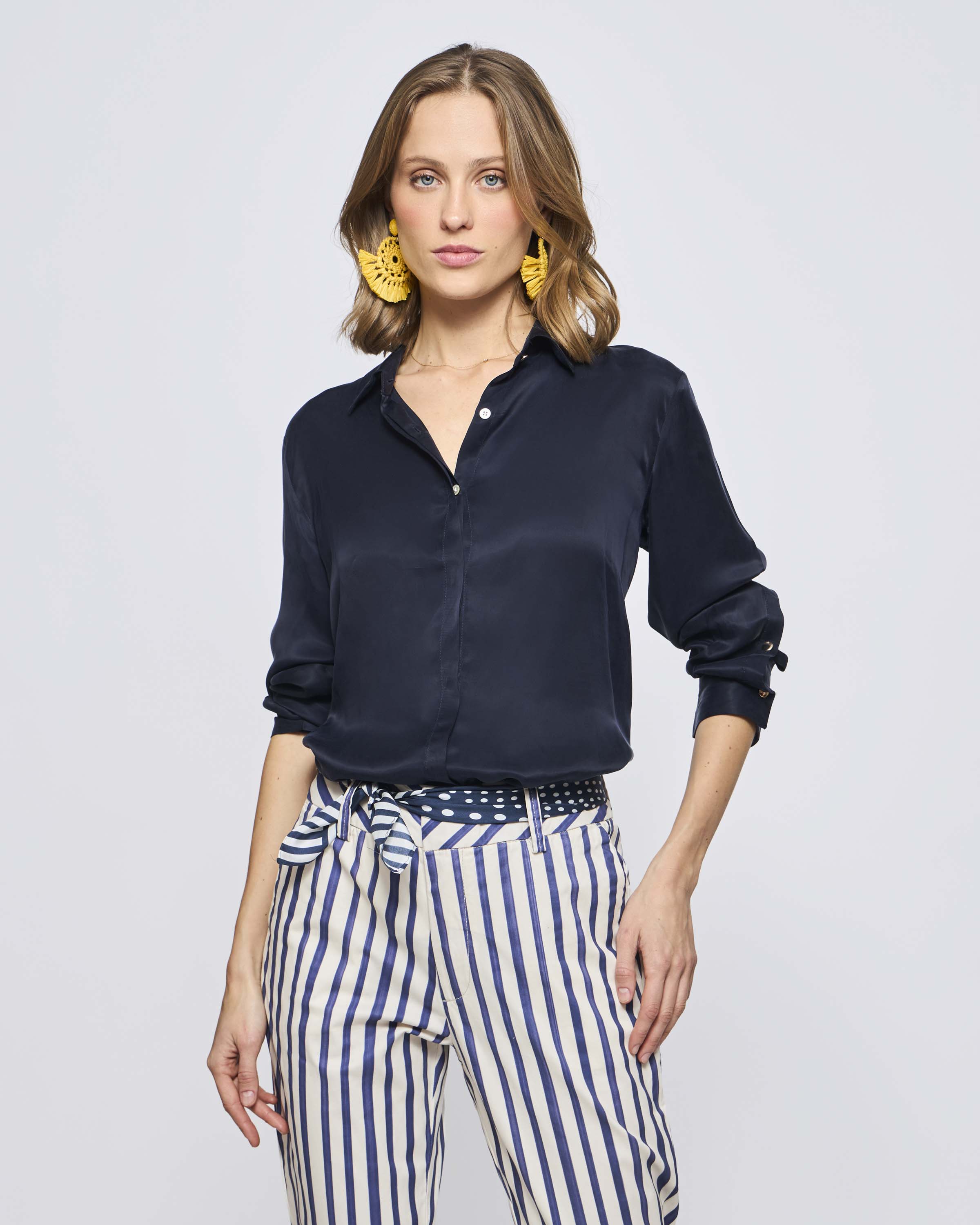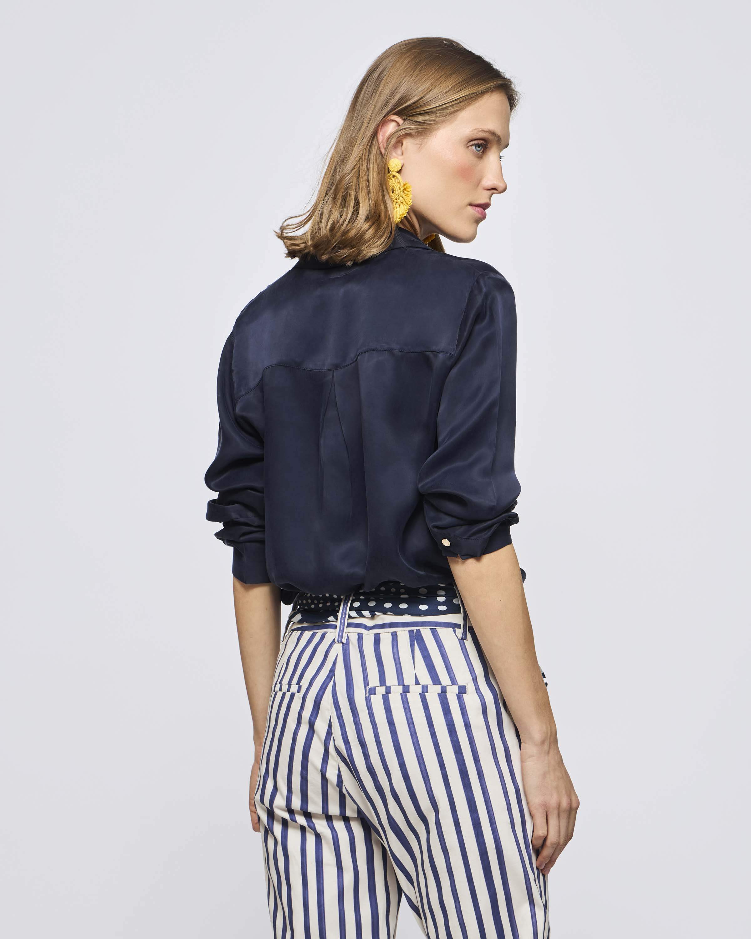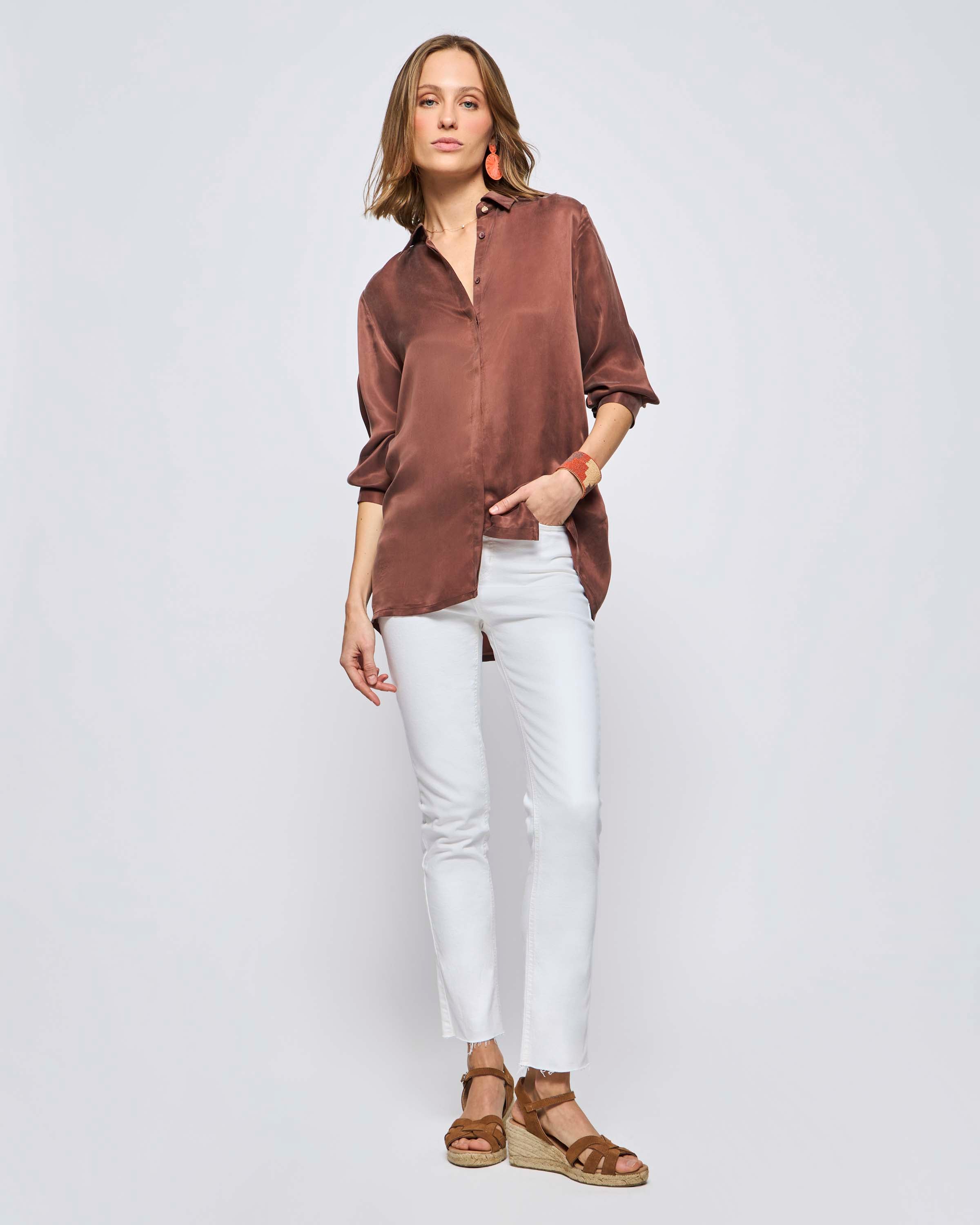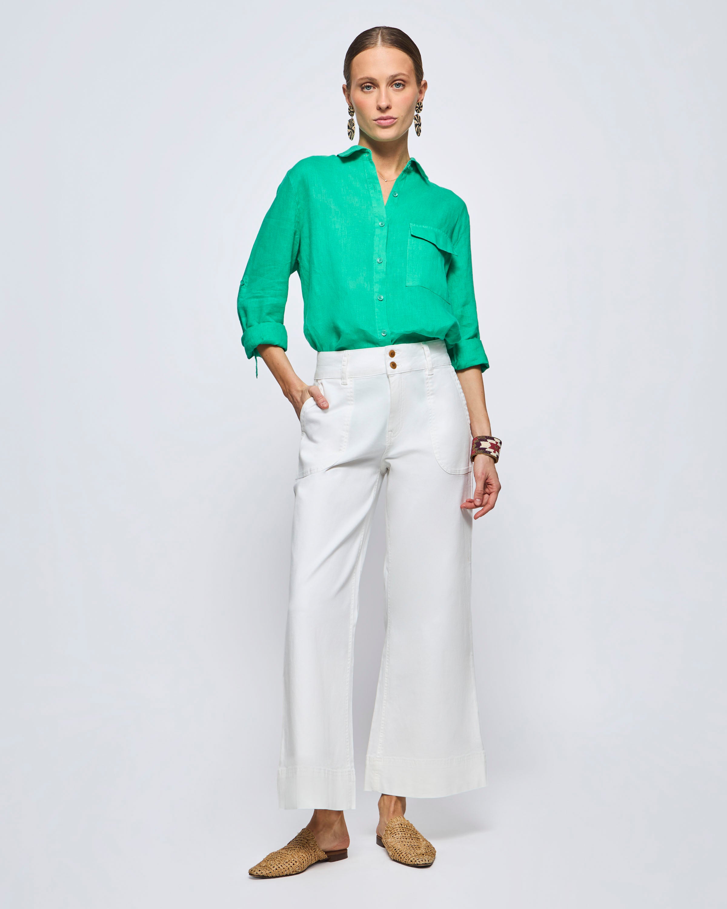 Camisa Lisa Sahariana Un Bolsillo Vintage Lino