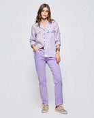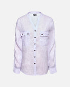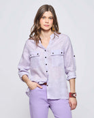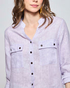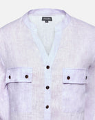 Blusa Safari Lino Cuello a la Base Manga Larga Bolsillos