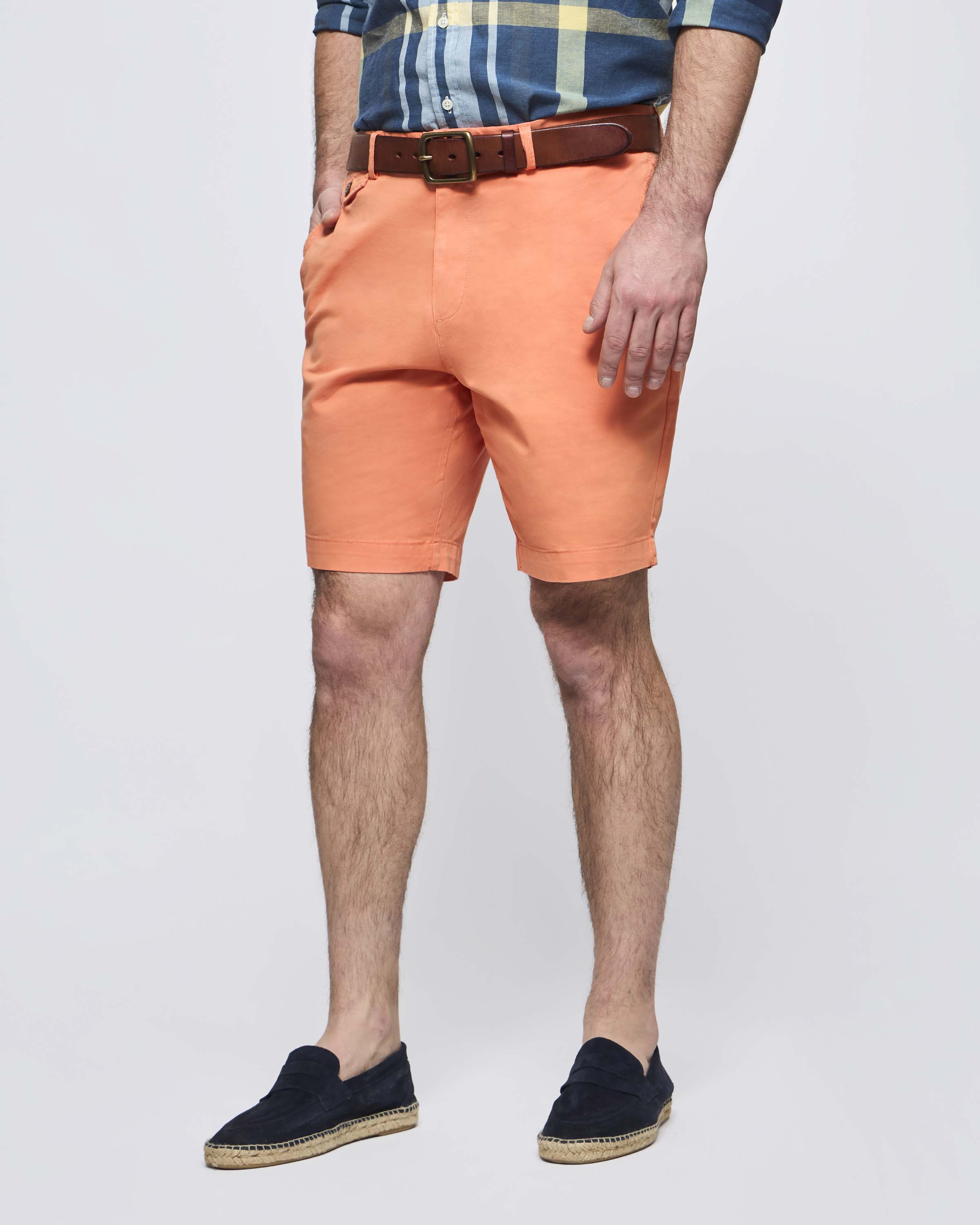 Nuestro Clásico Modelo de Short sin Pinzas, Inspirado en nuestros Pantalones Clásicos, son el compañero perfecto para los días de calor. Cómodos, Frescos, Suaves y en Atractivos Colores, son Indispensables para los días de Sol y Calor.
