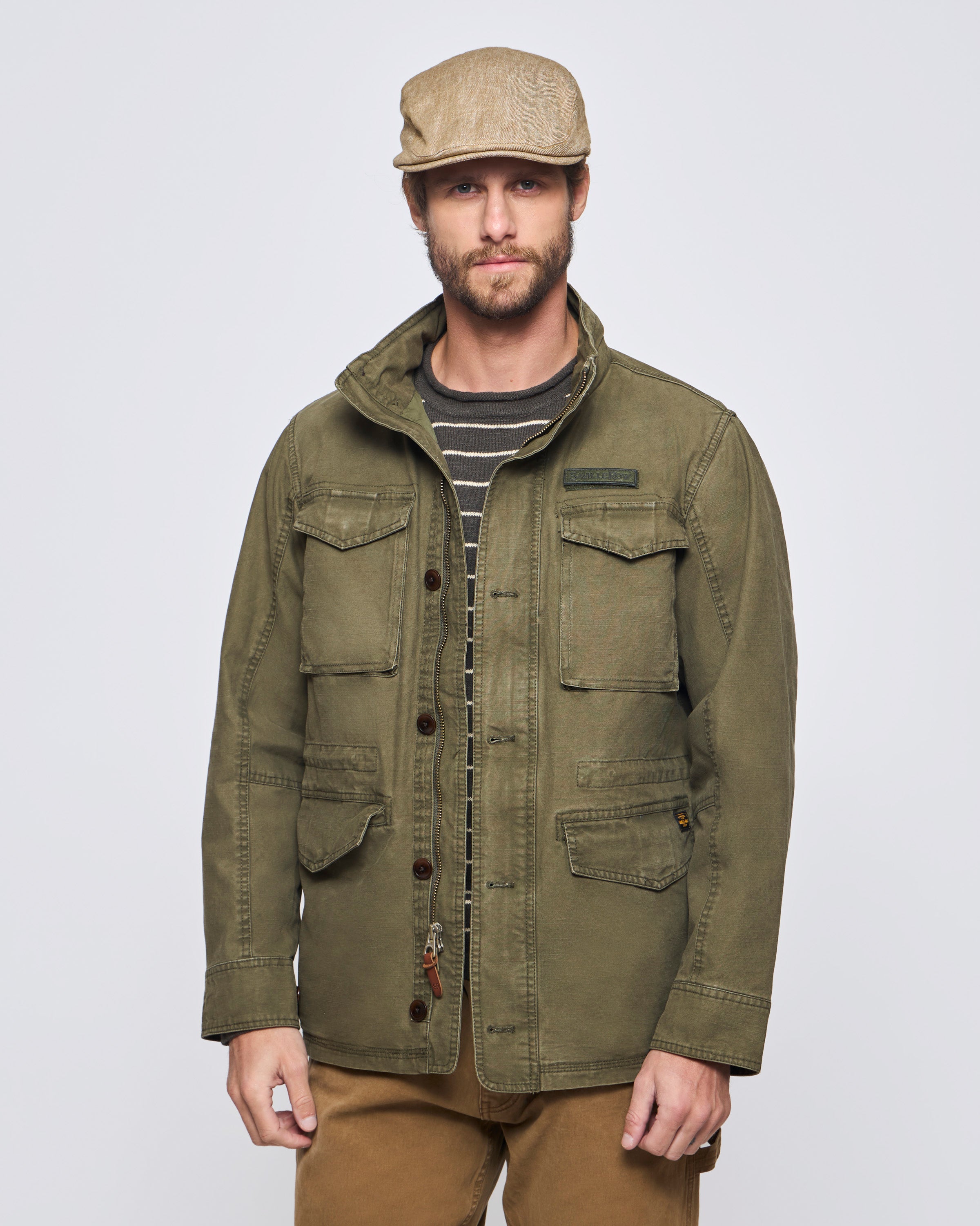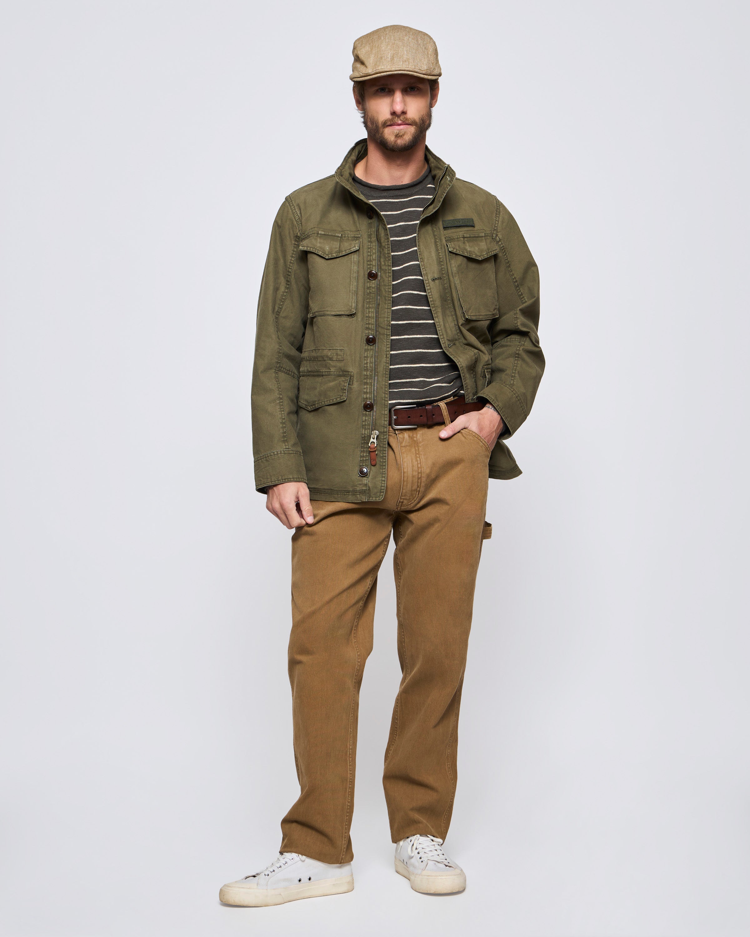 Inspirada en los Uniformes Militares esta Chaqueta es Relajada y Entretenida, es Perfecta para usar con Jeans y con una Polera.