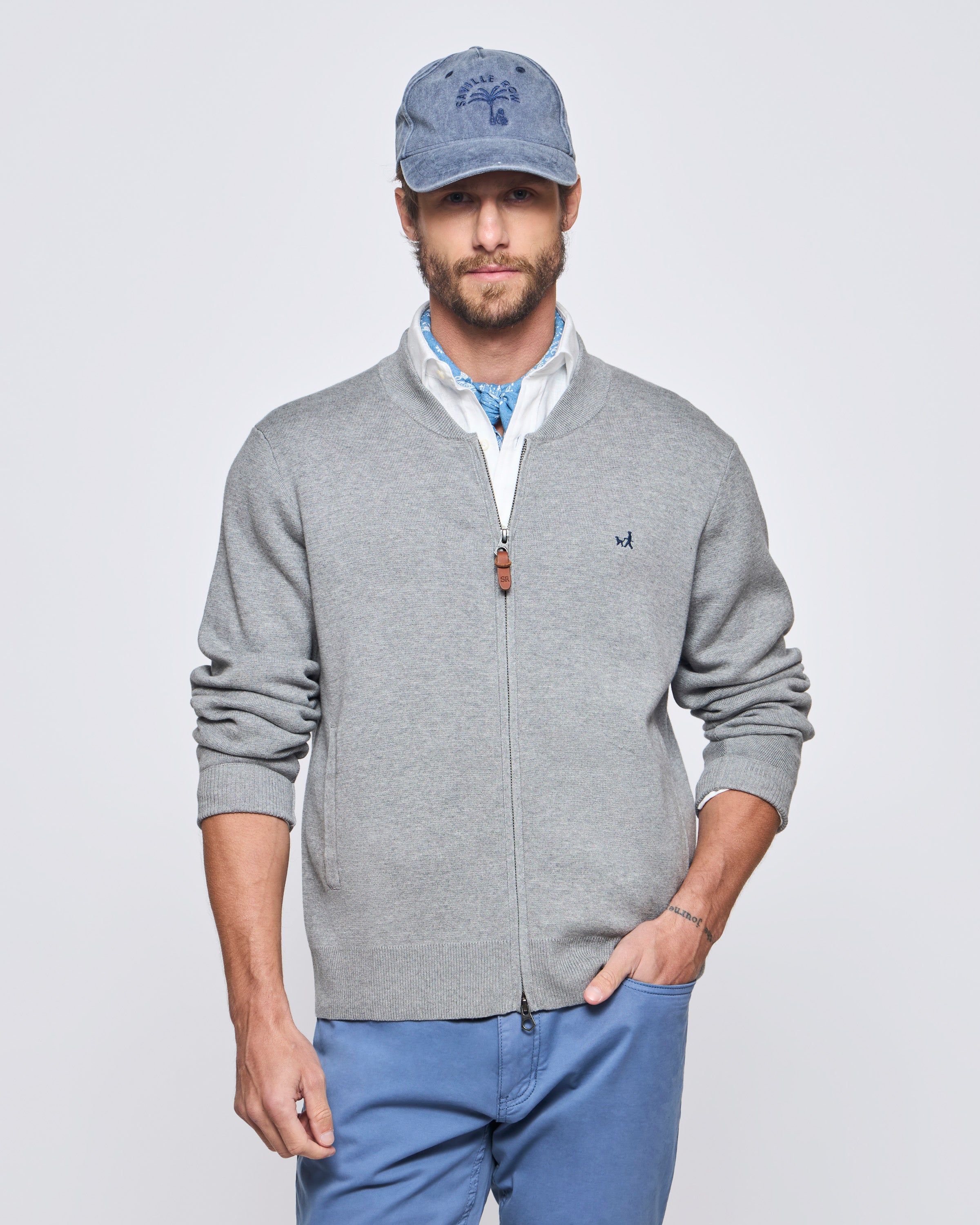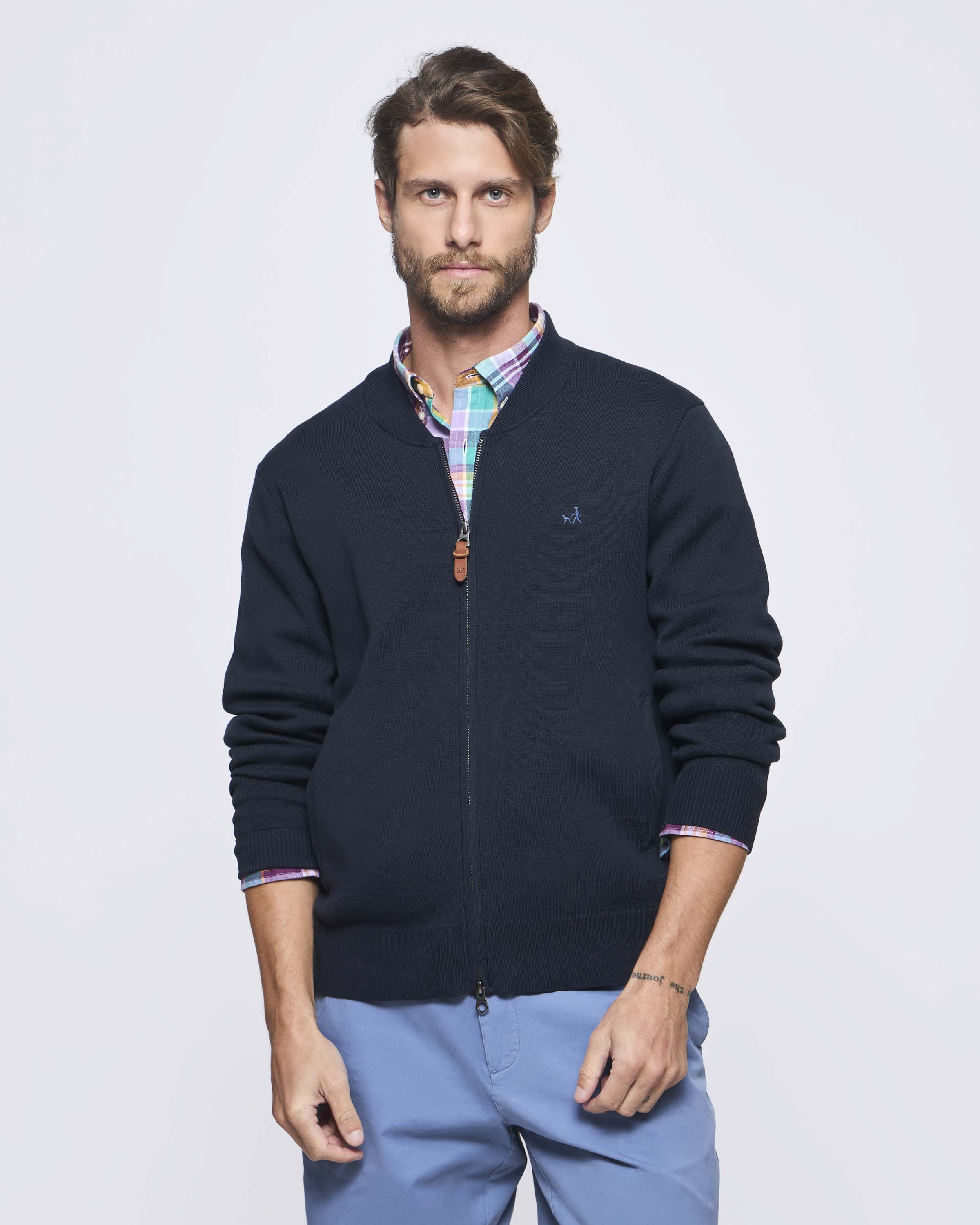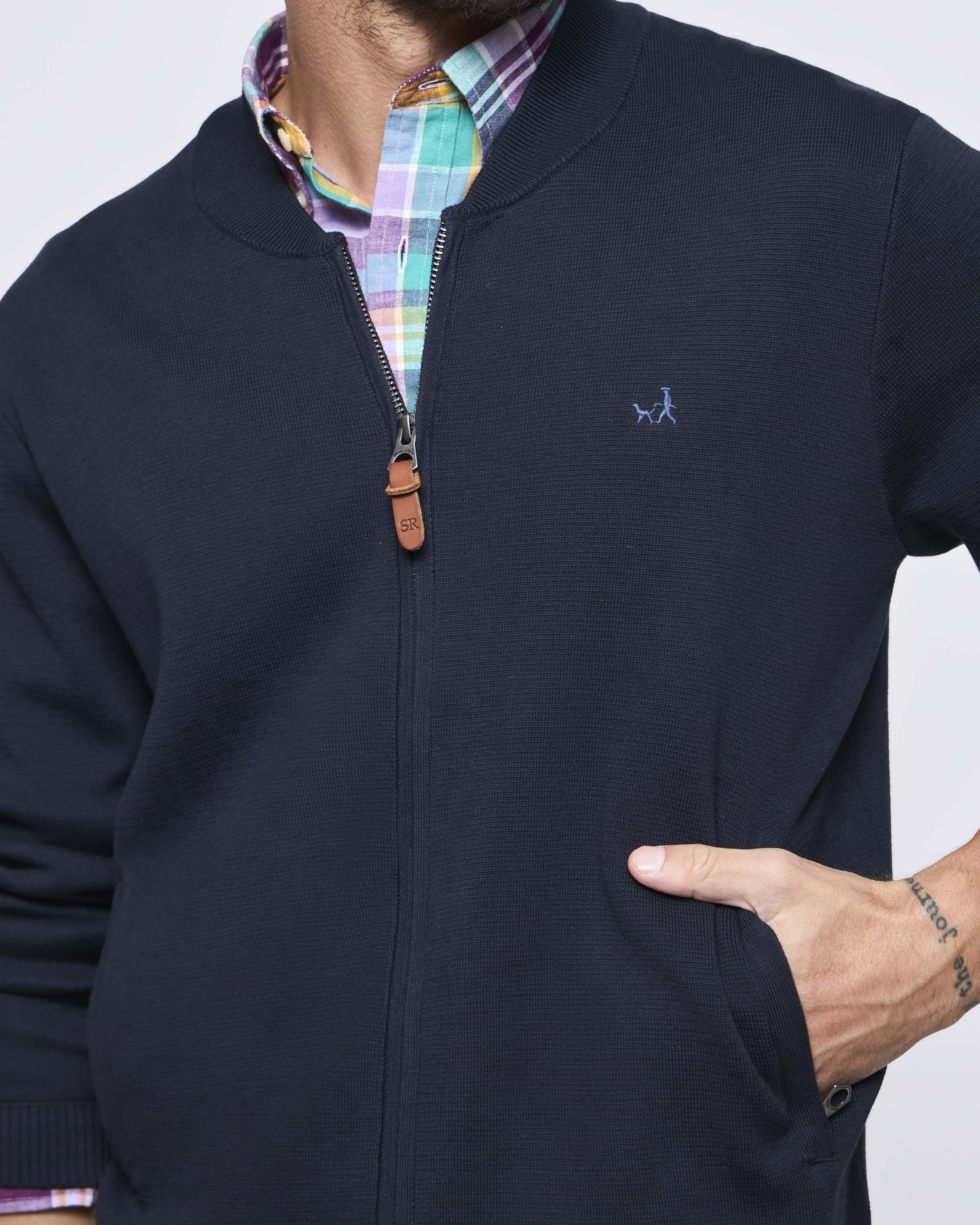 Sweater Clásico Bomber Bolsillos Manga Larga Pima
