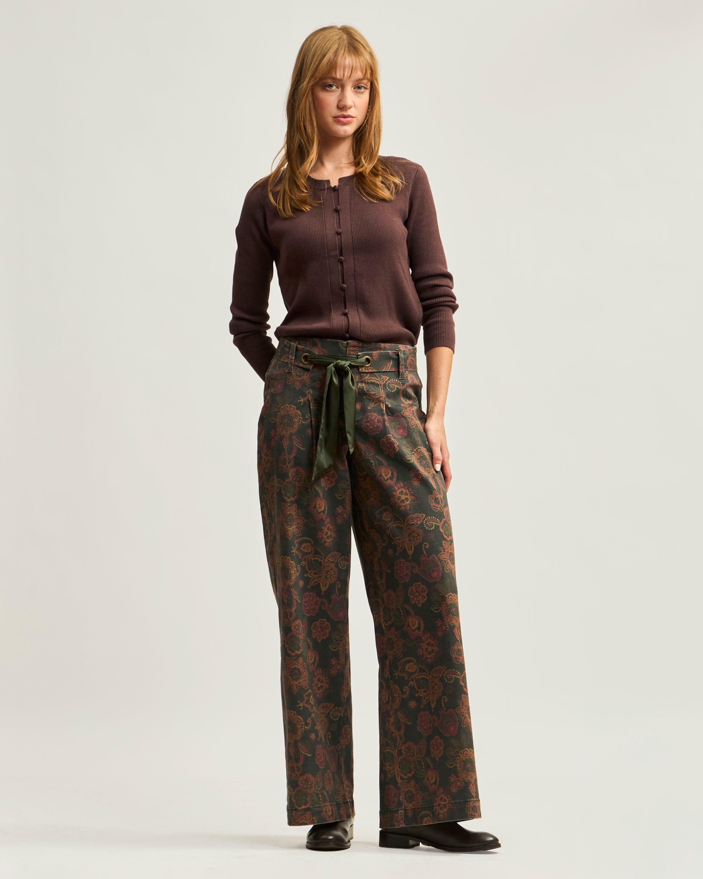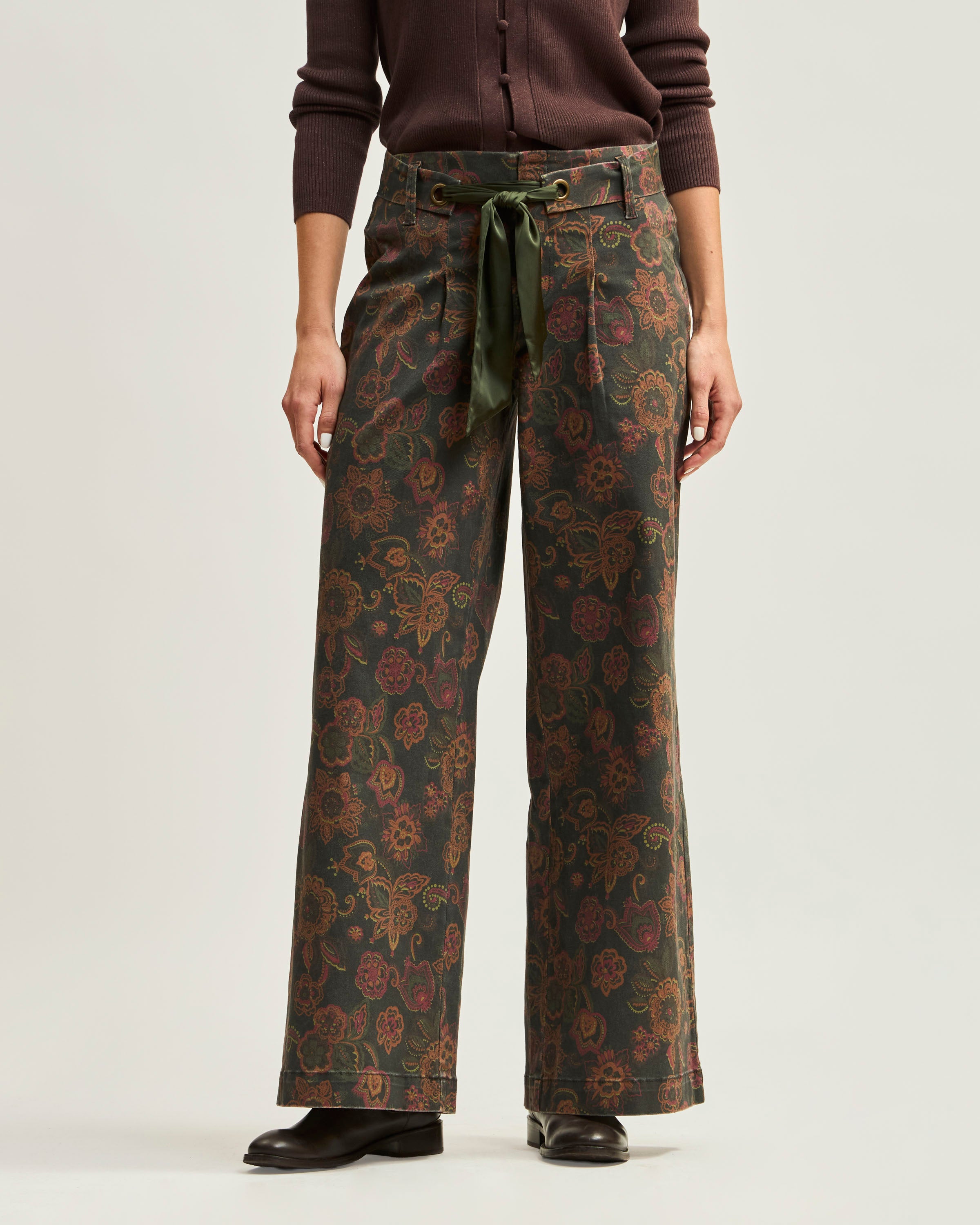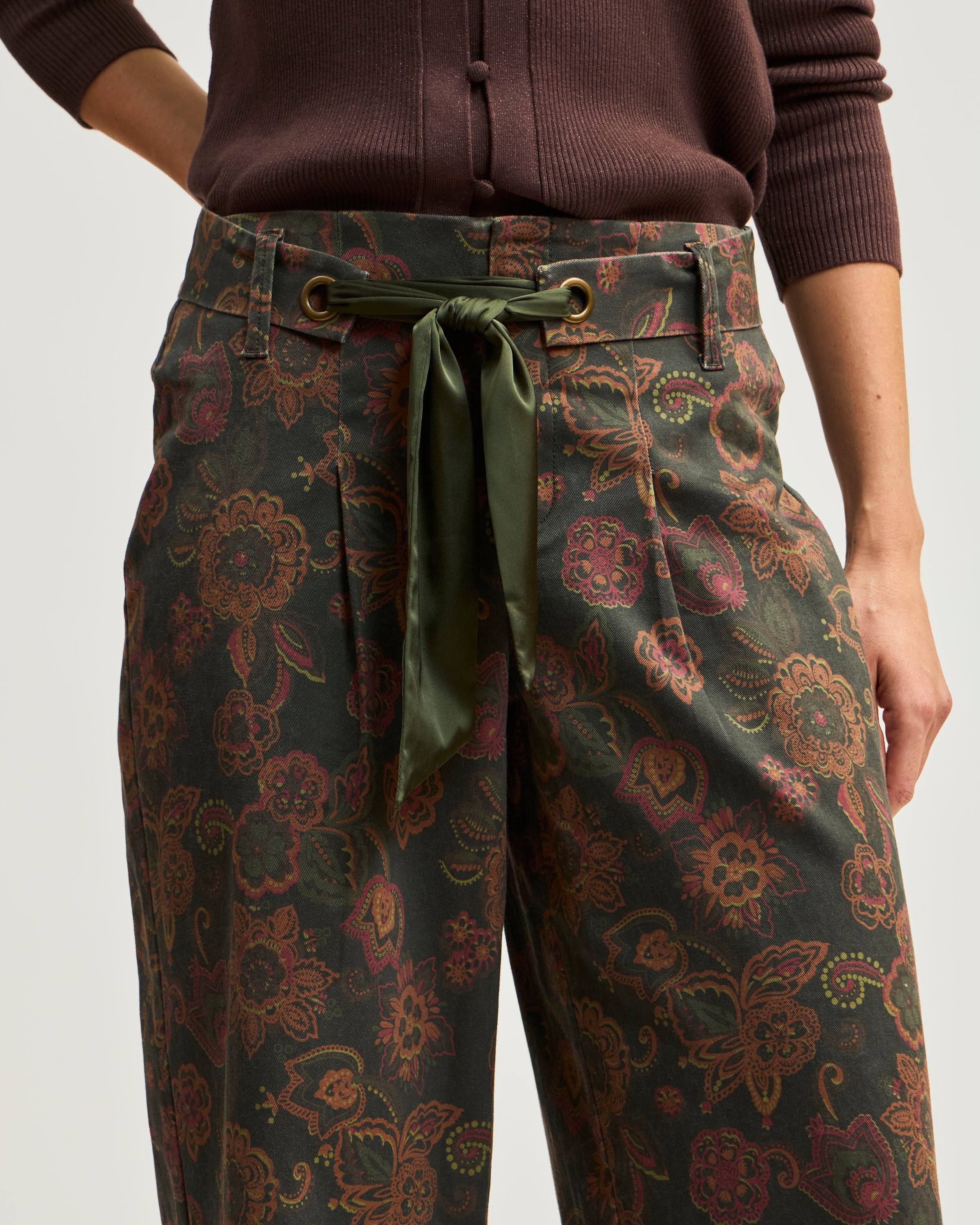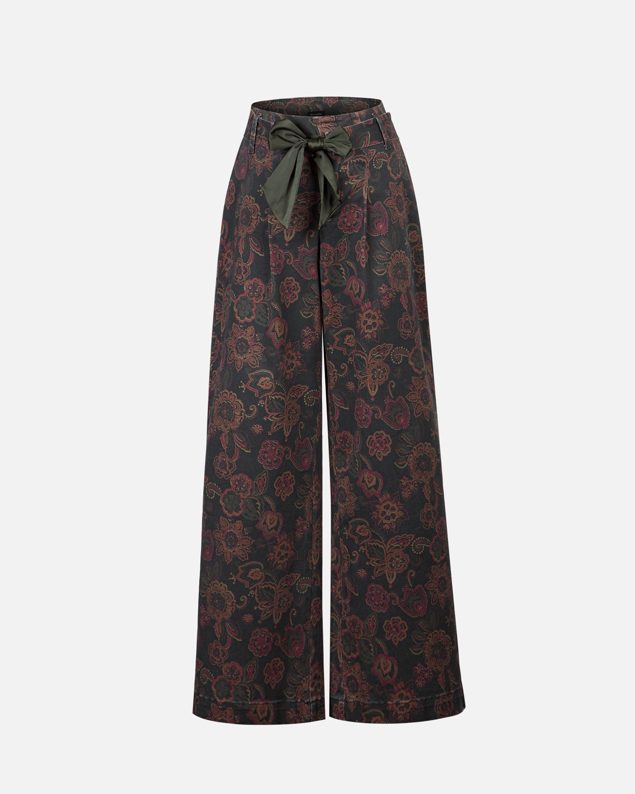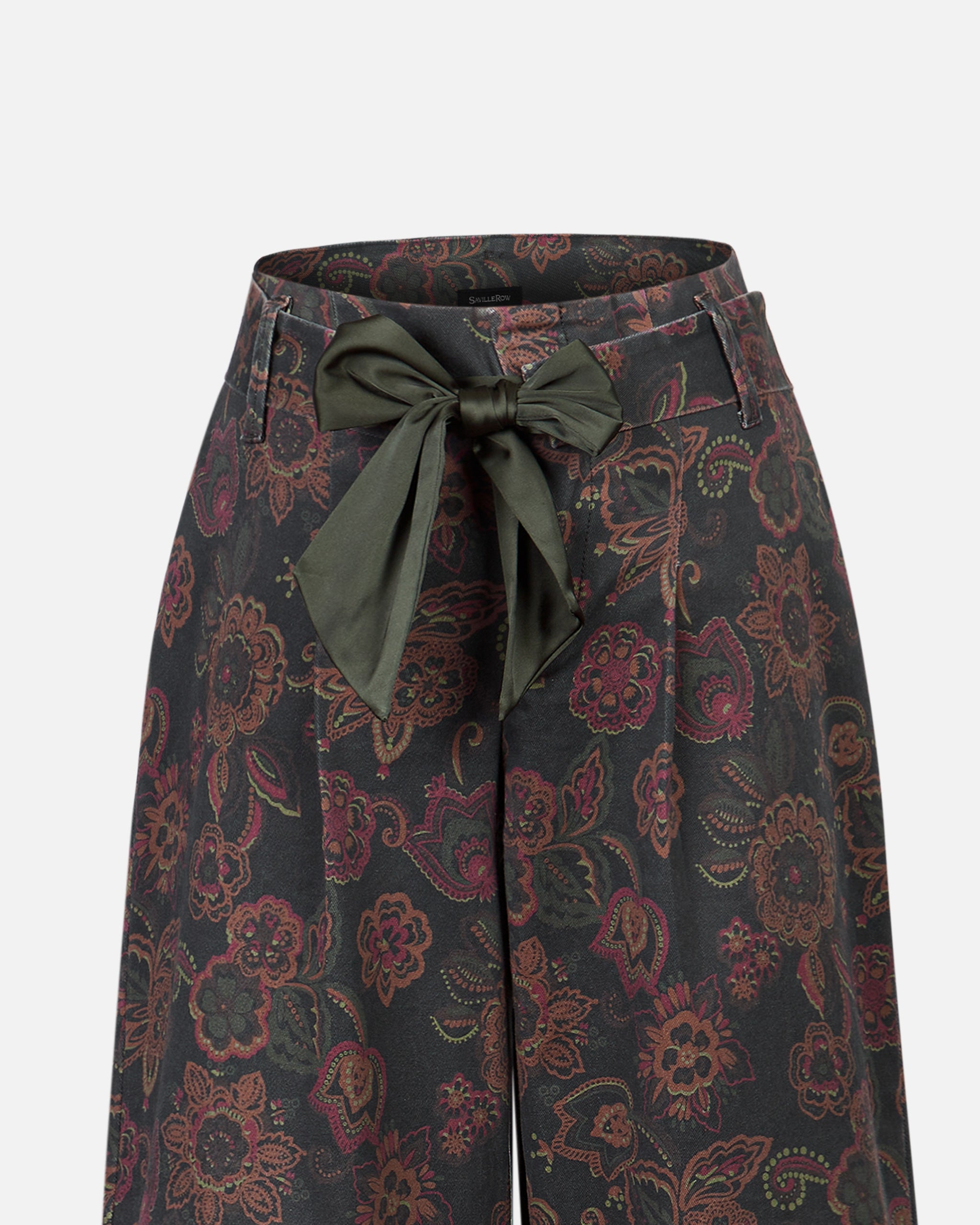 Pantalón Print Ancho Pinzas Amarra Con Pañuelo