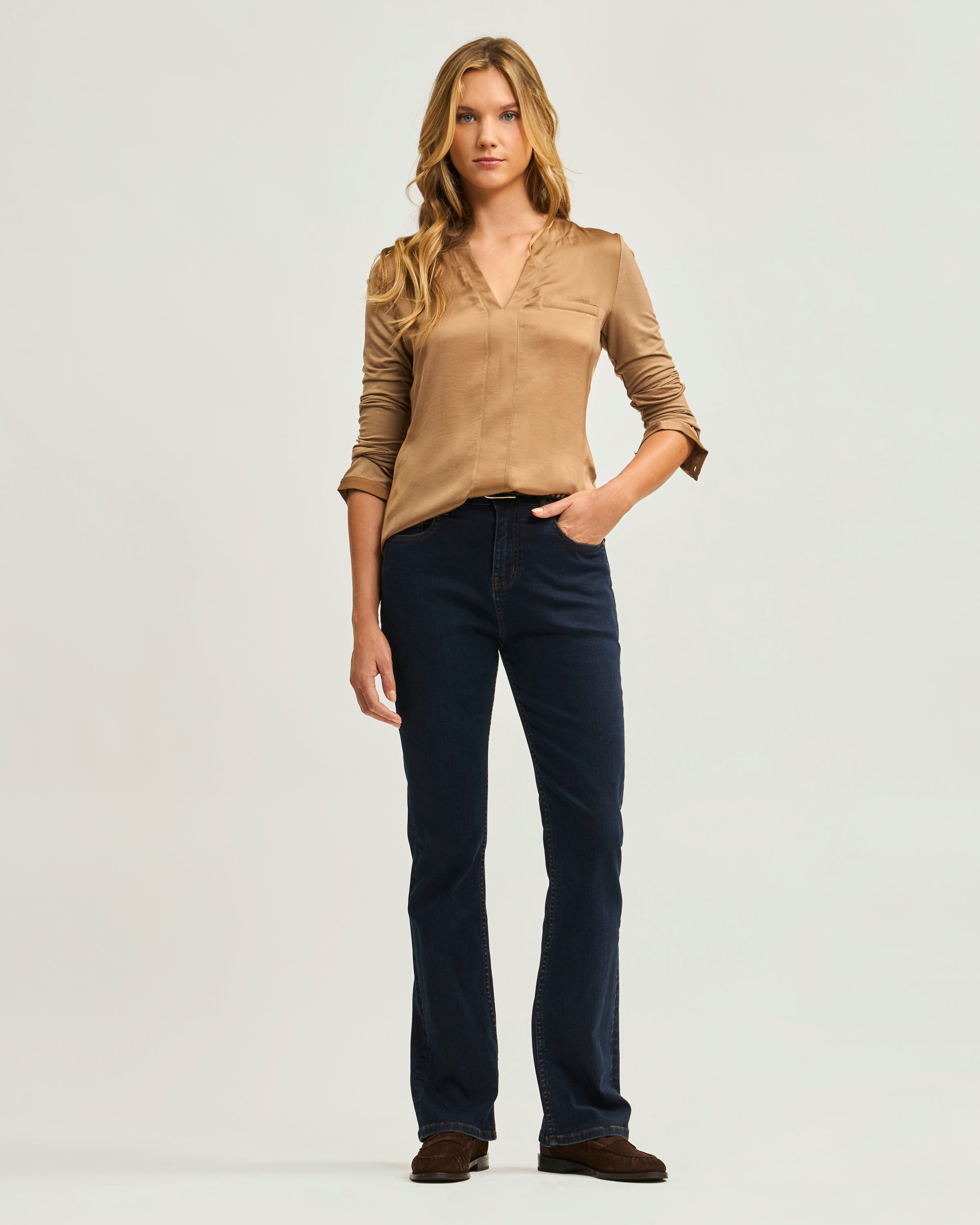 Polera Cuello Mao V Con Bolsillos Doble Tela