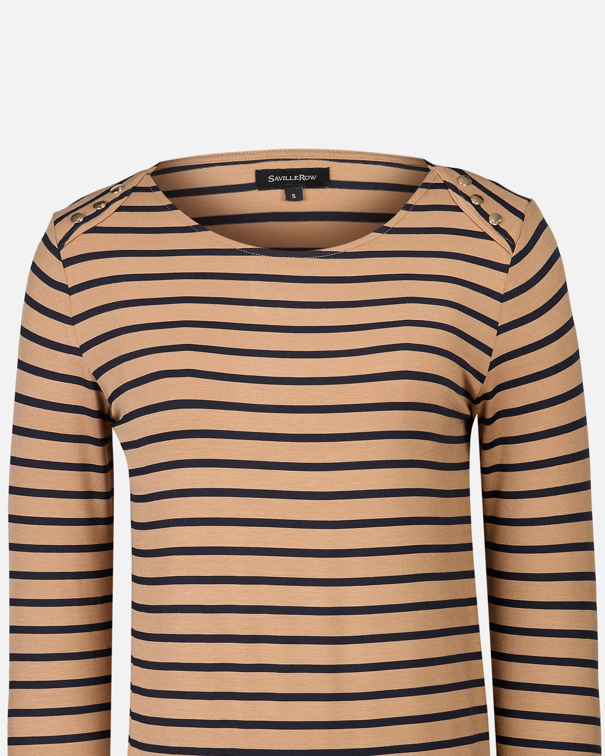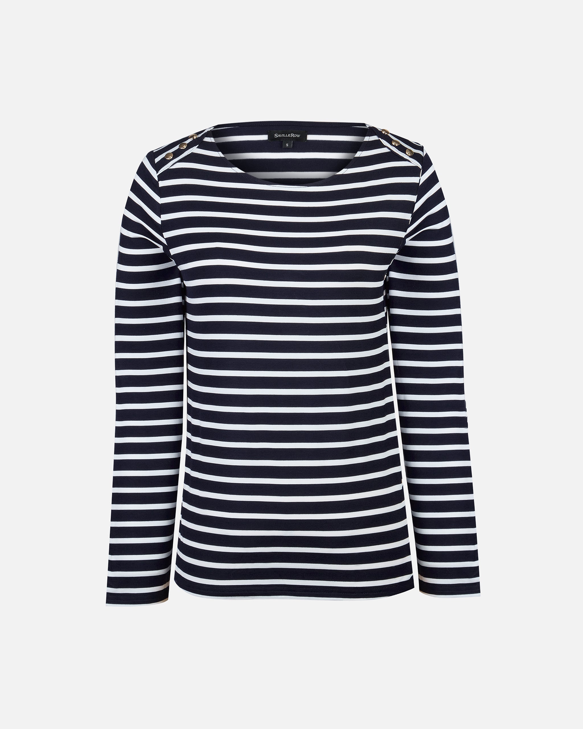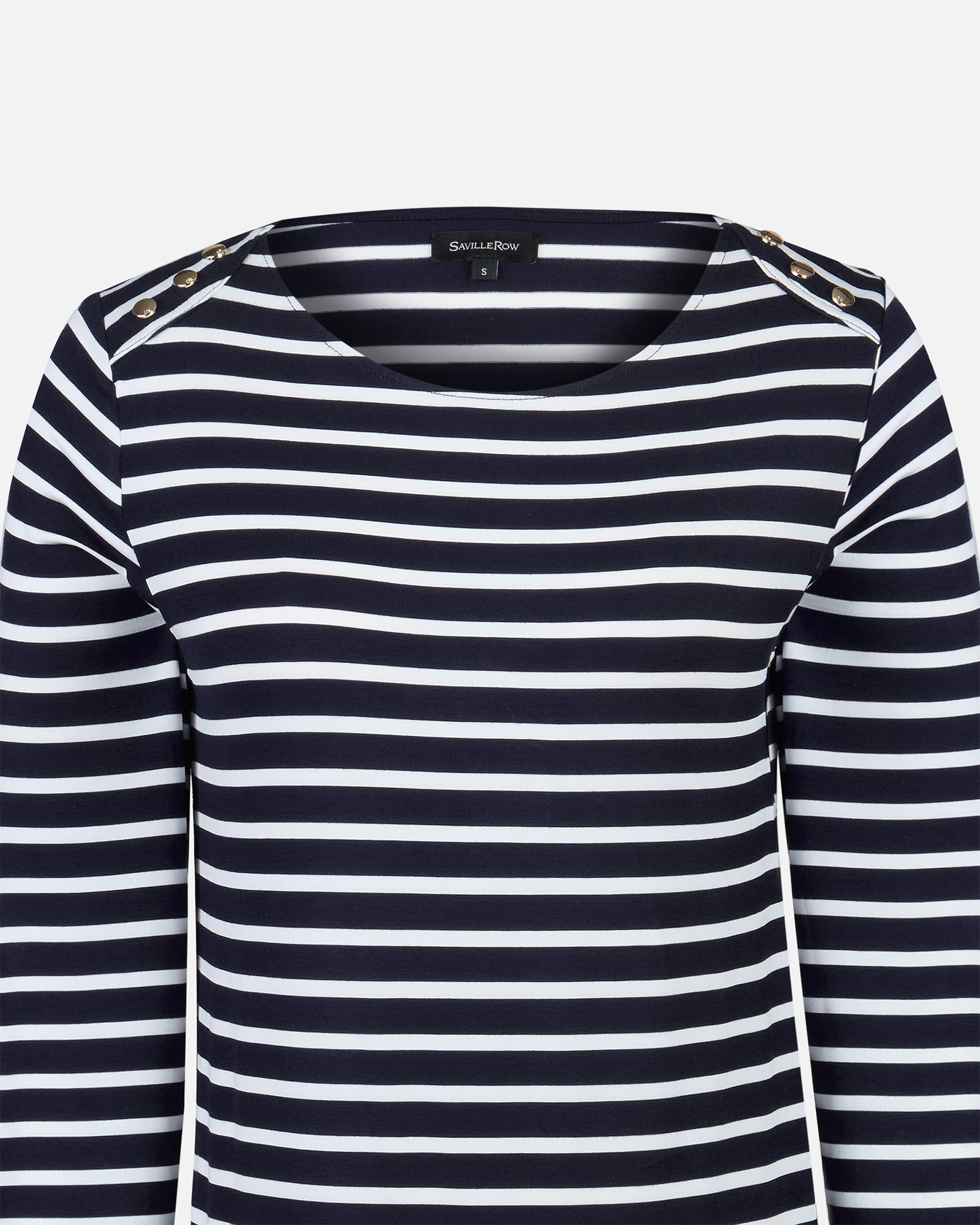 Polera Rayada Cuello Bote Con Botones En Hombro