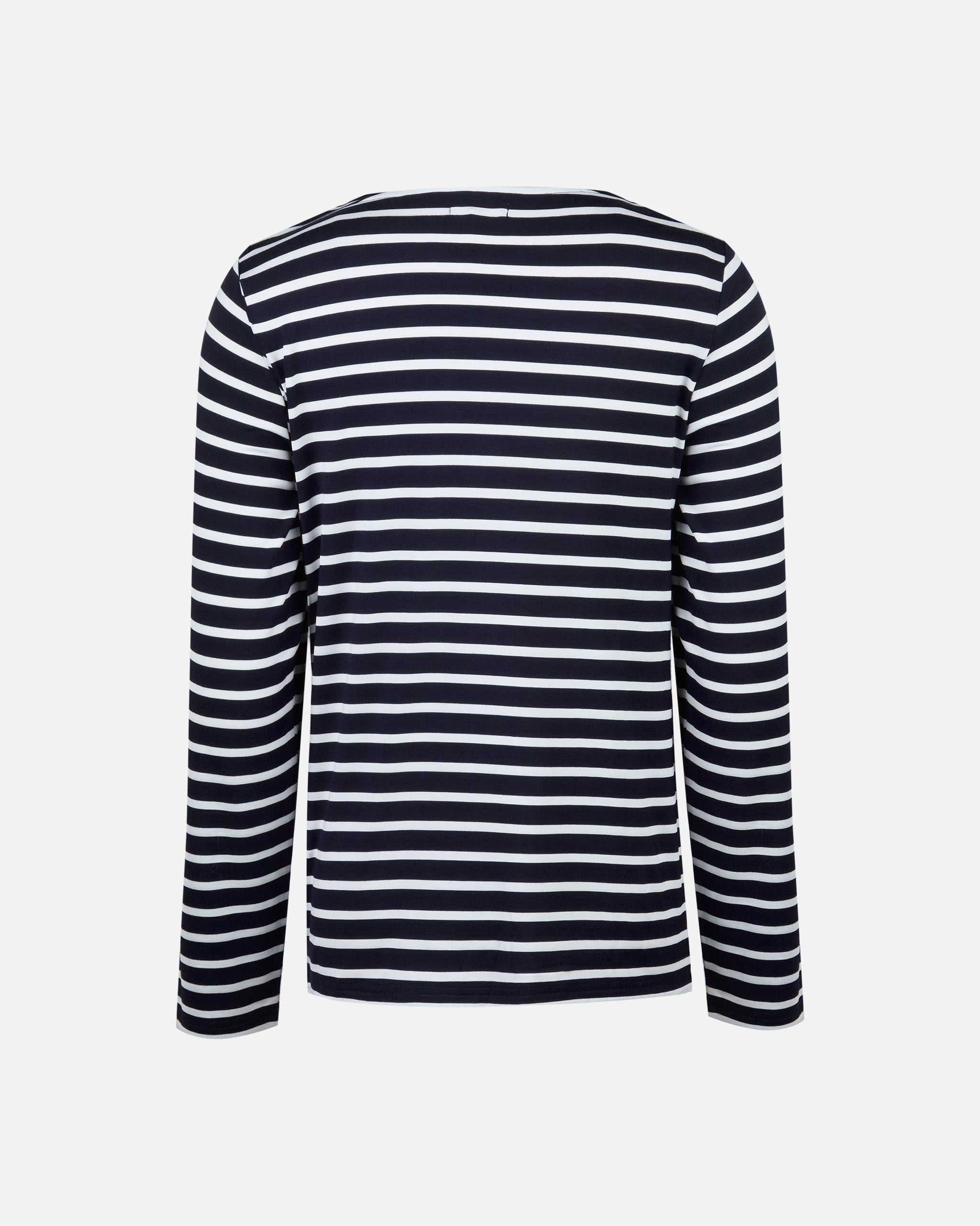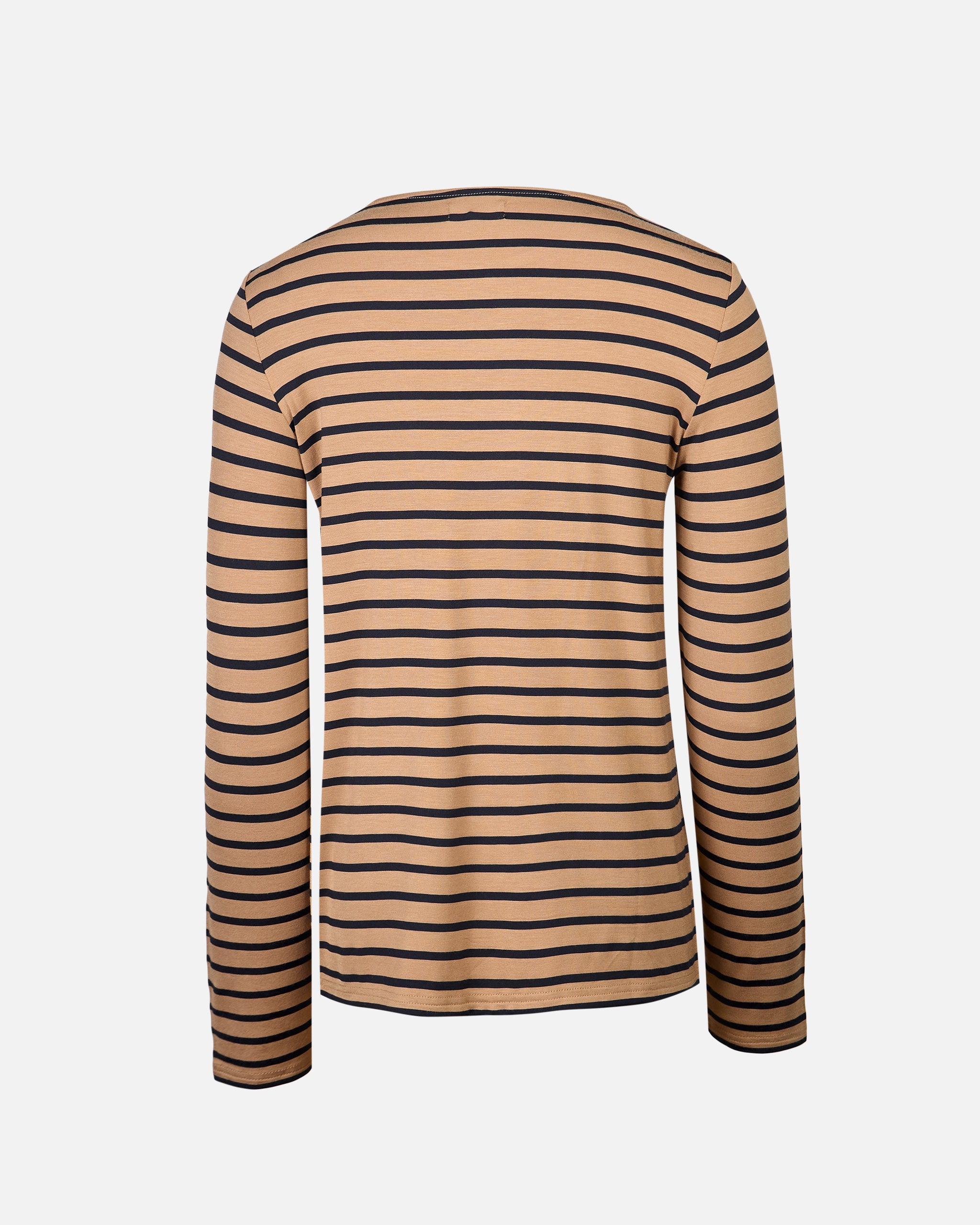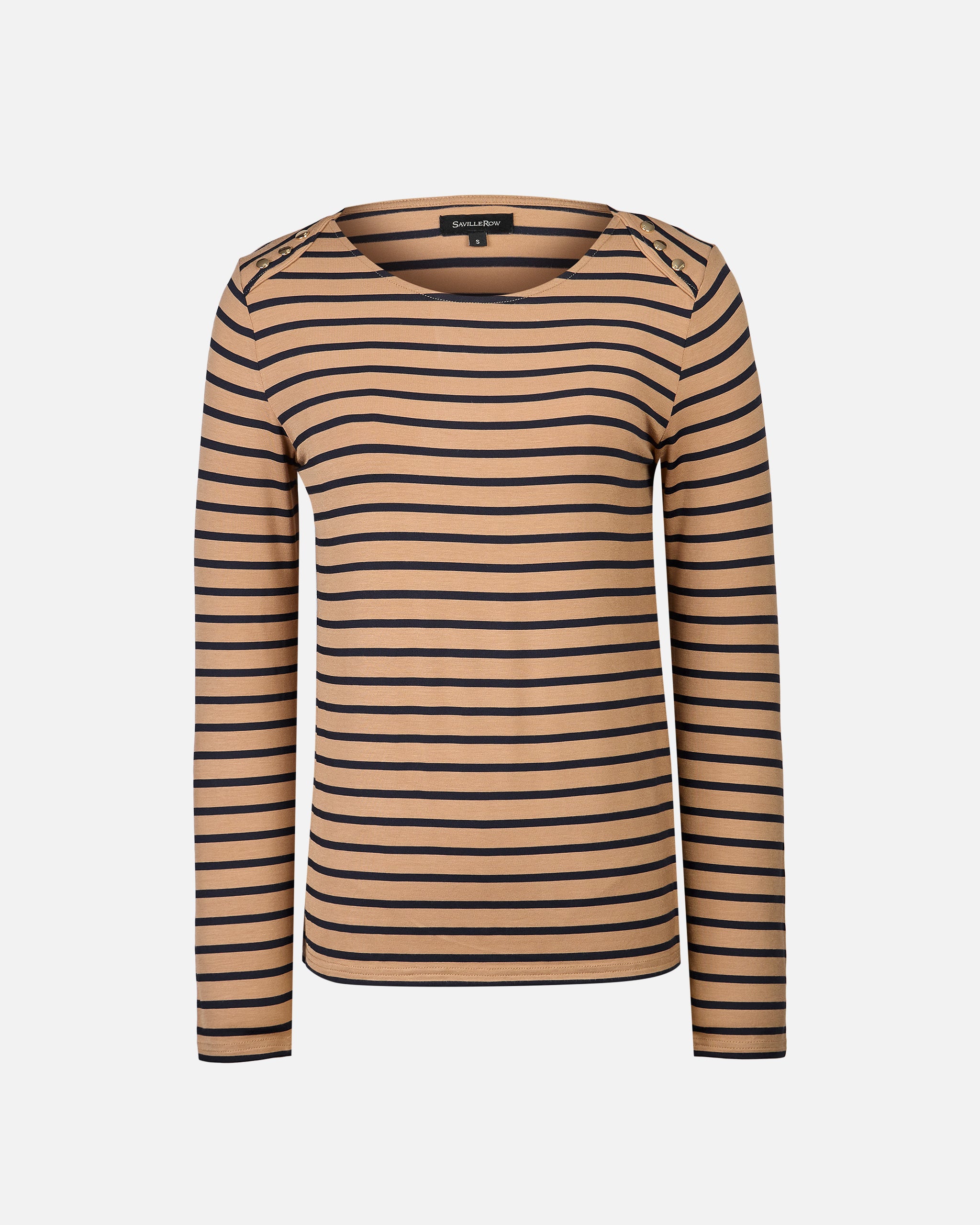 Polera Rayada Cuello Bote Con Botones En Hombro