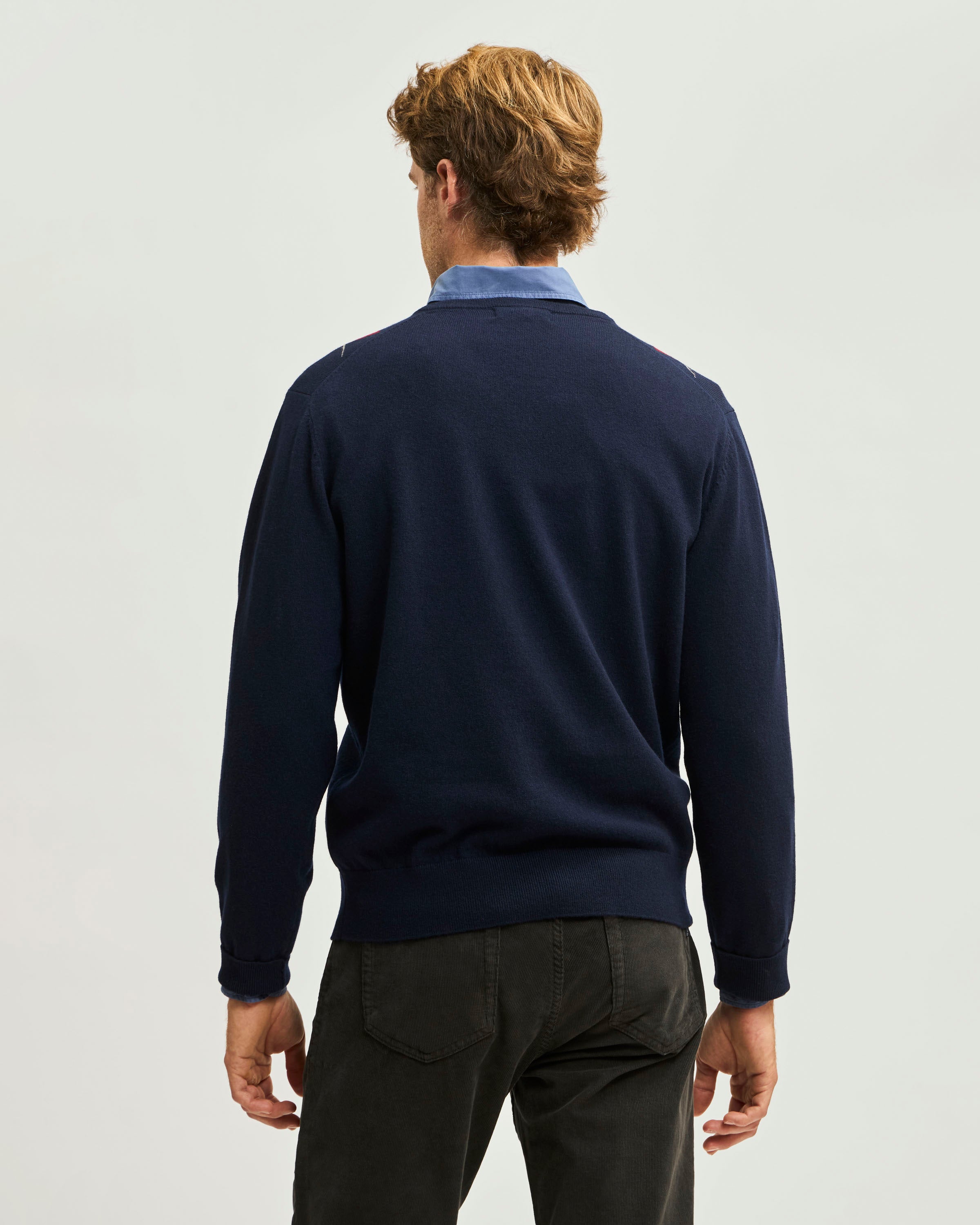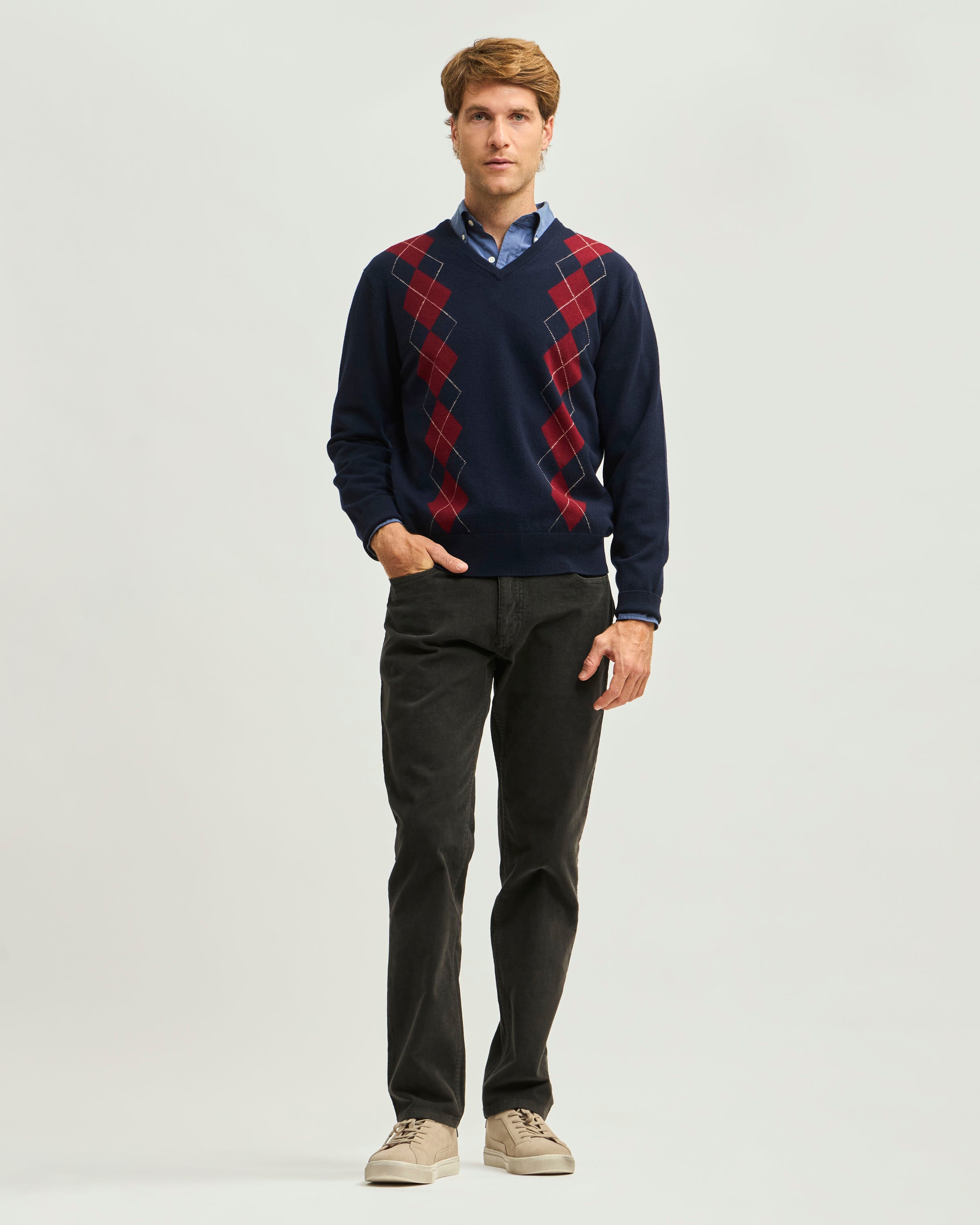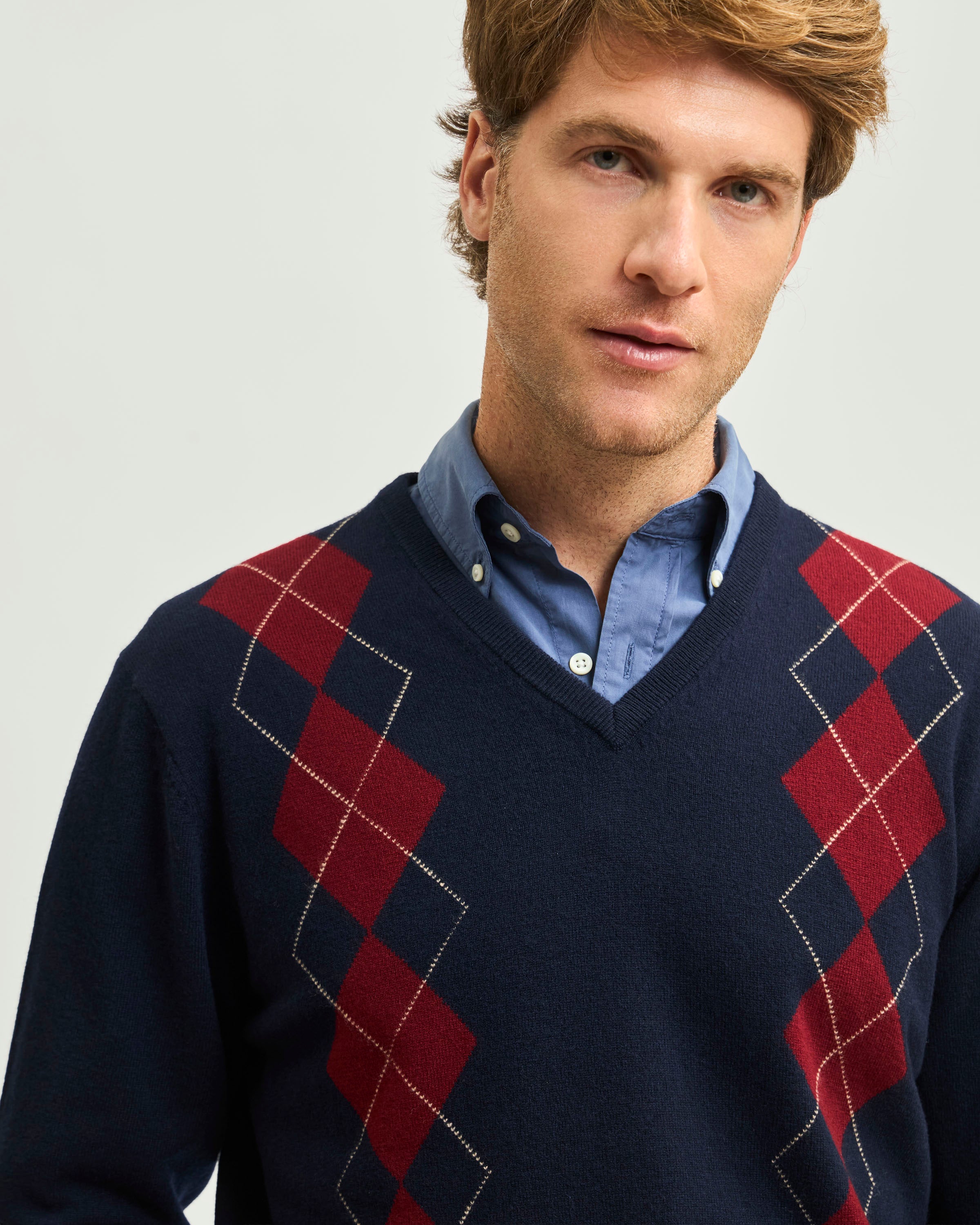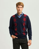 Sweater Fantasía Merino Cuello en V a rombos.