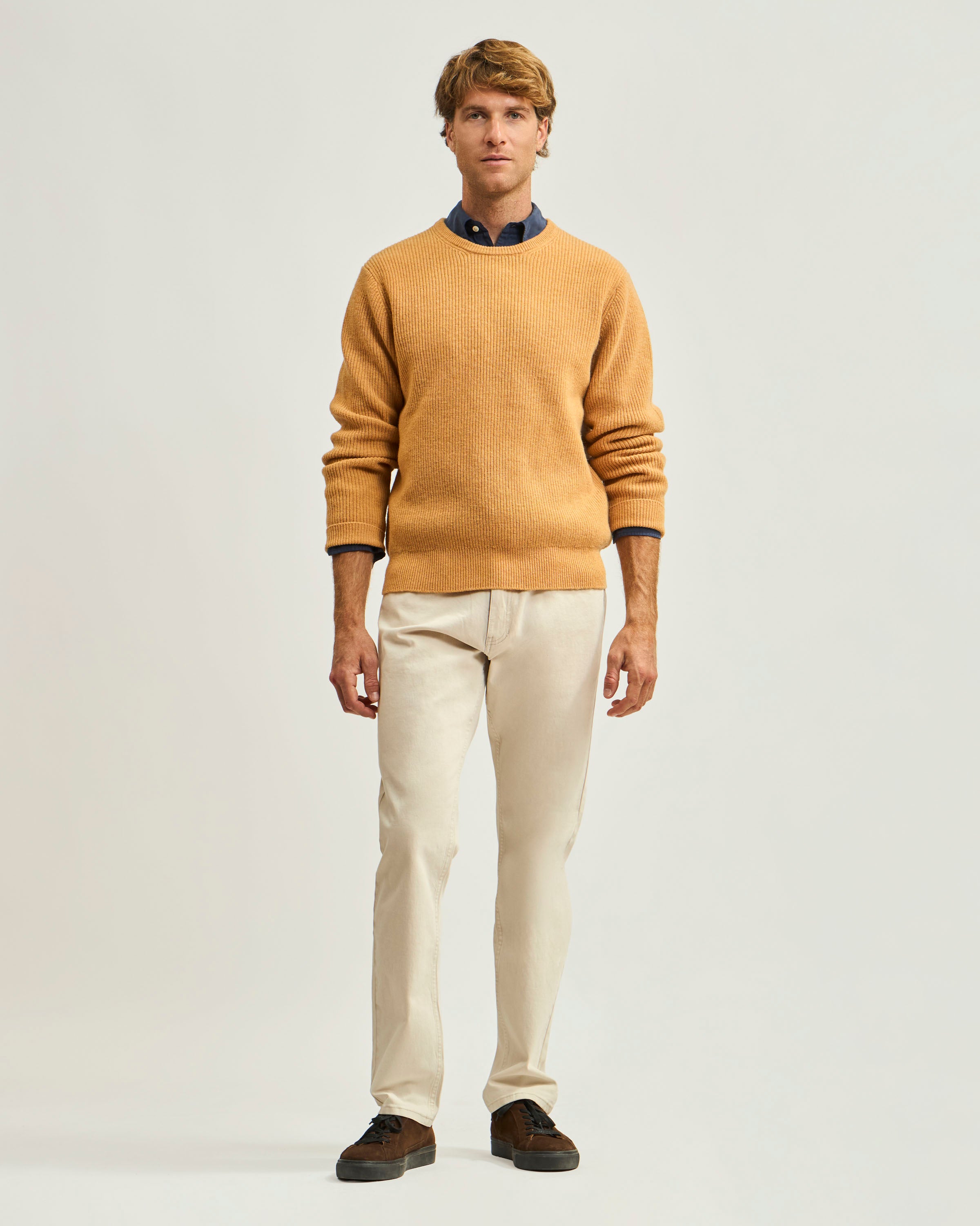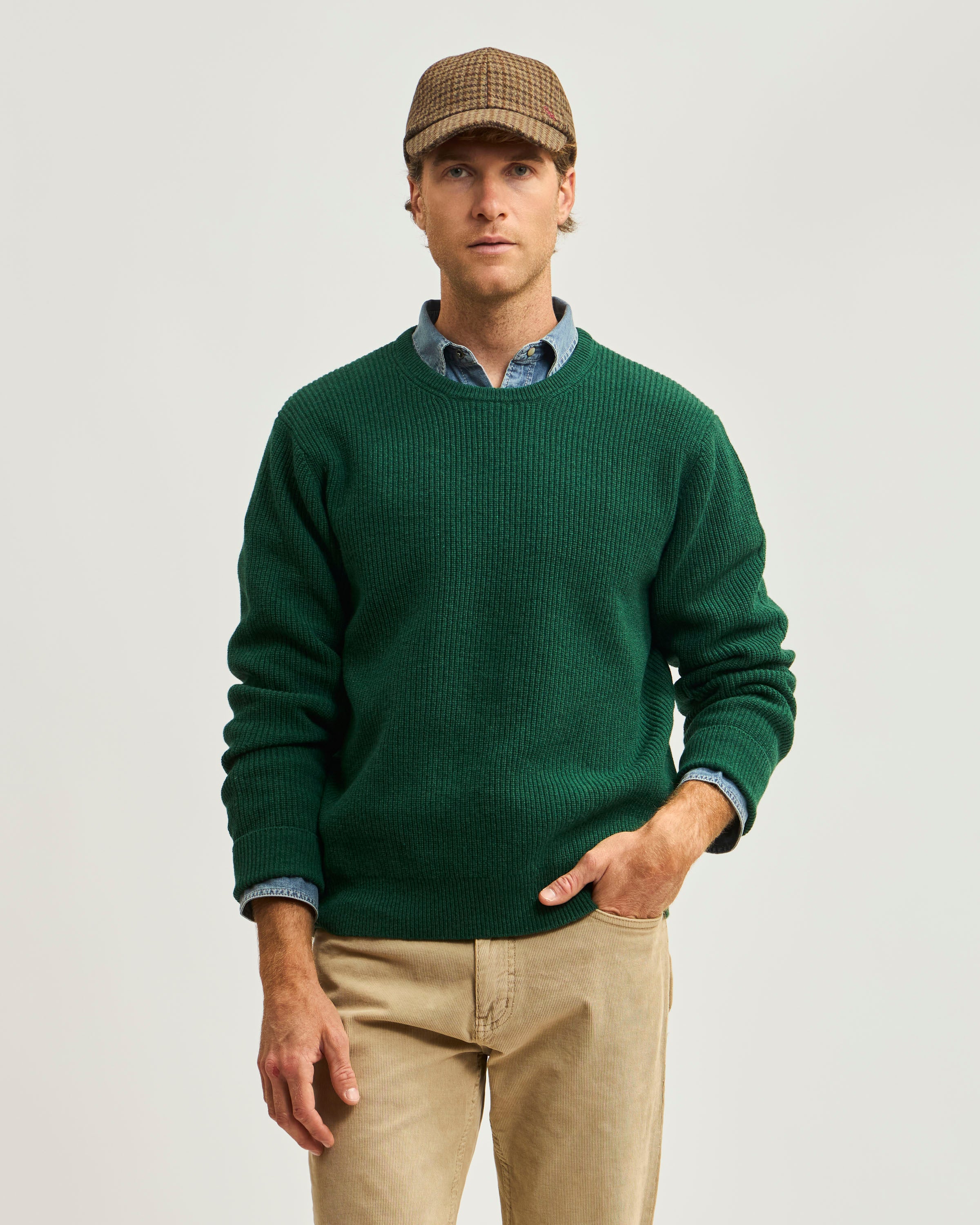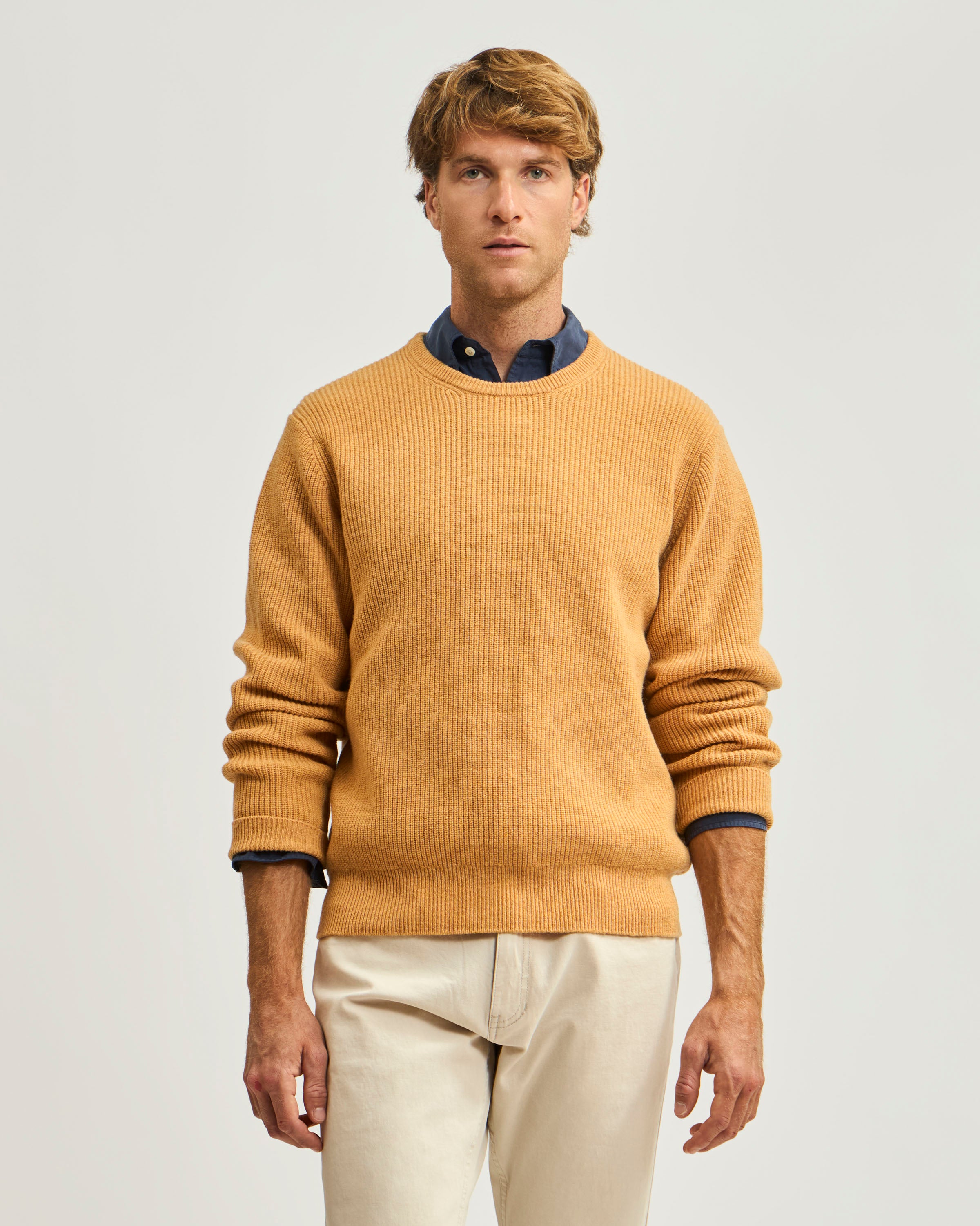 Sweater Liso Cuello Redondo Punto Ribs de Lana