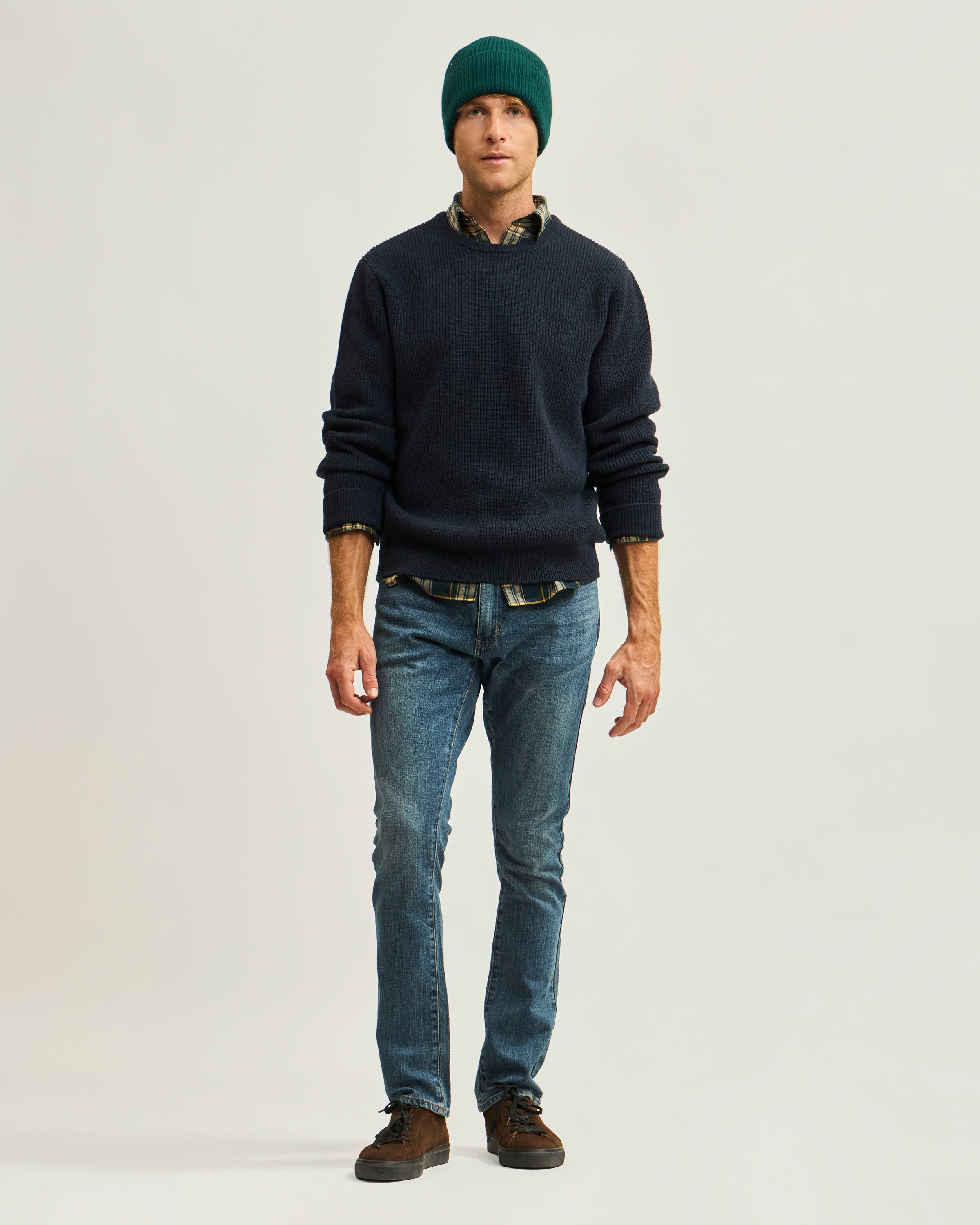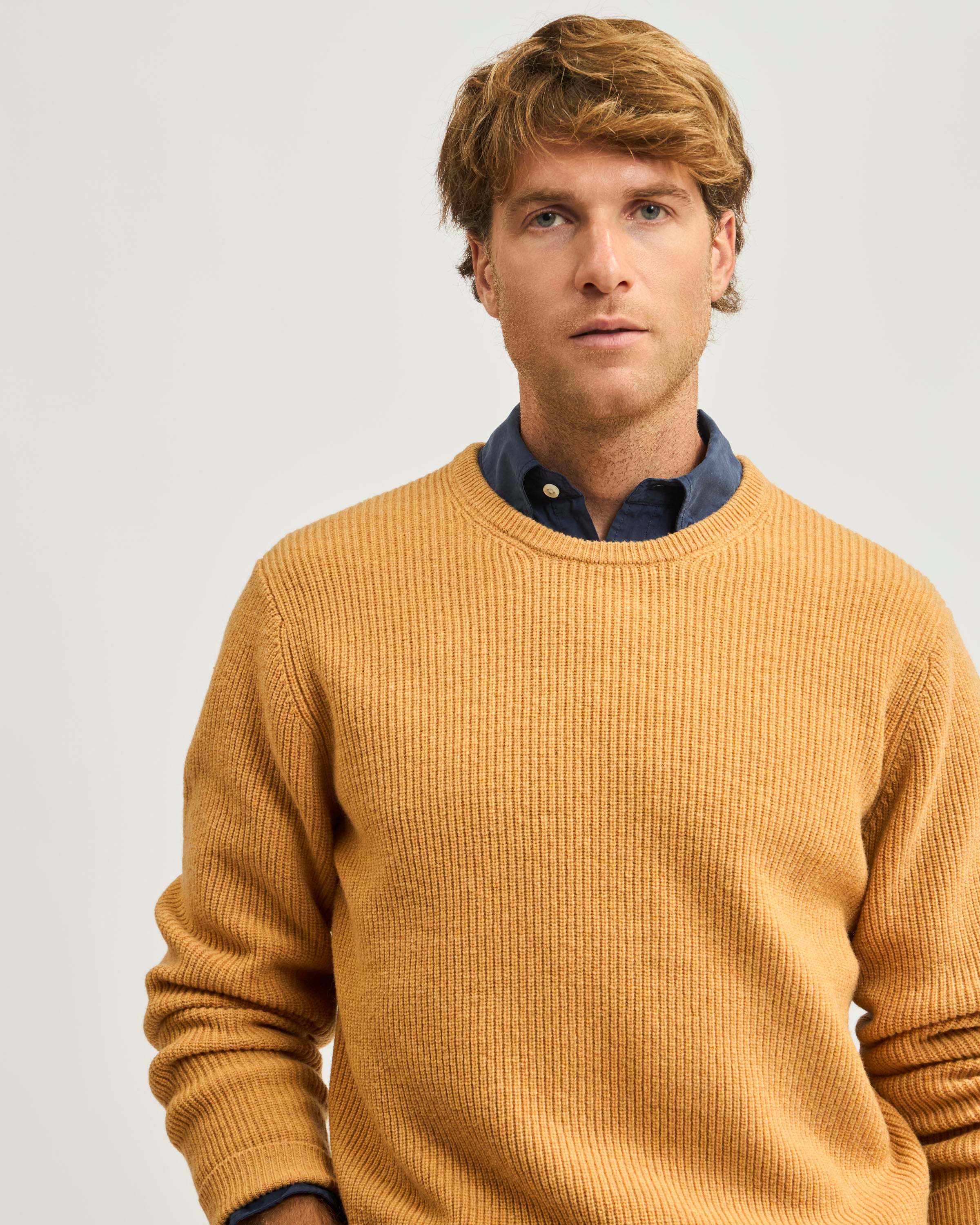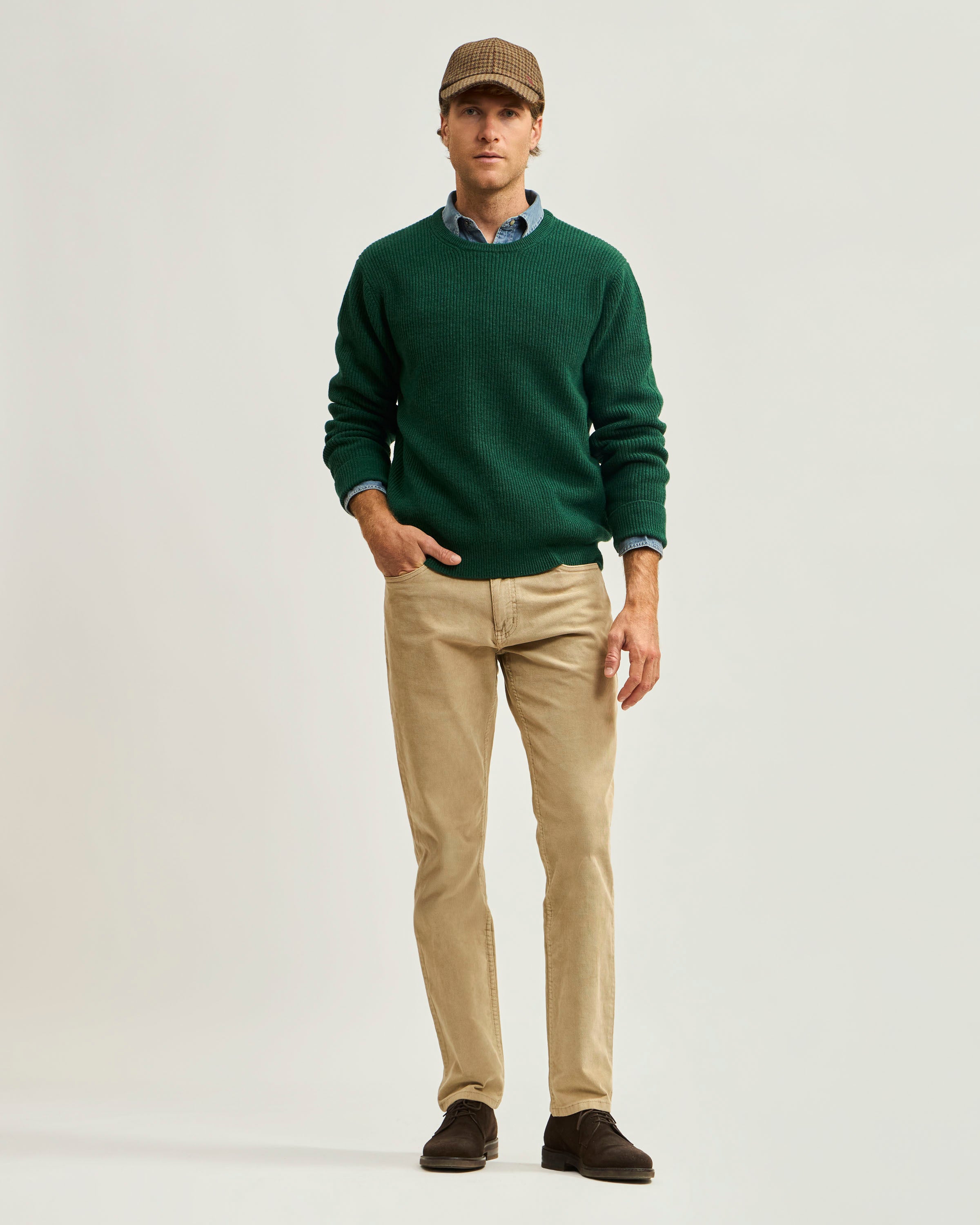 Sweater Liso Cuello Redondo Punto Ribs de Lana