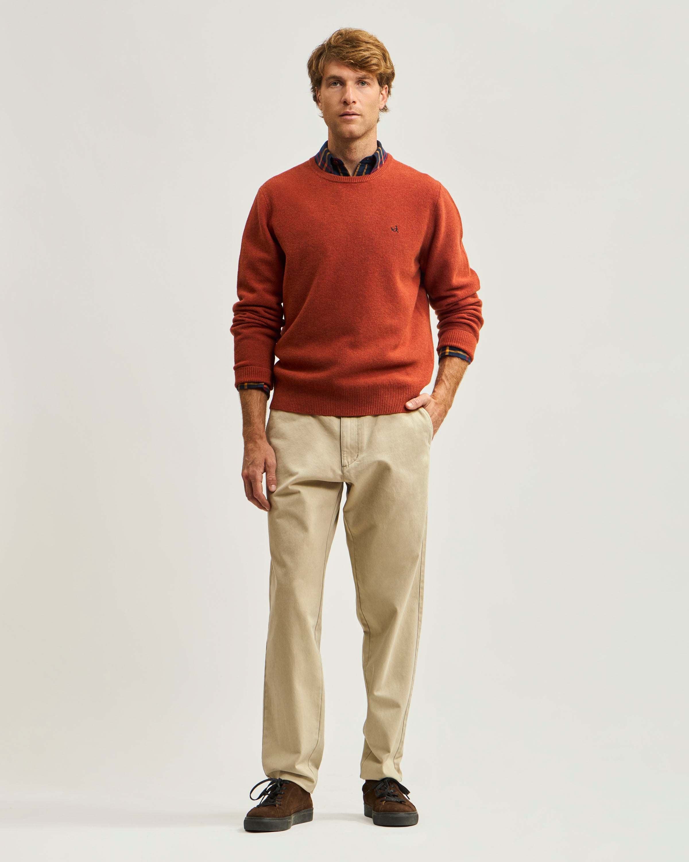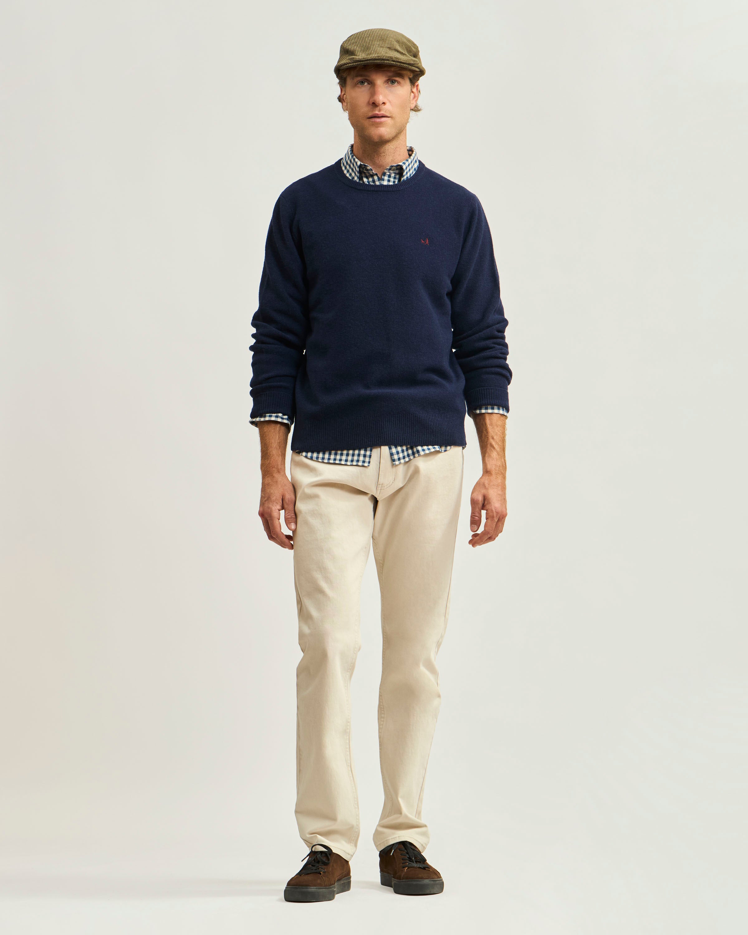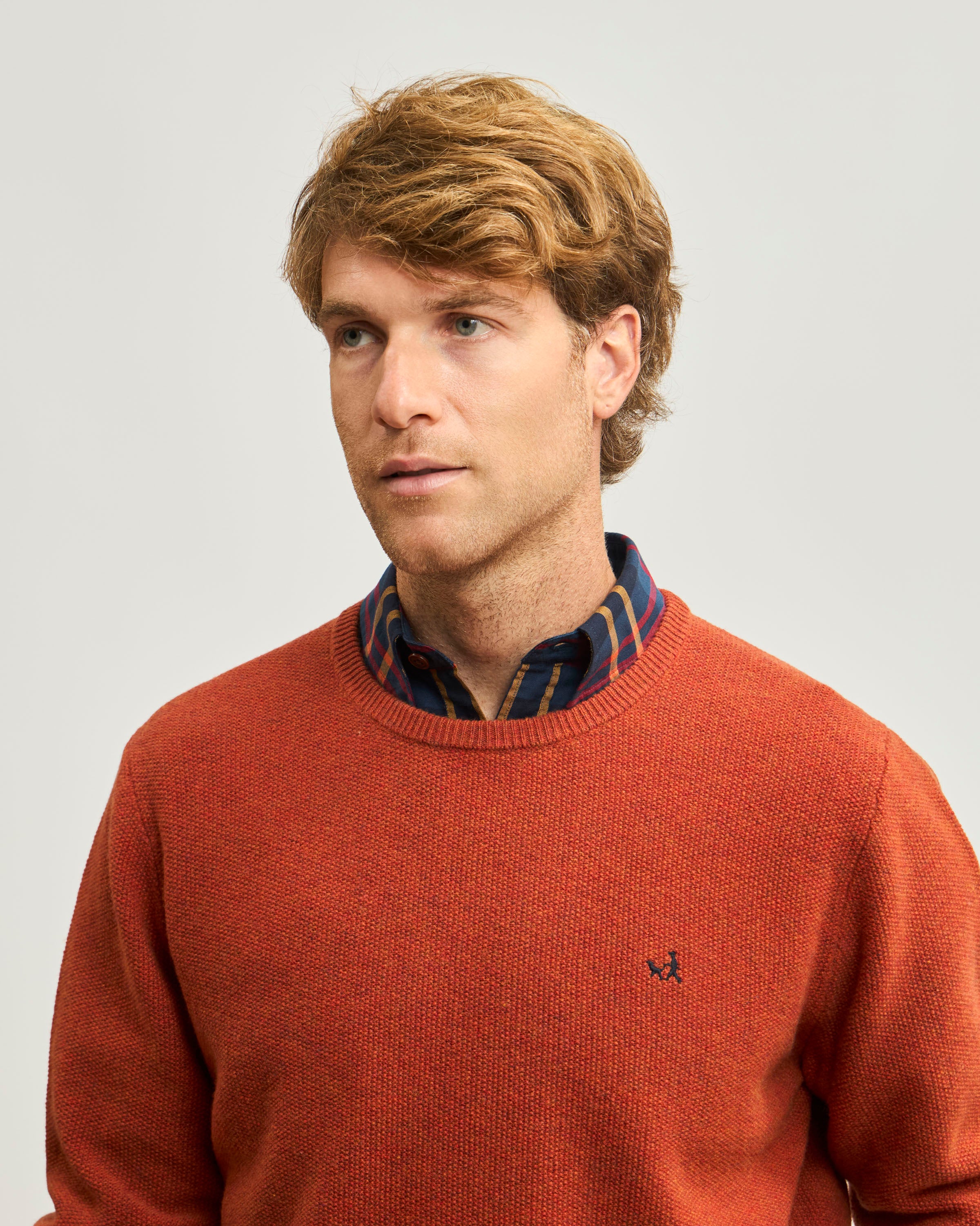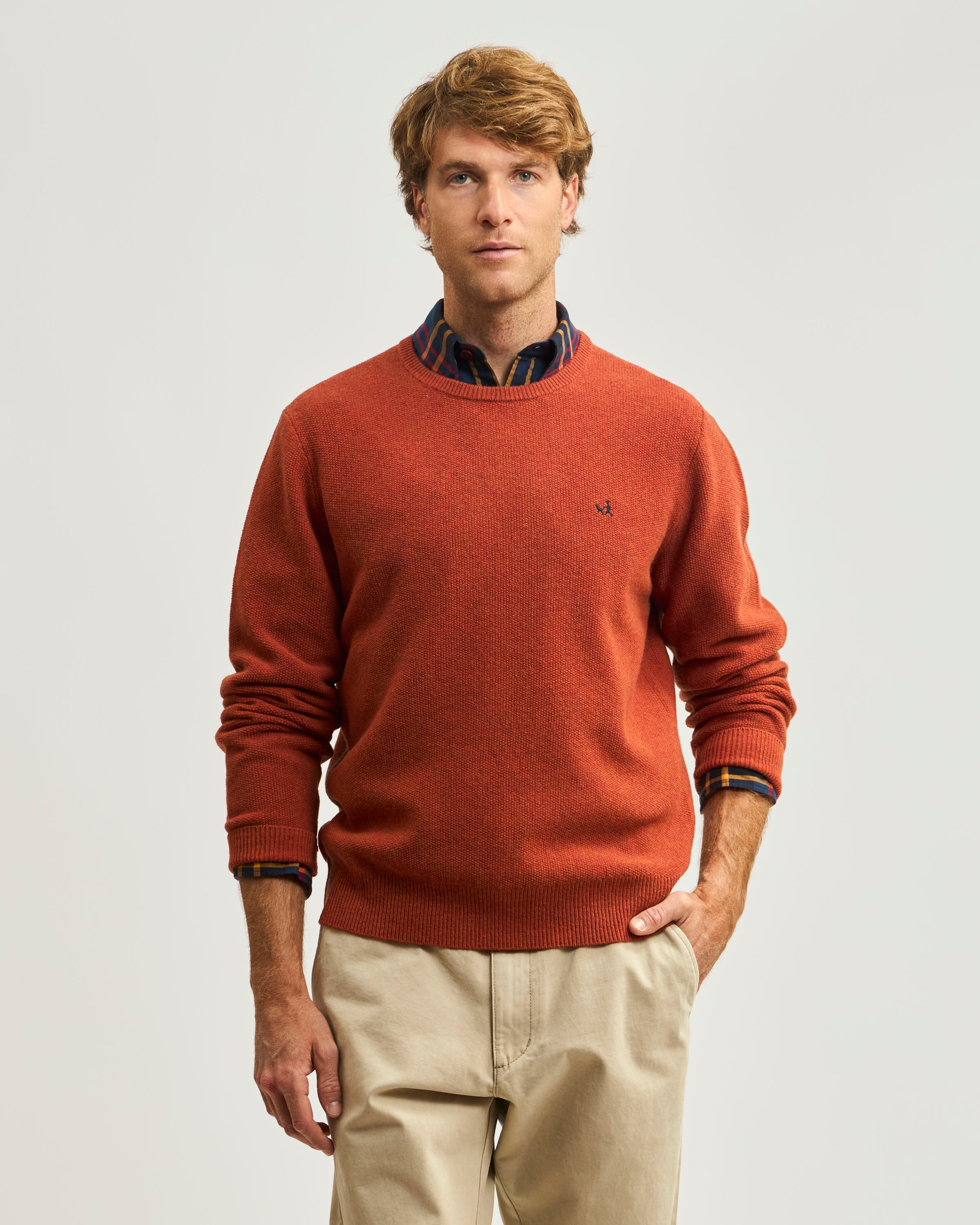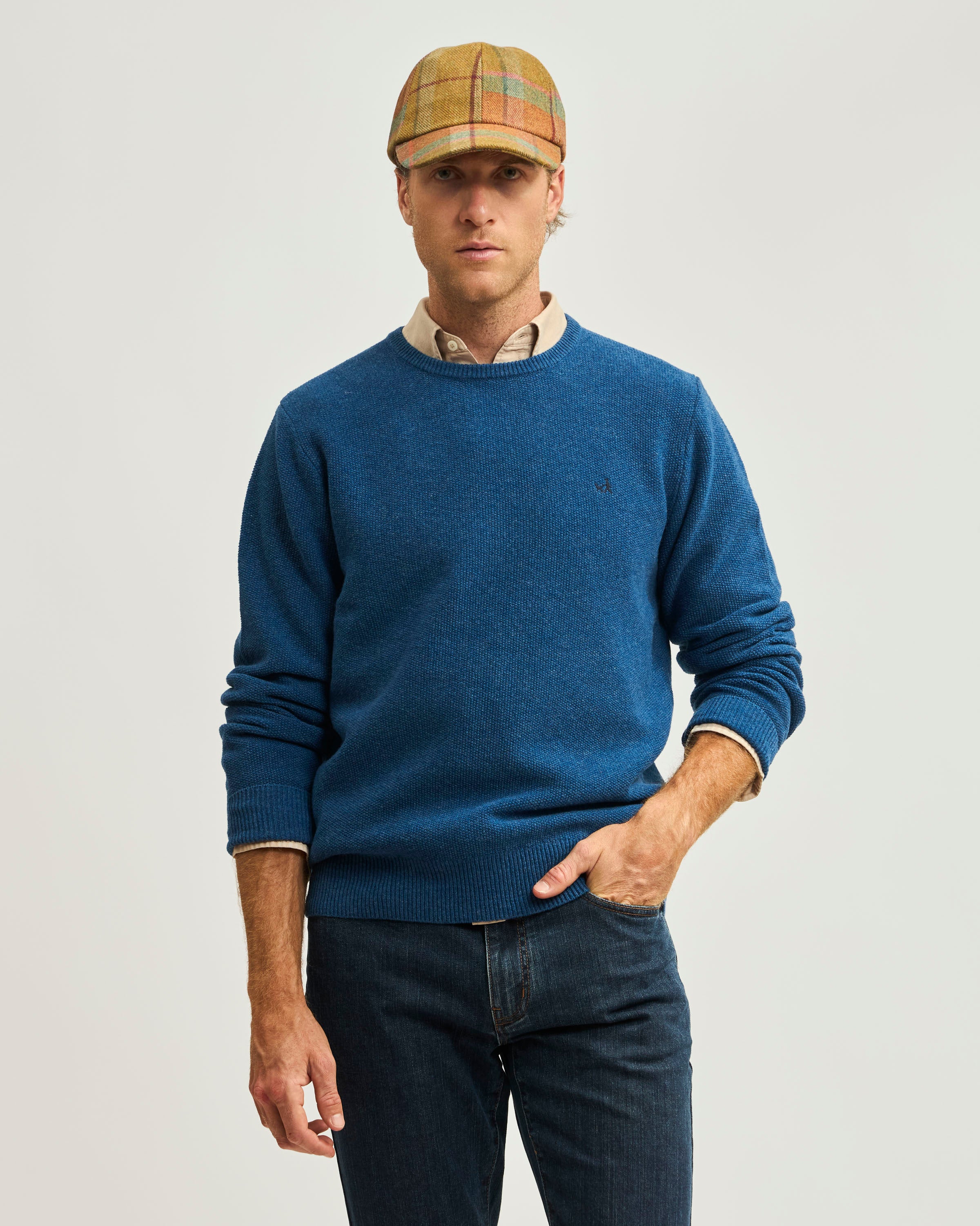 Sweater Liso Cuello Redondo Punto Semilla de Lana